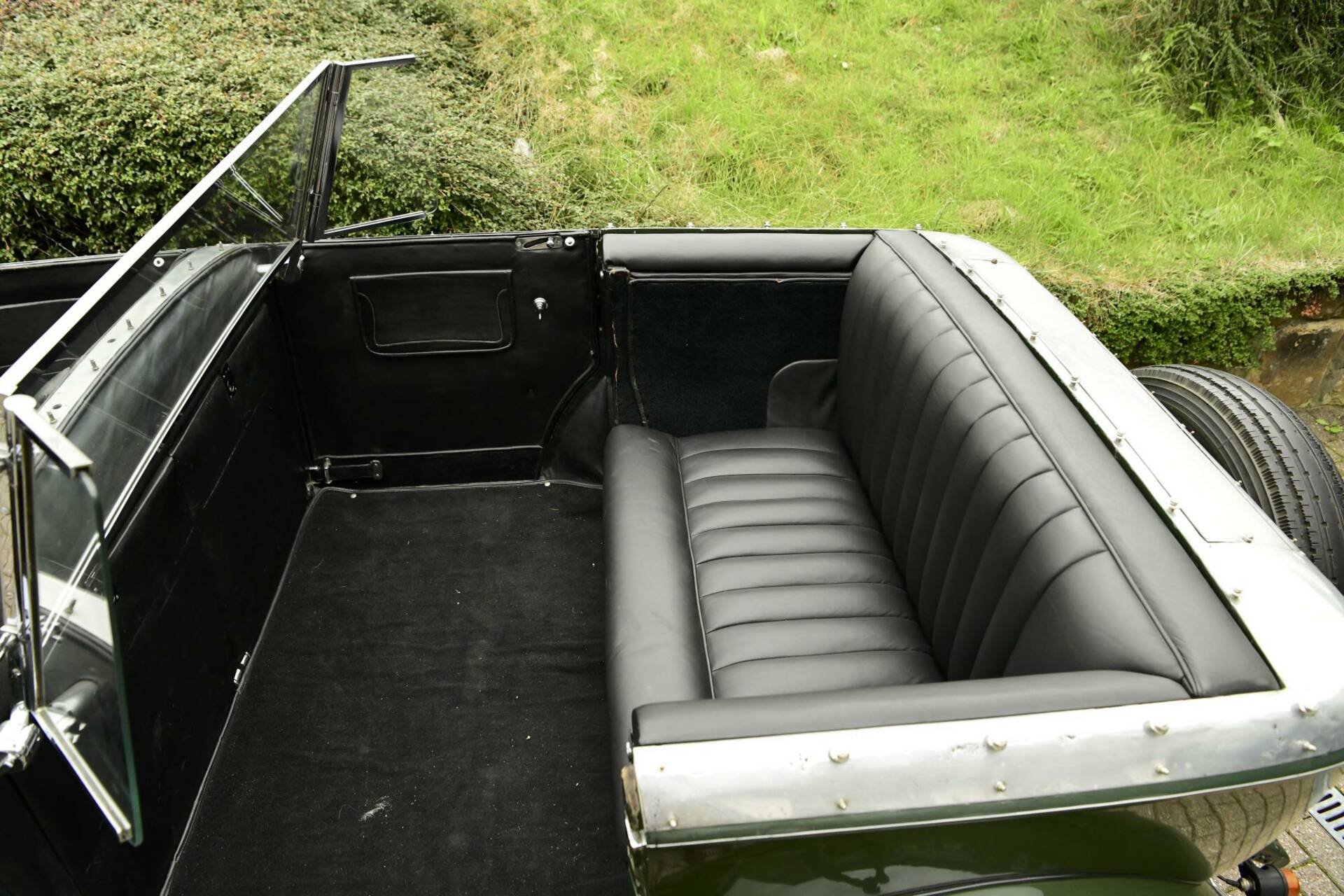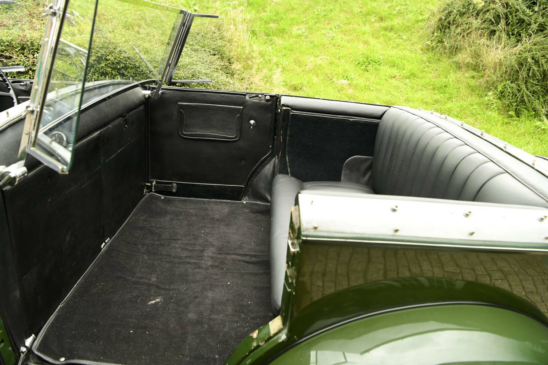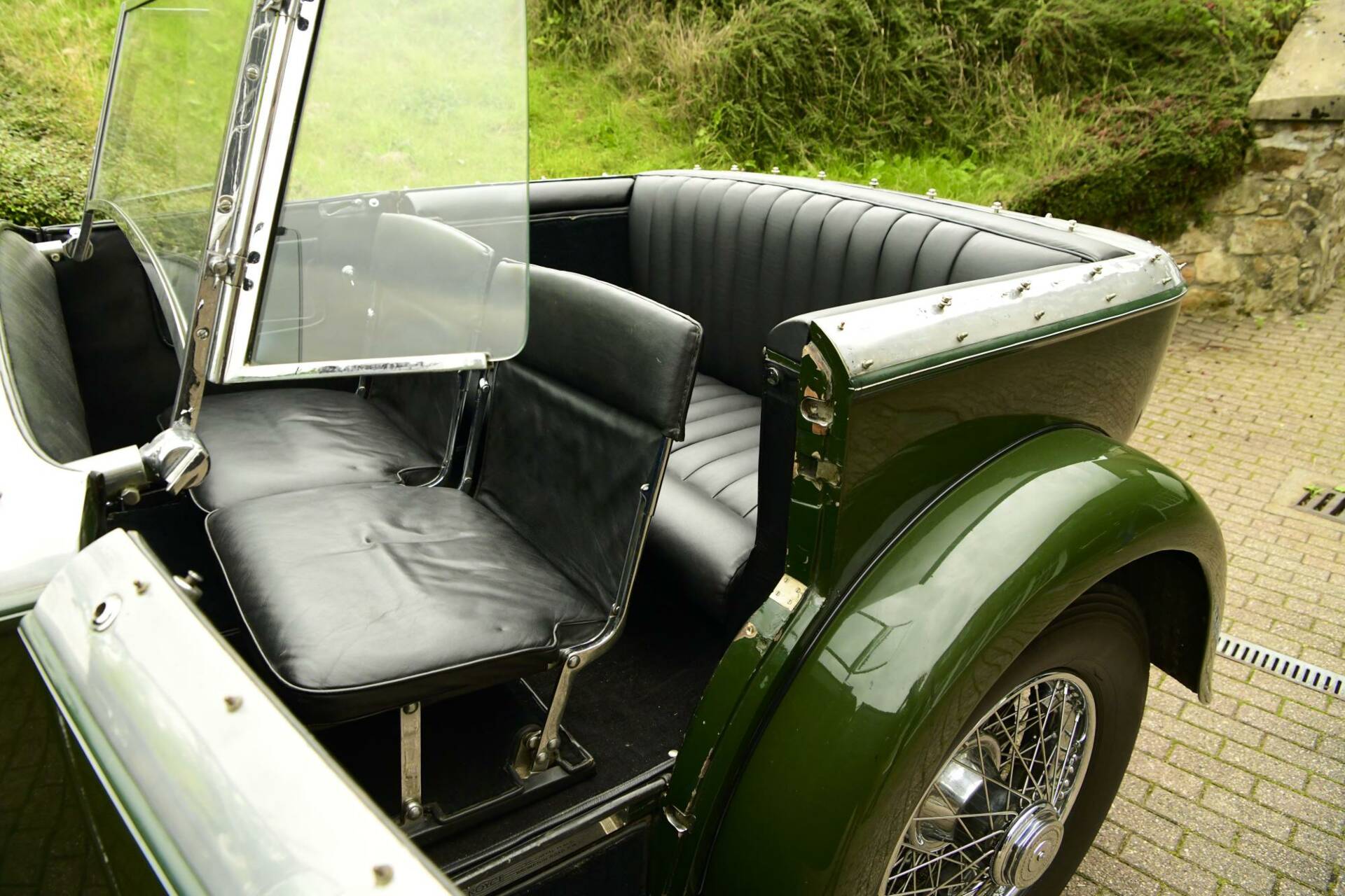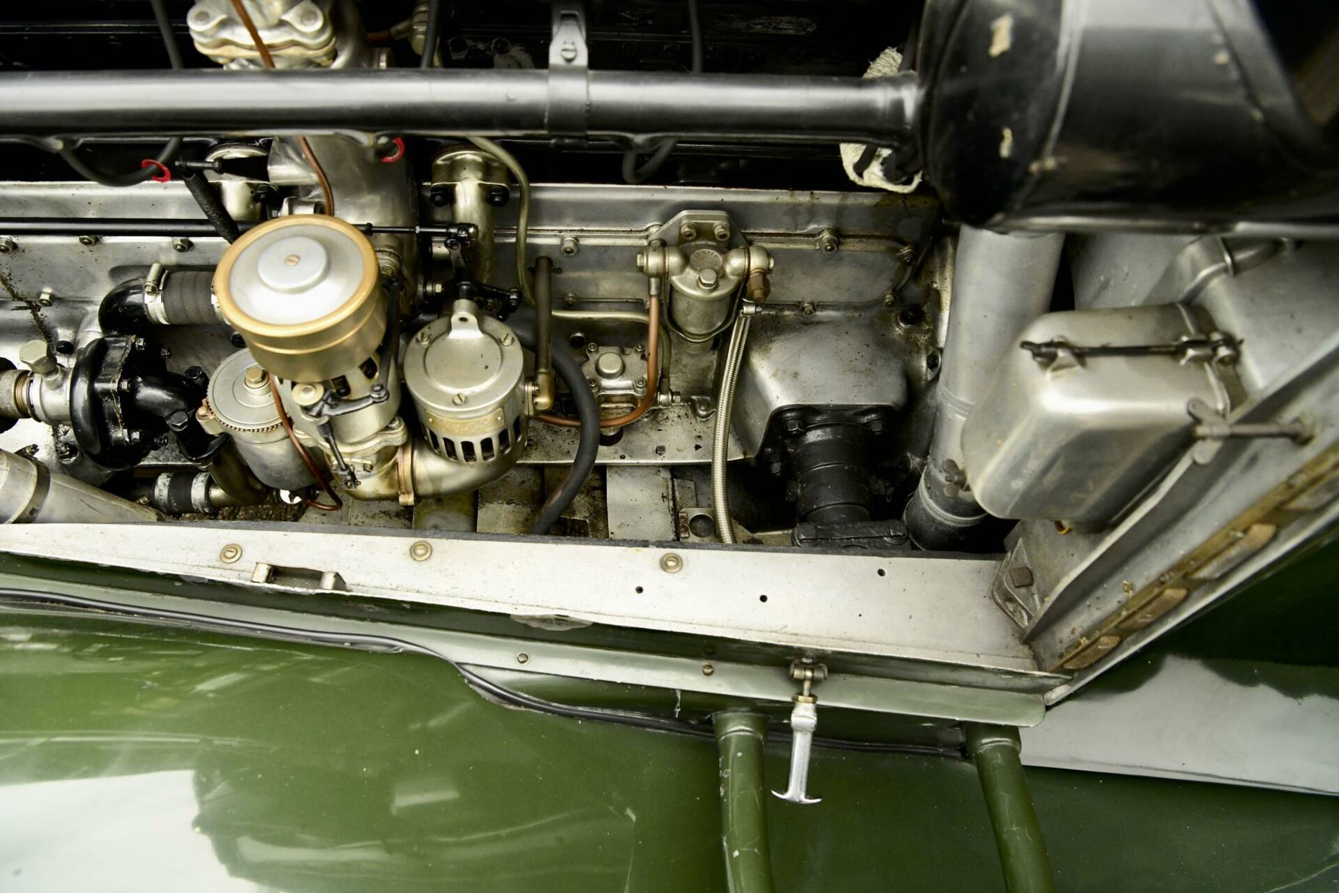 Coachwork is by noted coach builder Park Ward & takes the form of an open torpedo style tourer with twin windscreens to protect front & rear occupants alike. The bonnet top & upper surfaces of the body are of polished aluminium with the lower sections being a mid green in colour.