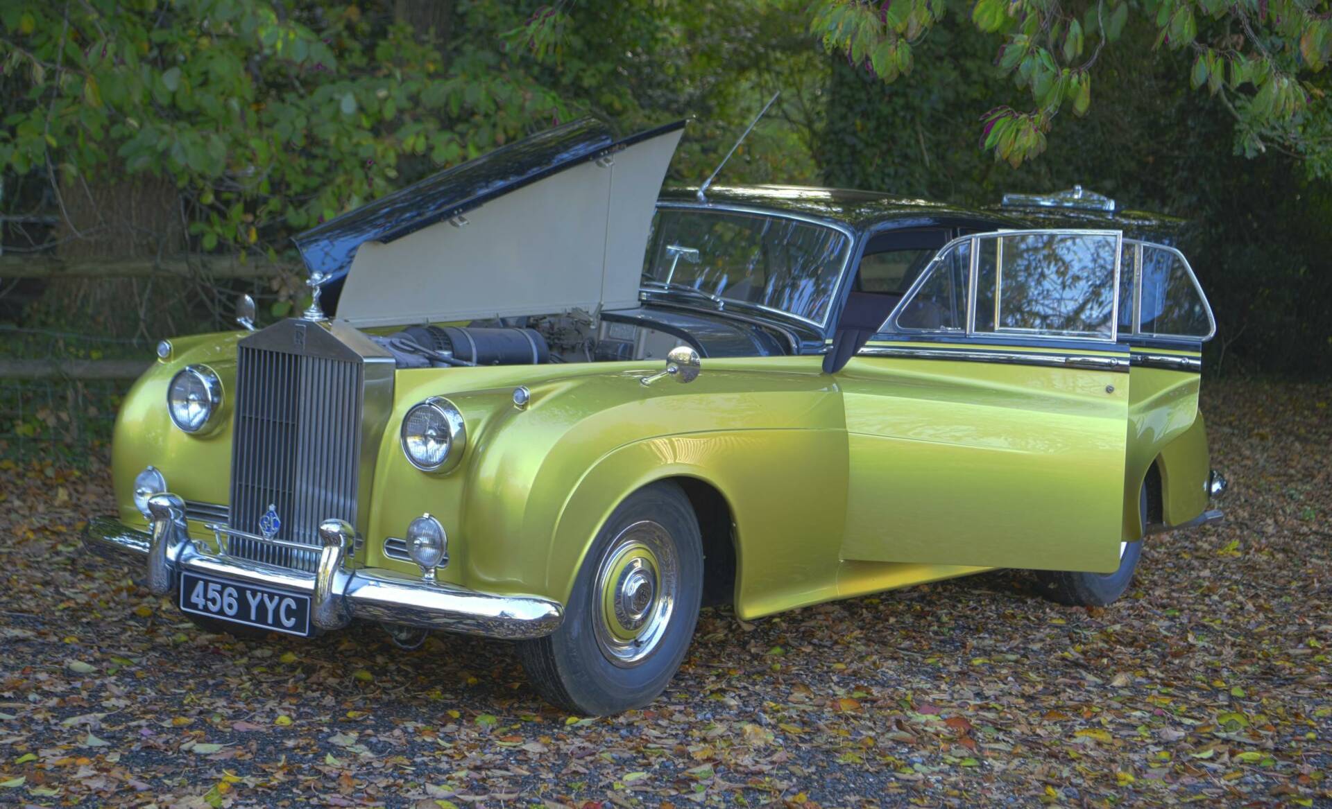 Fully restored by Marque speciailsts Classic Restoration Services of Chichester. This Silver Cloud 1 has been totally disassmbled & all corrosion removed & new metal let in including innner & outer sills etc. It has been painted in the striking colours of a pale metallic greenish gold over black making it a very distinctive car indeed.