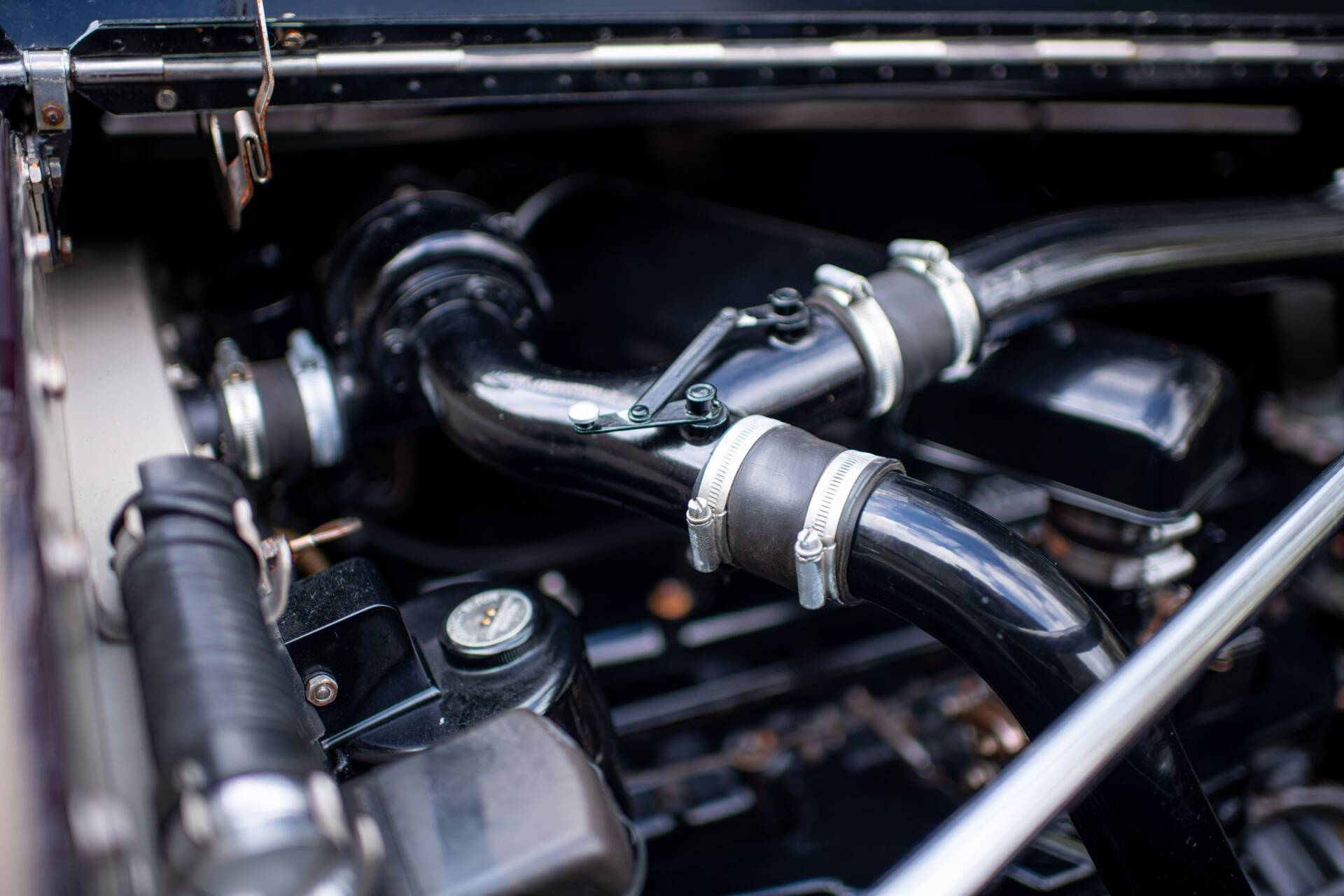 This 1953 Silver Wraith (chassis ALW 47) features a smooth 4½ litre straight-six engine and mechanical innovations such as an optional automatic transmission for the period. Its Hooper Sedanca de Ville body allowed the chauffeur's roof section to retract, creating an open-air sensation for the front compartment - a design both sophisticated and whimsical for its time. The interior is sumptuously appointed, with reclining rear seats trimmed in fine cloth, electric windows, air conditioning, and an electric division between driver and passengers. A distinctive touch is the use of exotic python snakeskin on parts of the dashboard and rear division, a signature of Gulbenkian's personal specifications.