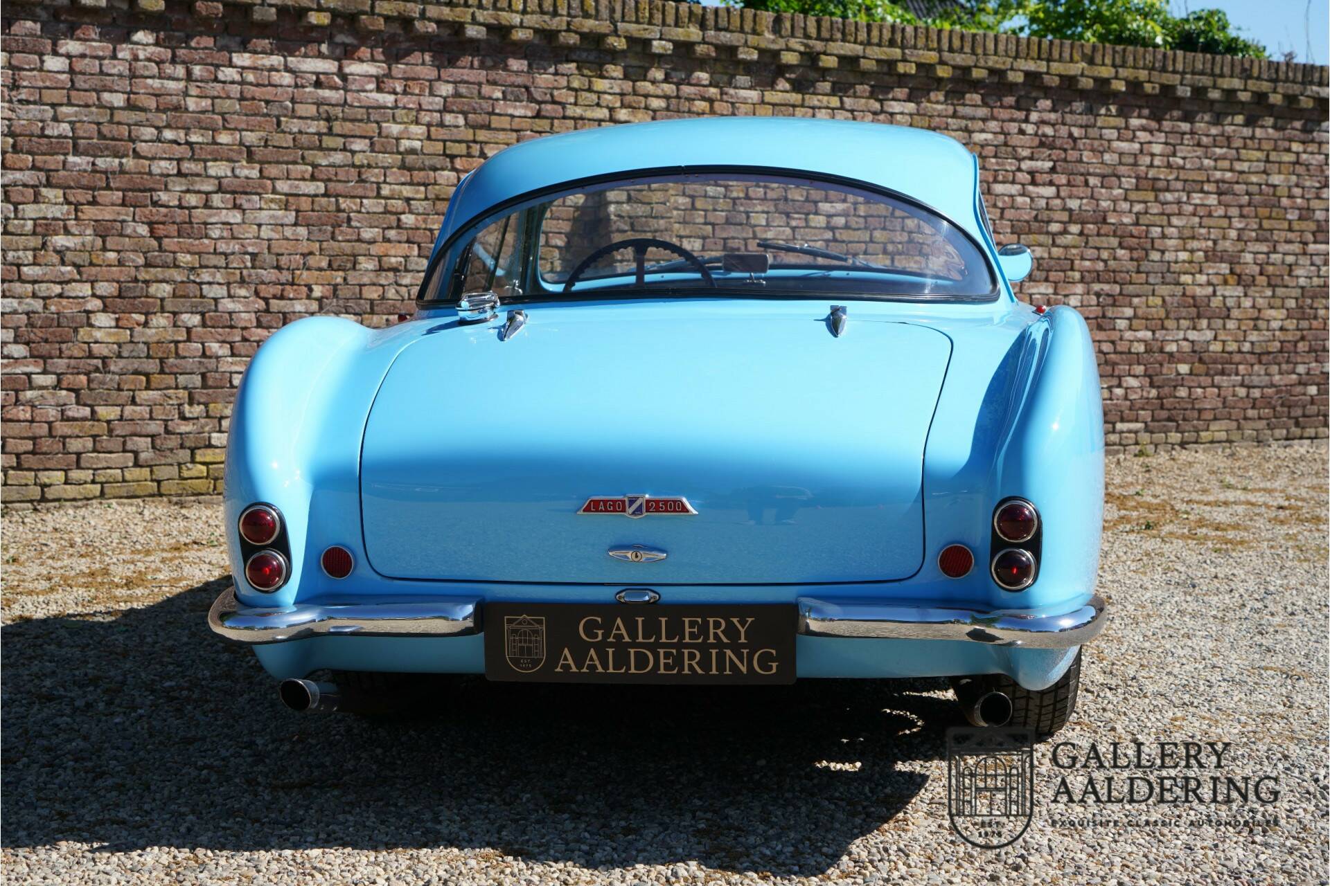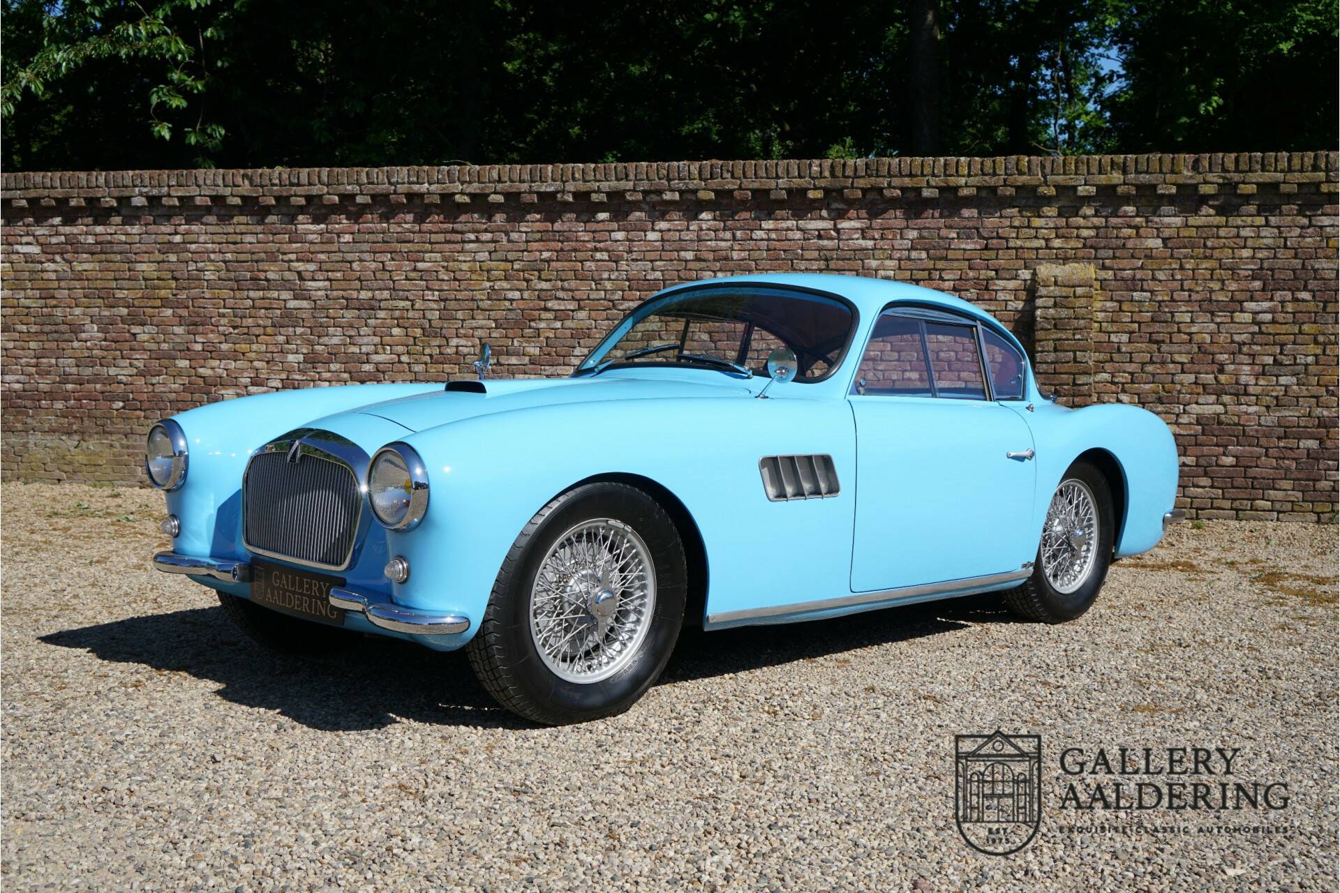 The Talbot-Lago T14 America Coupé 2500 Sport was a Carlo Delaisse design. He was chief designer at the Paris based Letourneur et Merchand Coach-builders. This stunningly proportioned T14 is quite likely his best work. The Talbot-Lago T14 America Coupé 2500 Sport with its V8 engine is a very rare car. BMW supplied the 2.5 litre V8. The V-8’s power was meant to ensure the T14 sold well in the States. According to the Talbot-Lago club 12 Talbot-Lago T14 America Coupé 2500 Sports were built between 1957 & 1959. That figure is however not correct, 13 were actually built. Simca took over Talbot-Lago in 1959, but could not save the marque as Simca had problems keeping itself afloat financially and was not able to support an exclusive brand at the same time. Talbot-Lago silently left the scene shortly after the takeover. Our car is most likely the very last car to have ever passed through the Talbot-Lago factory doors. According to researchers of the brand, this specific car left the factory with an engine and its interior, awaiting completion of the build. This is probably why it was not counted as part of the total production run in first instance. The build on this car was completed by the old Talbot-Lago test driver Georges Grimard by hand. The car became untraceable until it surfaced again in 1968. The car was then in very good condition only needing a cosmetic re-spray some 15 years ago. The aluminium bodywork is in very good and original condition with straight, thin and correctly aligned body panels. The original 1958 interior trim has been very well maintained and has a wonderful patina. The chassis too is completely rust-free. Mechanically this 2500 Sport is completely original and in excellent condition. The low mileage and excellent maintenance has meant that the car has never needed a full overhaul. In short this is a very rare Talbot-Lago T14 America Coupé 2500 Sport in outstanding authentic condition. It is virtually impossible to discover one. Gallery Aaldering is Europe’s leading Classic Cars specialist since 1975! Always 300-350 Classic and Sportscars in stock, please visit www.gallery-aaldering.com for the current stock list (all offered cars are available in our showroom) and further information. We are located near the German border, 95 km from Düsseldorf and 90 km from Amsterdam. So easy traveling by plane, train, taxi and car. Transport and worldwide shipping can be arranged. No duties/import costs within Europe. We buy, sell and provide consignment sales (selling on behalf of the owner). We can arrange/provide registration/papers for our German (H-Kennzeichen, TÜV, Fahrzeugbrief, Wertgutachten usw.) and Benelux customers. Gallery Aaldering, Arnhemsestraat 47, 6971 AP Brummen, The Netherlands. Tel: 0031-575-564055. Quality, experience and transparency is what sets us apart. We look forward to welcoming you in our showroom