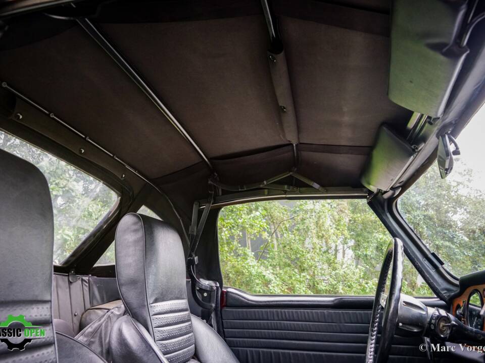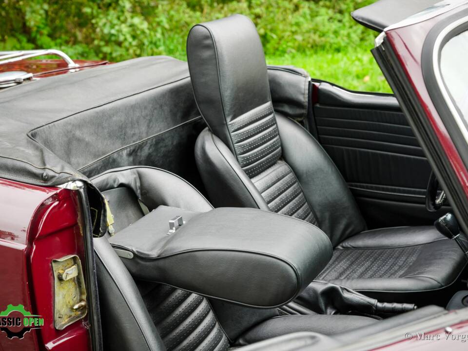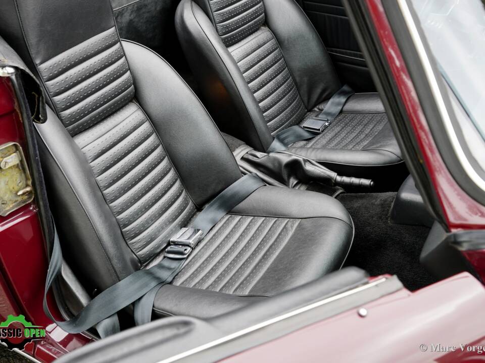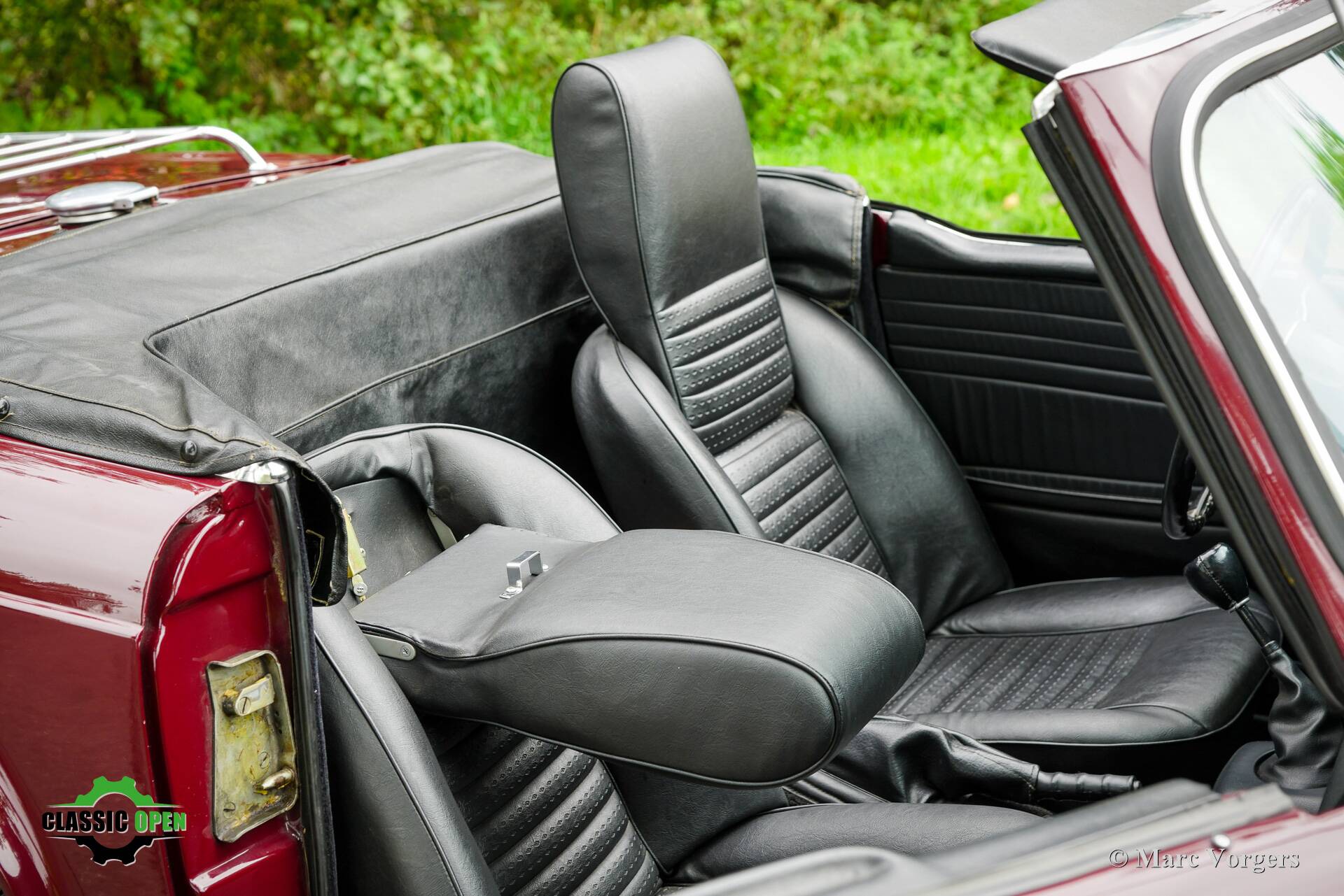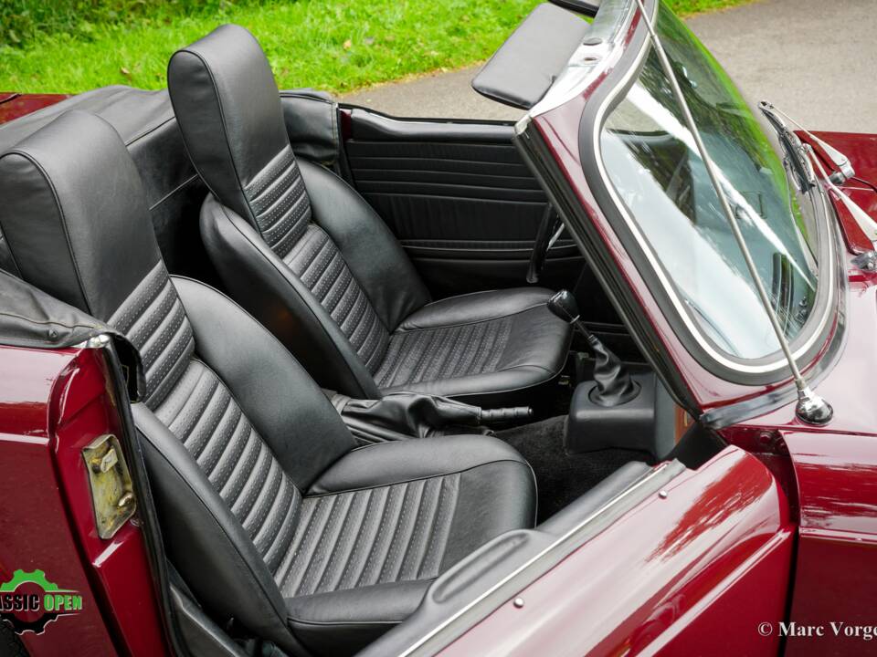 This Triumph TR6 is a seldom seen early version still sporting unique details like the safety seats with the high headrests and the unique 3-spoke steering wheel with holes in the spokes.