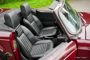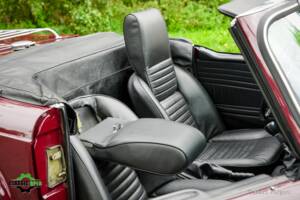 Bodywork finished in dark red (Damson) combined with a black faux leather interior and a black mohair soft-top.