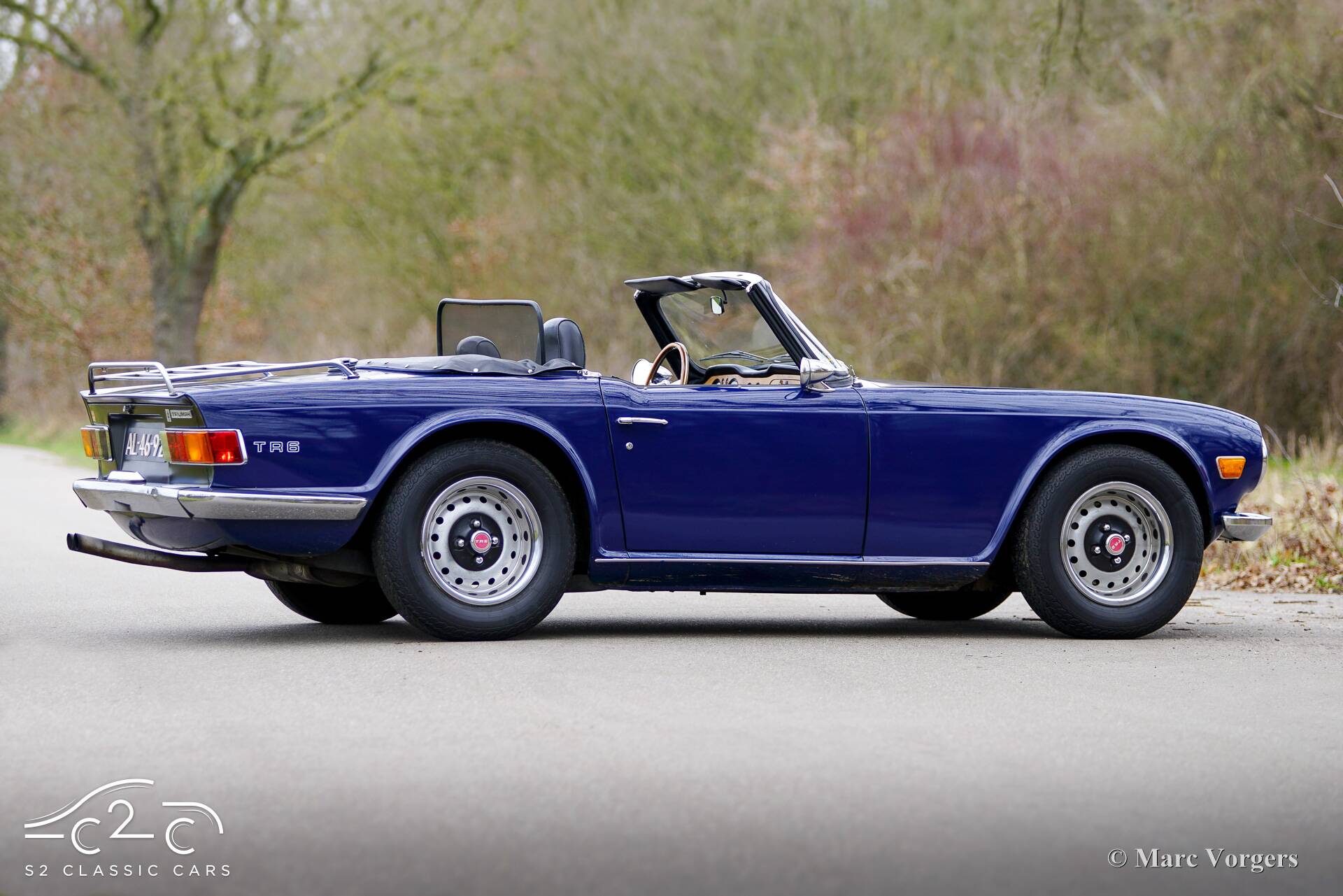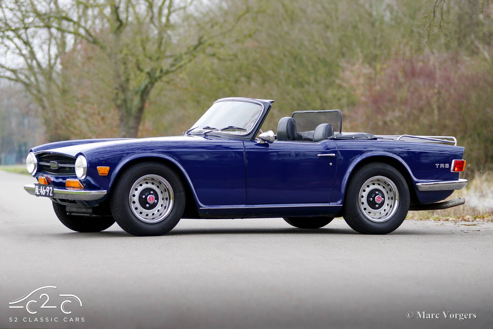 This sporty TR6 is in good driving condition and shows the signs of use and age that together form a pleasing patina. The interior upholstery and the dash top were renewed at some point. Mechanically, the car has been serviced punctually over the years, with invoices to support the work carried out.