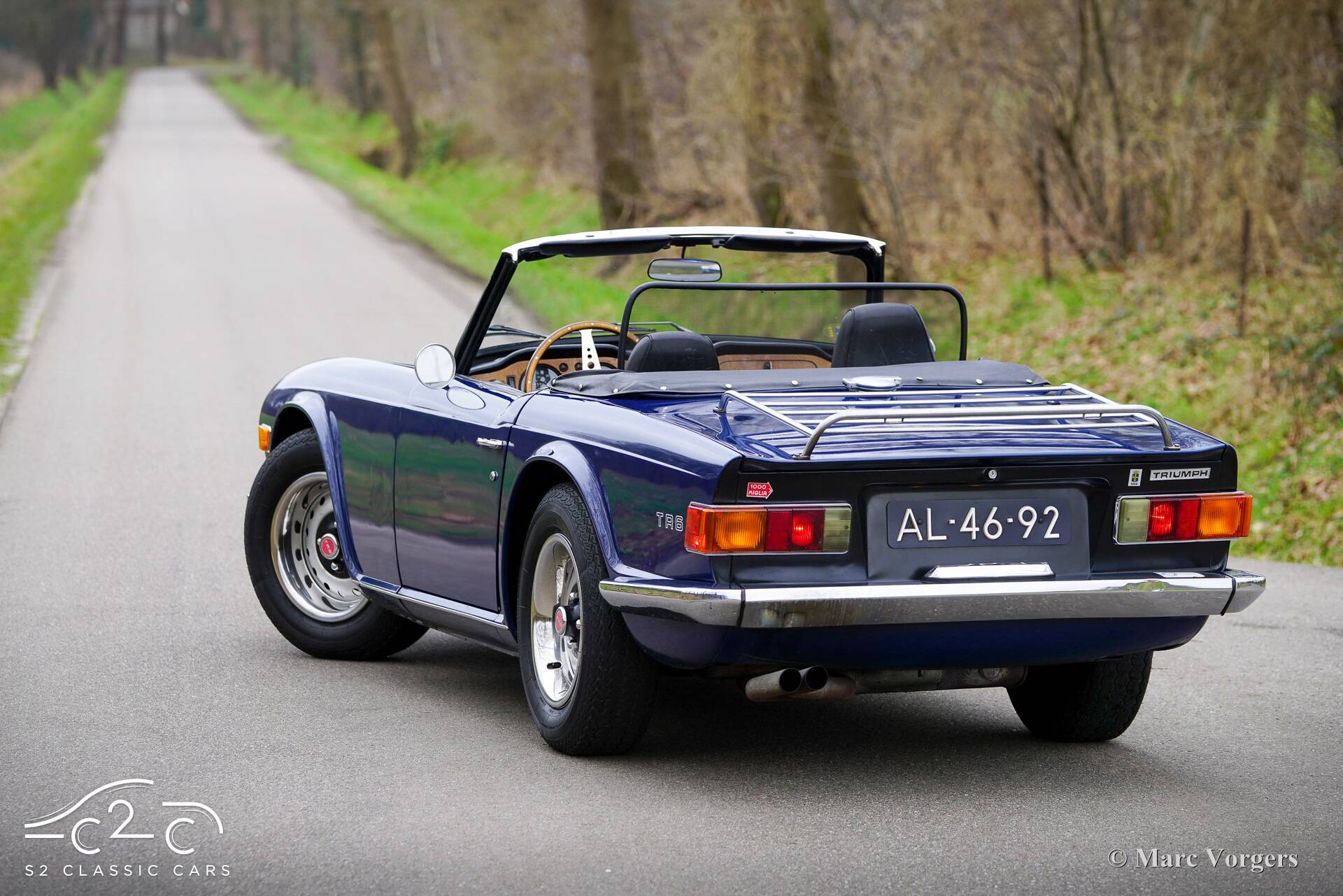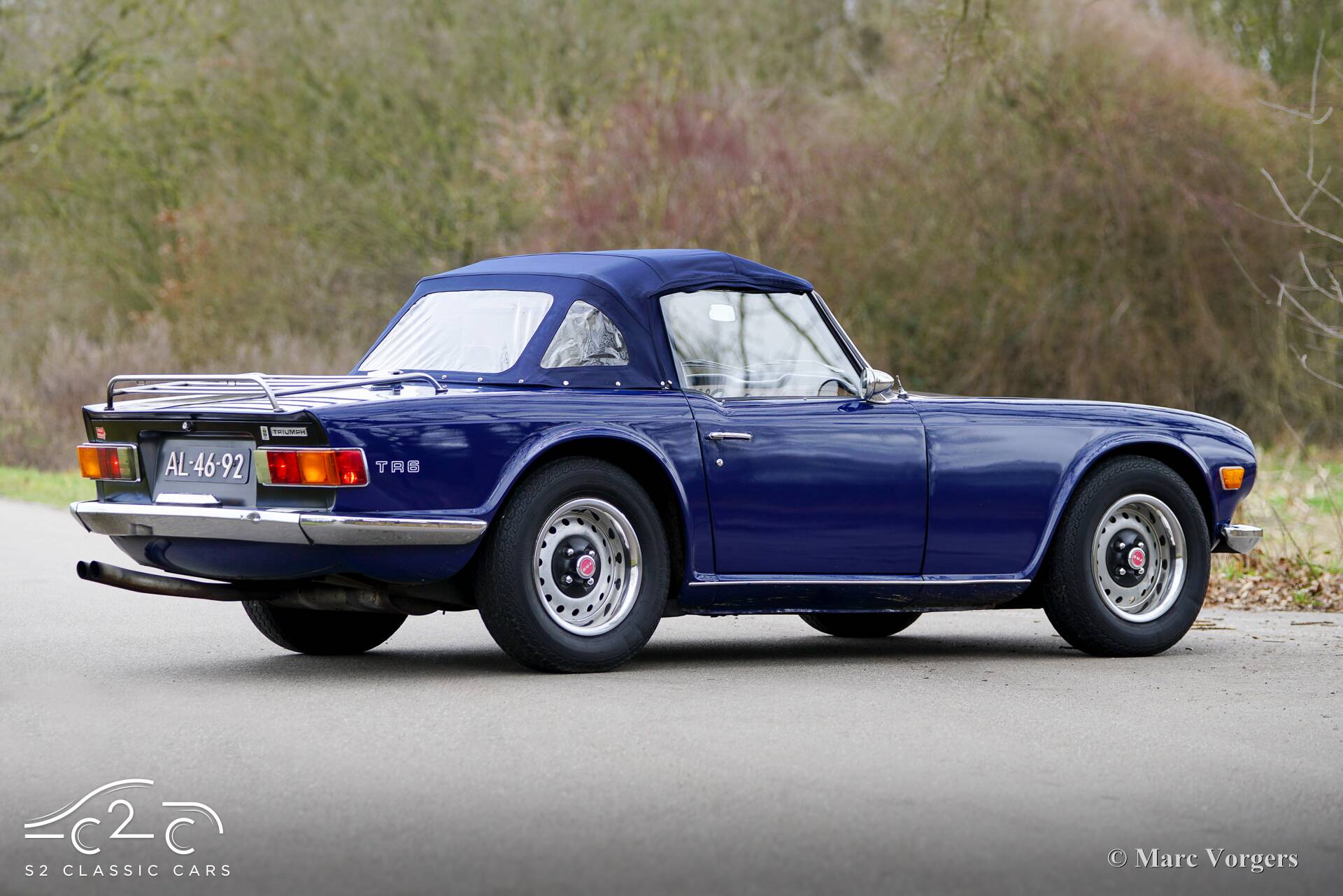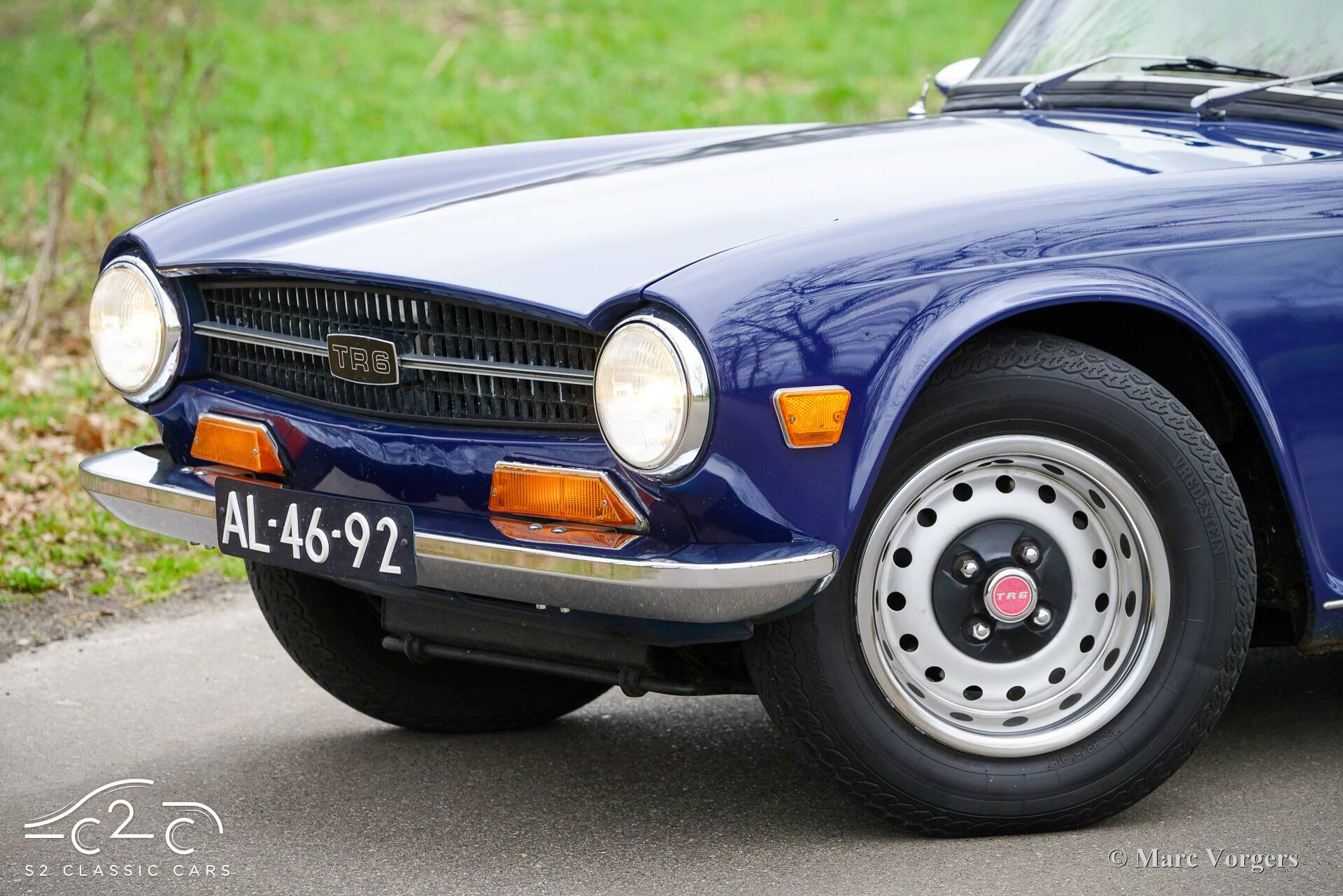 Originally delivered to the USA (Alaska), the car underwent a bare‑metal body restoration in the late 1990s; photographs and part of its American history file are included. The TR6 was imported into the Netherlands on 28 May 2003 and has remained with the same owner for the past 23 years.