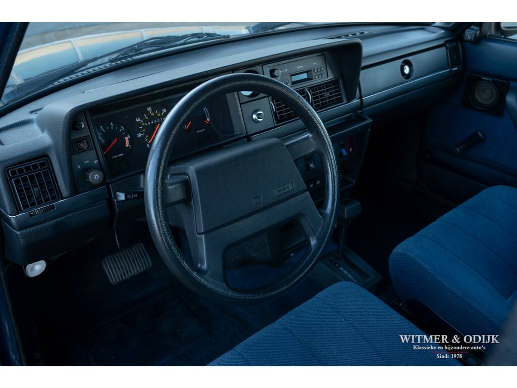 Twintig jaar lang bouwde Volvo de beroemde 240 serie. Zoveel succes kende slechts weinig automodellen. Het model, herkenbaar en op zich staand als geen ander, werd een regelrechte klassieker. Tegelijkertijd kunt u er nog wel eens een in het dagelijkse verkeer tegenkomen, zo'n exemplaar is optisch meestal niet in een bijster goede conditie. Rijden doet zo'n 240 altijd, zelfs gemakkelijk naar de half miljoen kilometers. Daarom zijn ze uiterlijk niet altijd even fraai en roestvrij. Wie er zichzelf en van alles mee wil vervoeren heeft er een uitermate trouw werkpaard aan. Wie ook trots op haar verschijning wil zijn zoekt naar een exemplaar als deze. Bovendien biedt een exemplaar met een lage kilometerstand nóg meer continuïteit dan waar de 240 serie al voor staat. Best bijzonder, meestal heeft de lokale aannemer of stukadoor er al in huisgehouden en die wilt u niet. Voor wie zich een echt fraai en technisch goed exemplaar wenst, waar u samen gemakkelijk de pensioengerechtigde leeftijd mee gaat halen, is dit dé auto. Geheel origineel, in stijlvol diep donkerblauwe uni-lak met een nog diepe glans. Prachtig origineel interieur zonder gebruikssporen, voorzien van airconditioning. Klaar voor wie een klassieker zoekt met ruimte en er eventueel dagelijks, het is een automaat, mee zou willen rijden. Ook zakelijk zeer interessant gezien de bijtelling van € 140,- per maand, laat ons u dat desgewenst voorrekenen.