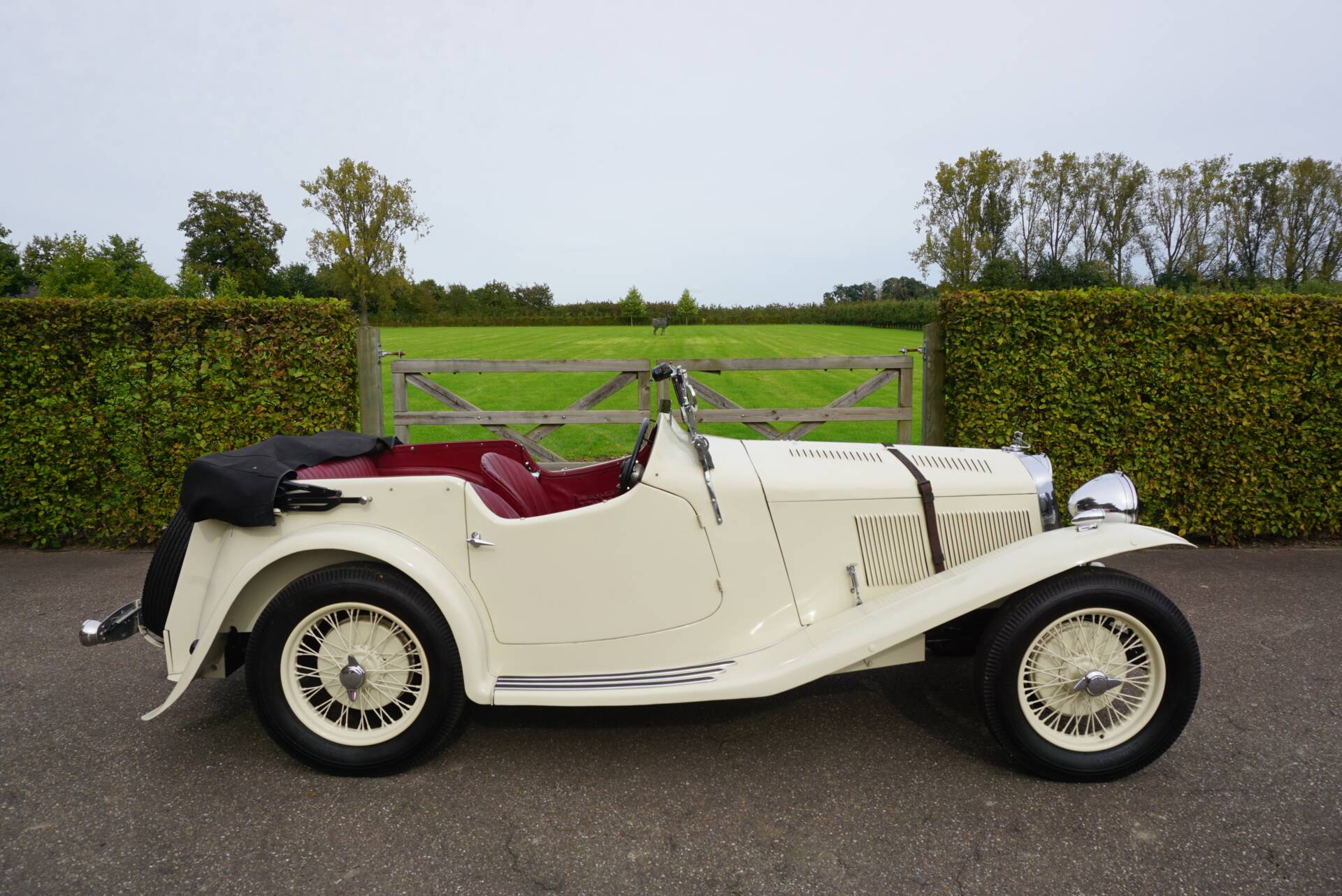 This beautiful Wolseley Hornet began life as a closed saloon. in 2009, the car was extensively restored in Germany by a marque specialist. During the restoration, the saloon body was replaced by an old ‘Daytona’ body fromt Eustace Watkins (London, UK), which was also fully restored. The Hornet is powered by the original (rebuilt) and very smooth-running original 1378cc six-cylinder inline engine, mated to a four-speed manual gearbox. This beautiful special is in sublime top condition and the car gives you the special pre-war driving experience in abundance! The windscreen can be folded down. This is a rare six-cylinder Wolseley Hornet and a sublimely built special!