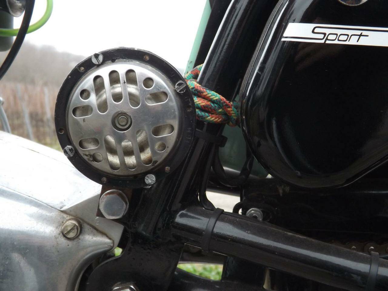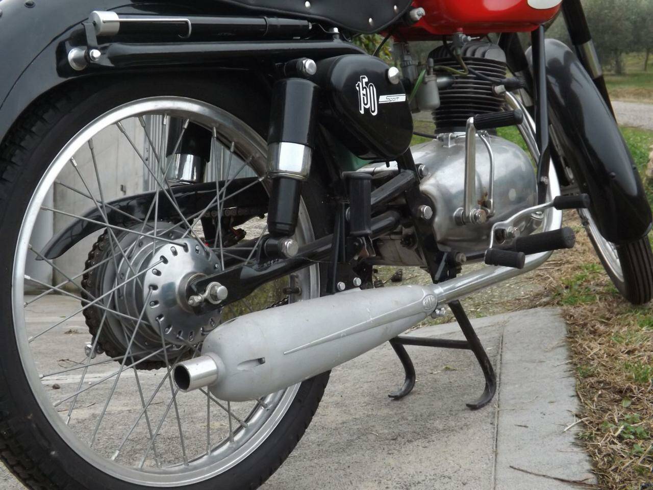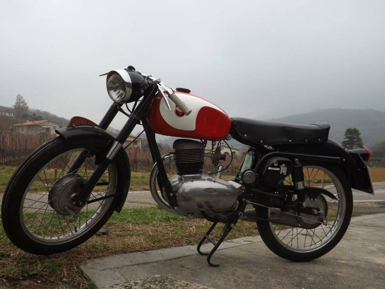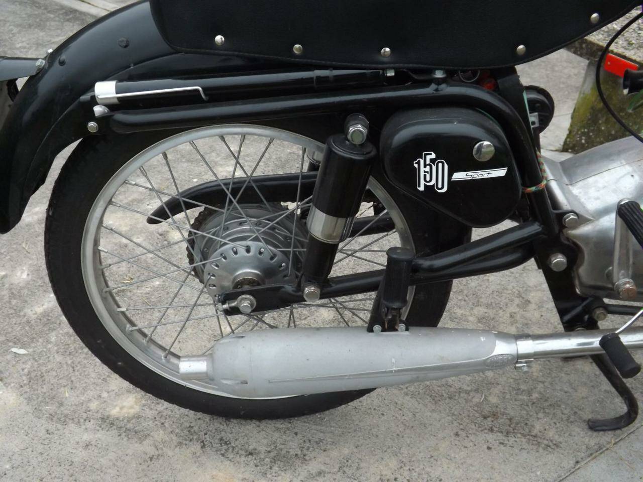 La Gilera 150 Sport del 1955 è una moto sportiva monocilindrica a 4 tempi, nota per il design rosso/nero, il manubrio basso e il serbatoio allungato da 13 litri. Eroga circa 7,5 CV, consentendo una velocità massima di circa 90-100 km/h. Dispone di cambio a 4 marce, freni a tamburo da 150 mm e sospensioni telescopiche
