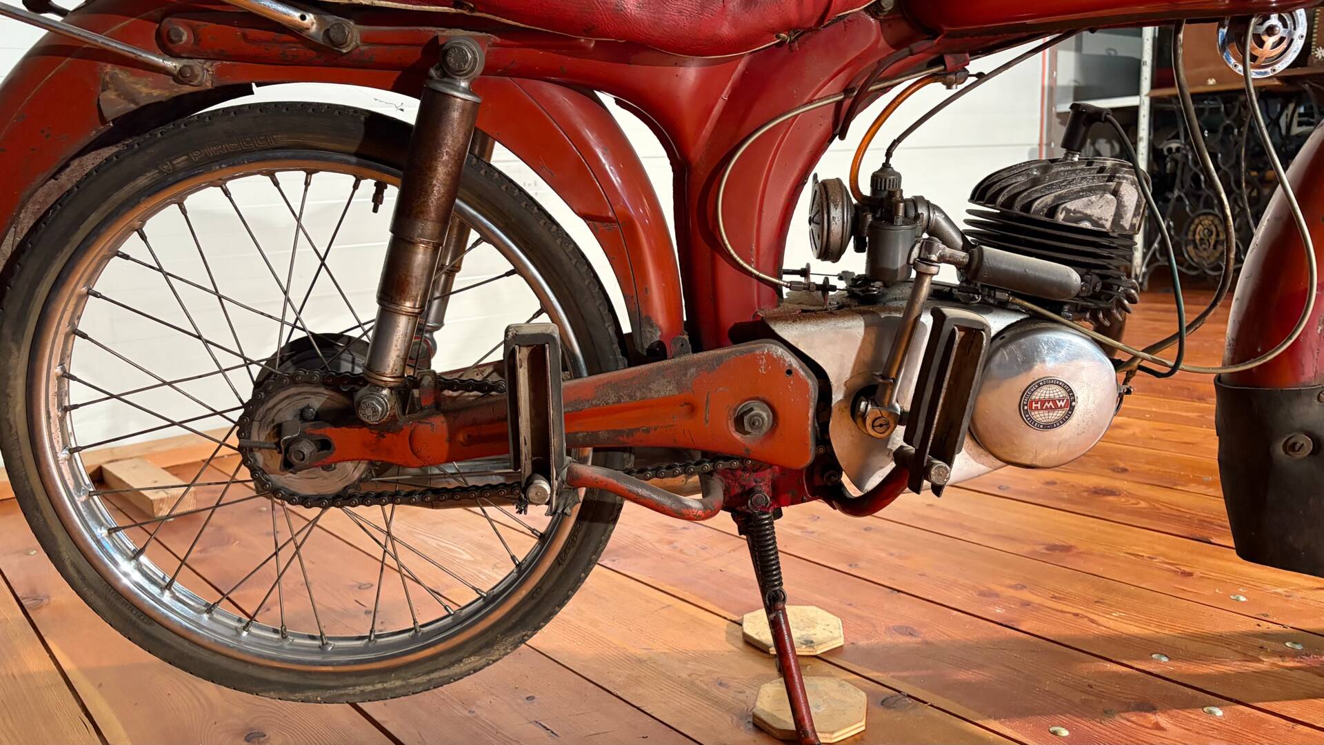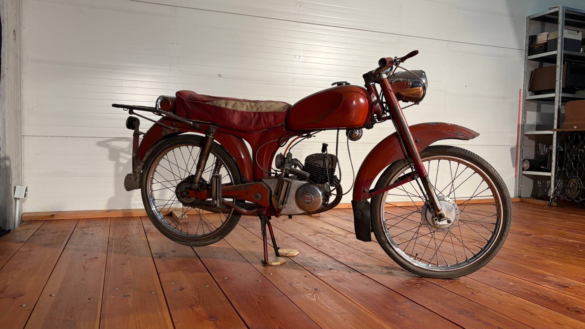 Die HMW 75 LM „Wiesel“ war ein wendiges Leichtmotorrad aus österreichischer Produktion, gebaut für den Alltag auf schmalen Straßen und steilen Anstiegen. Mit ihrem 75-ccm-Zweitaktmotor bot sie spürbar mehr Durchzug als die 50er-Klasse, ohne gleich erwachsen wirken zu wollen. Mitte der 1950er-Jahre entstanden nur überschaubare Stückzahlen, was das „Wiesel“ heute zu einer echten Rarität macht. Der Name passt: klein, flink und erstaunlich zäh. Ein Fahrzeug, das beweist, dass man auch mit wenig Hubraum ordentlich vorankommen konnte.