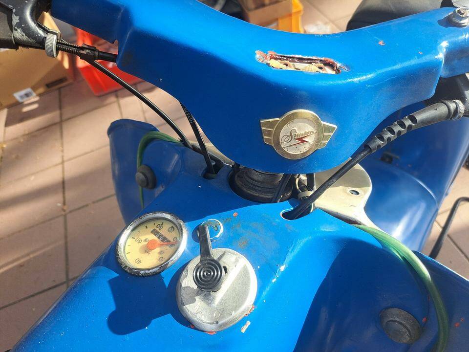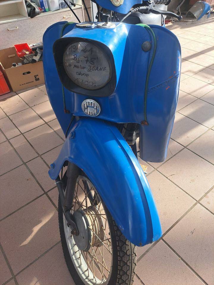 Restaurationsobjekt , Motor läuft sehr gut, Ständer kippelt, keine BE , Kein UngarnMoped , Lackschäden, kleine Beulen, Reifen alt , Motor 3 Gang , Tank innen rostfrei