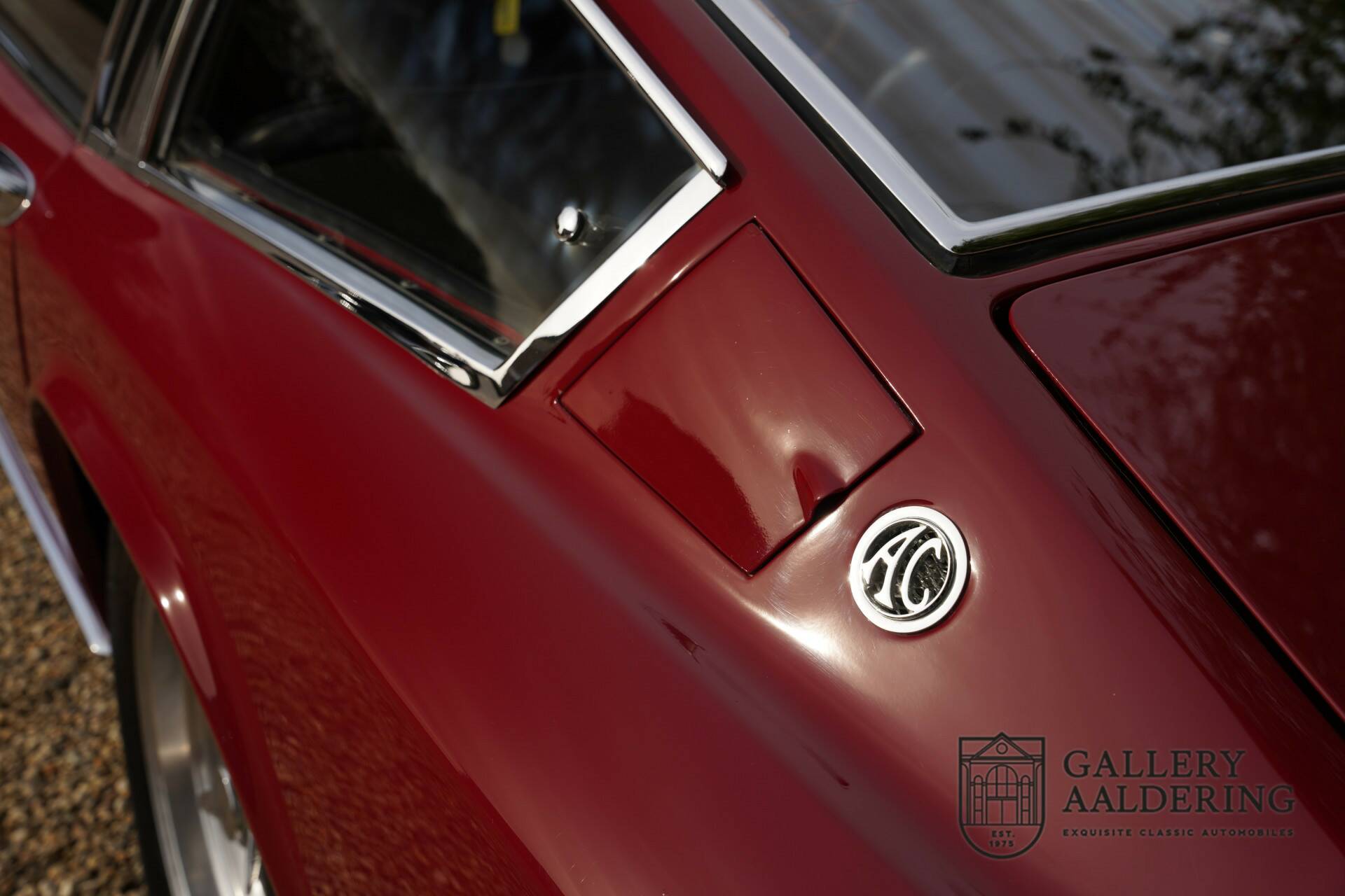 DIESES FAHRZEUG IST IN UNSEREM LAGER, Anzeige nur nach Vereinbarung. Das Konzept des italienischen Stils in Kombination mit amerikanischer V8-PS-Leistung war in den späten 1960er Jahren gut etabliert und beeinflusste zweifellos die Entscheidung von AC Cars, seinen feuerspeienden Cobra-Sportwagen in einen Luxus-Grande Routière umzugestalten. Ein Cobra MkIII-Fahrwerk mit Schraubenfederung wurde im Radstand um 6 Zoll verlängert und nach Italien geschickt, um von Pietro Frua mit einer eleganten Stahlkarosserie verkleidet zu werden. Das Ergebnis spricht für sich. Das erste Auto, ein zweisitziges Cabriolet, wurde pünktlich zum Earls Court Motor Show 1965 fertiggestellt, während auf dem Genfer Salon im darauffolgenden Jahr ein noch sensationelleres Coupé im Fastback-Stil vorgestellt wurde. Obwohl der 428ci (7,0-Liter) Ford Galaxy-Motor weniger Leistung produzierte als der Cobra 427, konnte die 345-PS-Variante alle von den Kunden gewünschten Leistungen liefern.