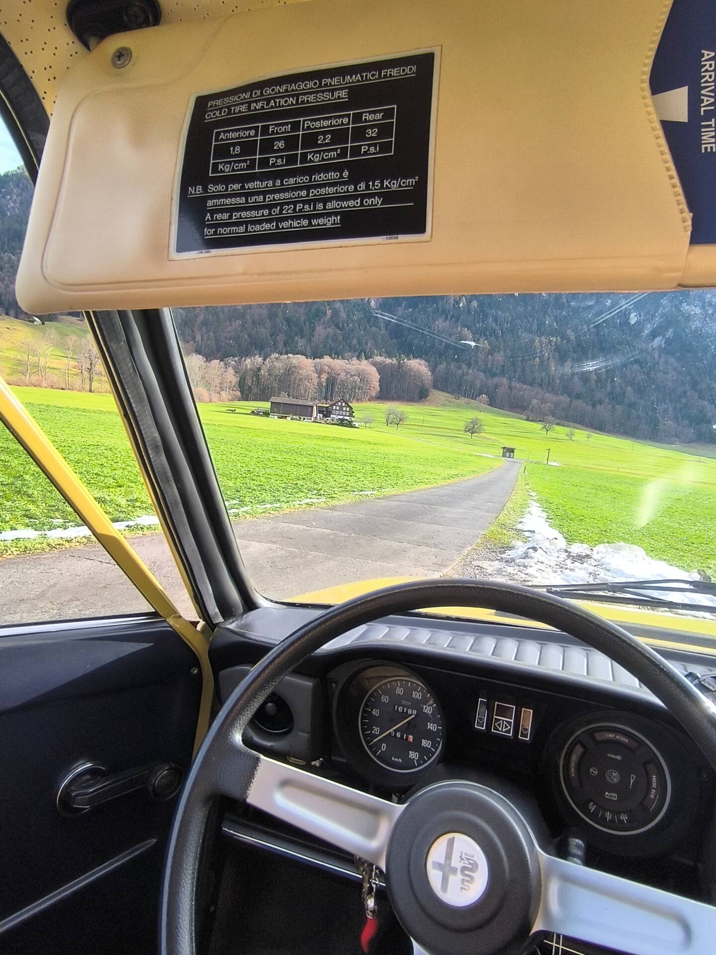 Farbe Giallo Positano (Senfgelb) mit Dunkelblauem Kunstlederinterieur