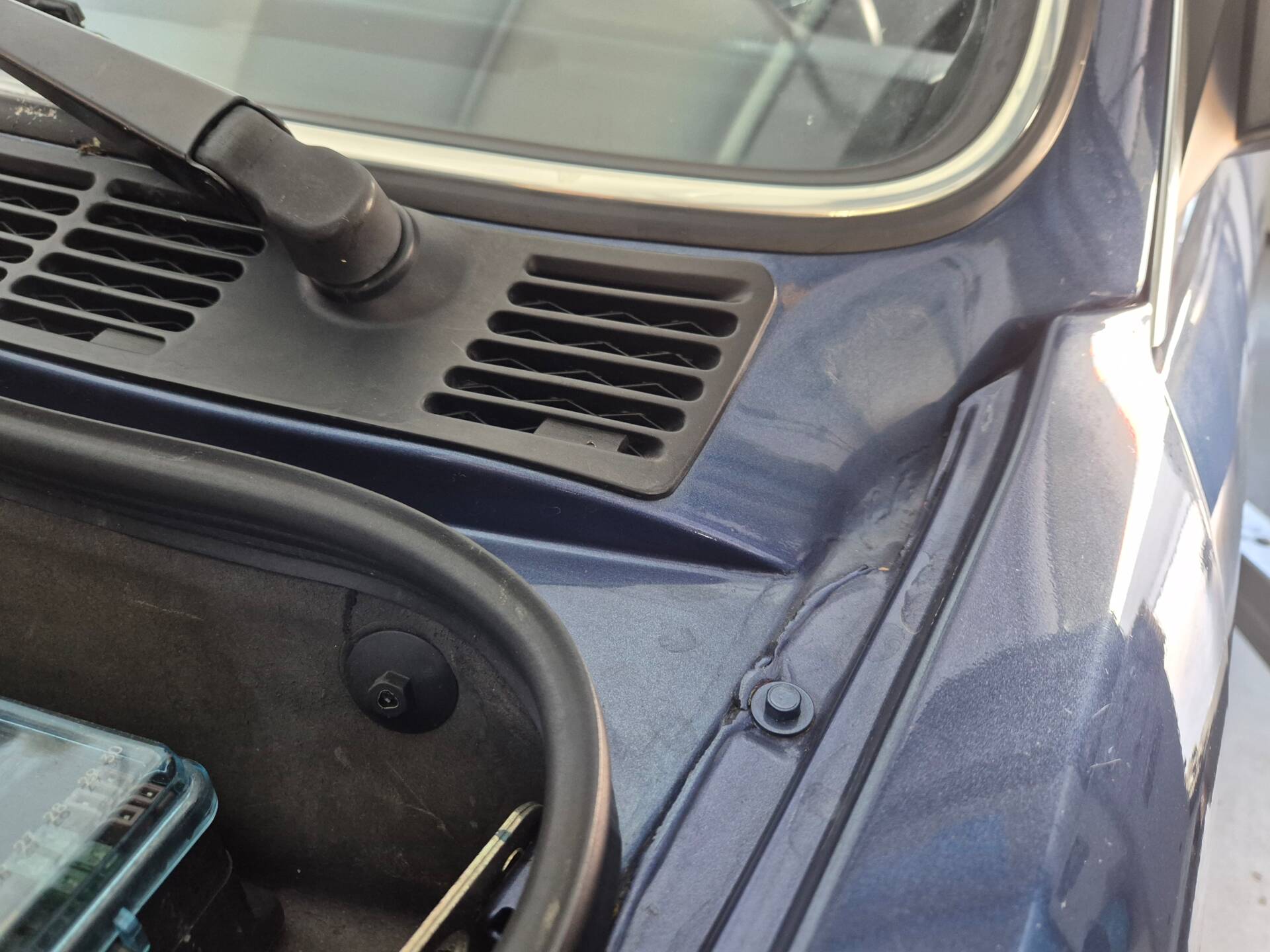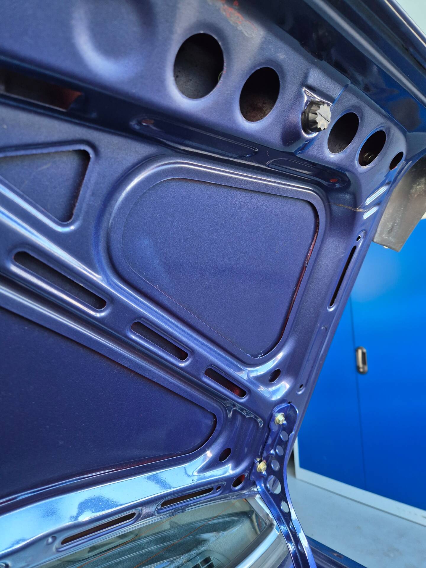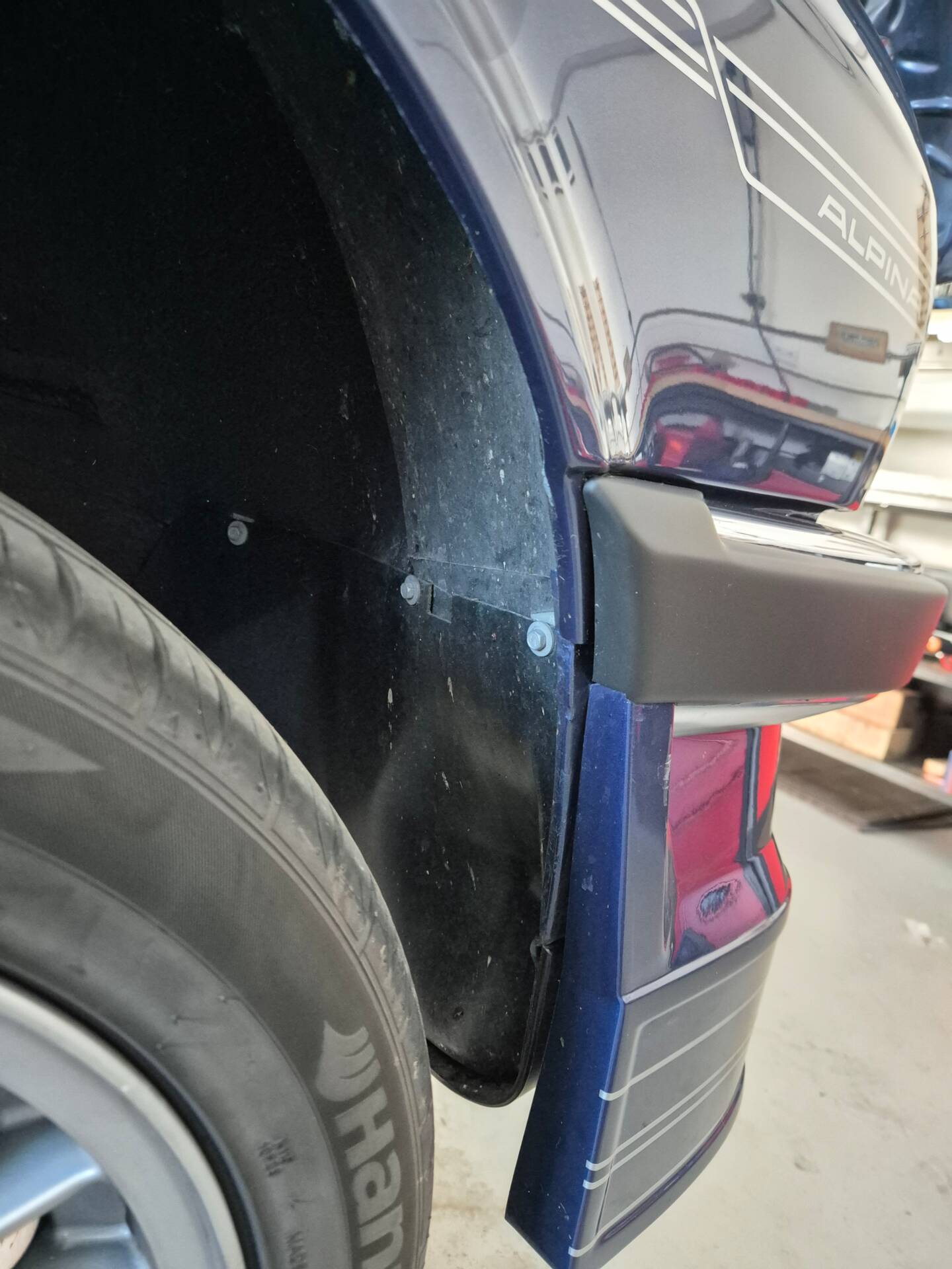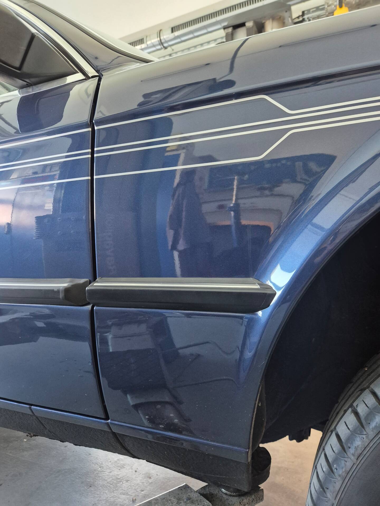 Das Auto wurde vor Jahren von zinnoberrot in Alpina-blau metallic professional umlackiert.