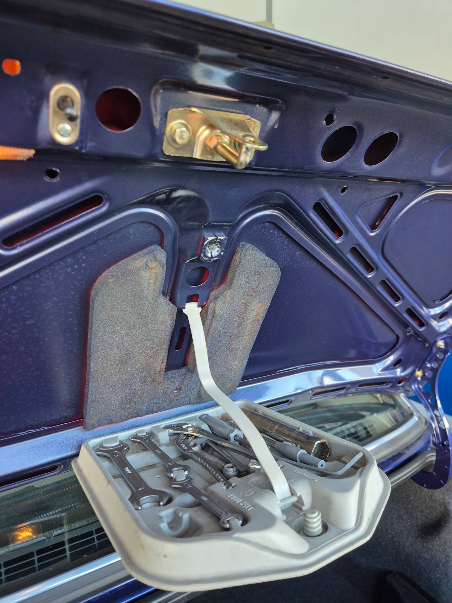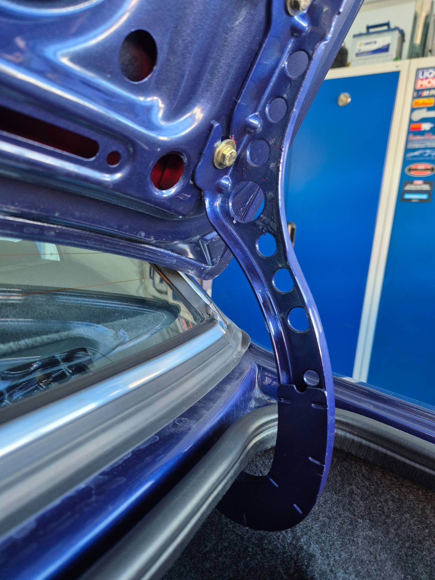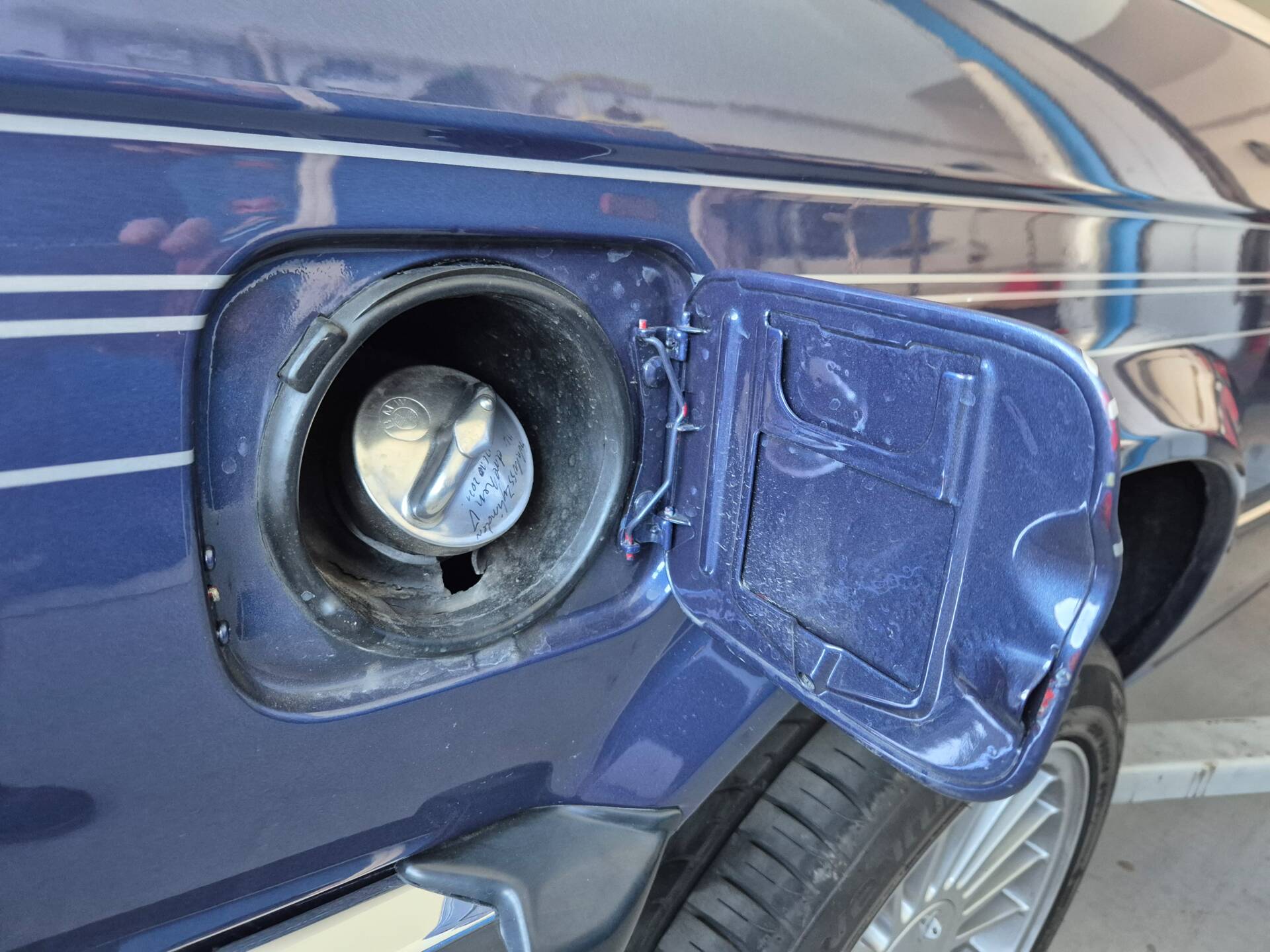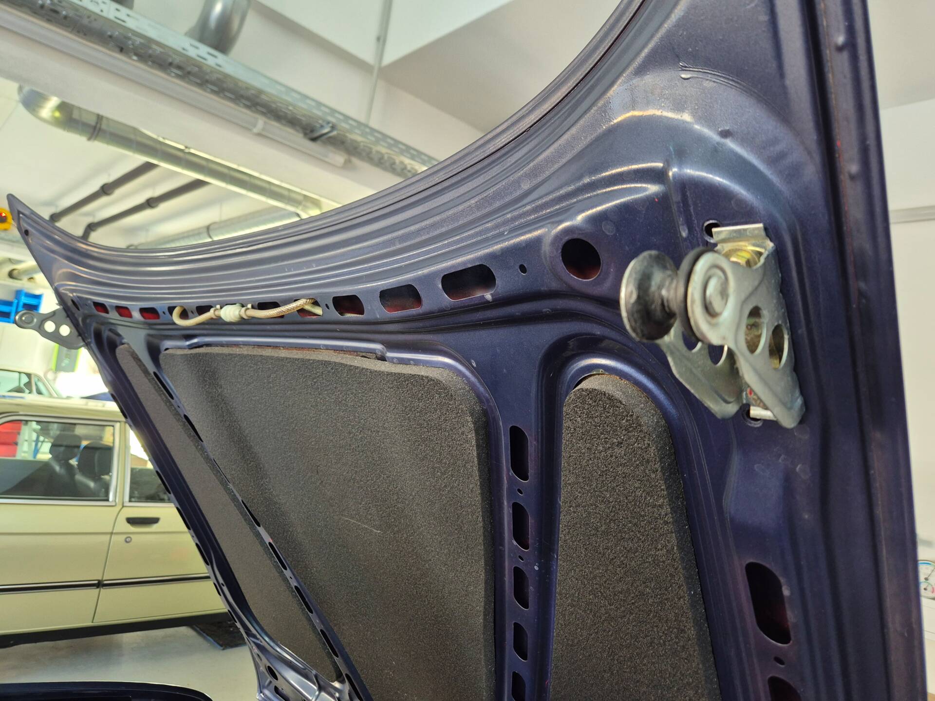 Das Auto wurde vor Jahren von zinnoberrot in Alpina-blau metallic professional umlackiert.