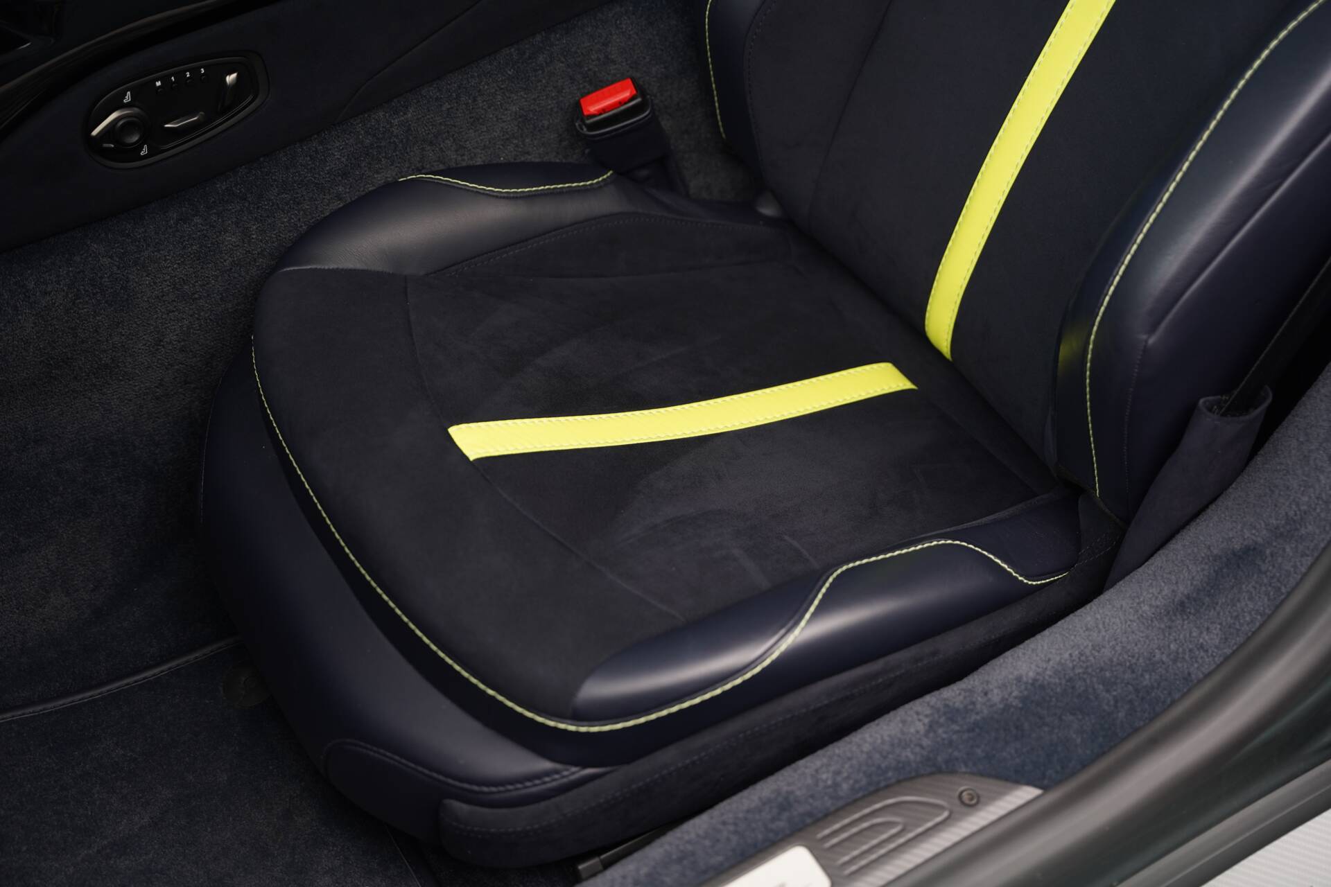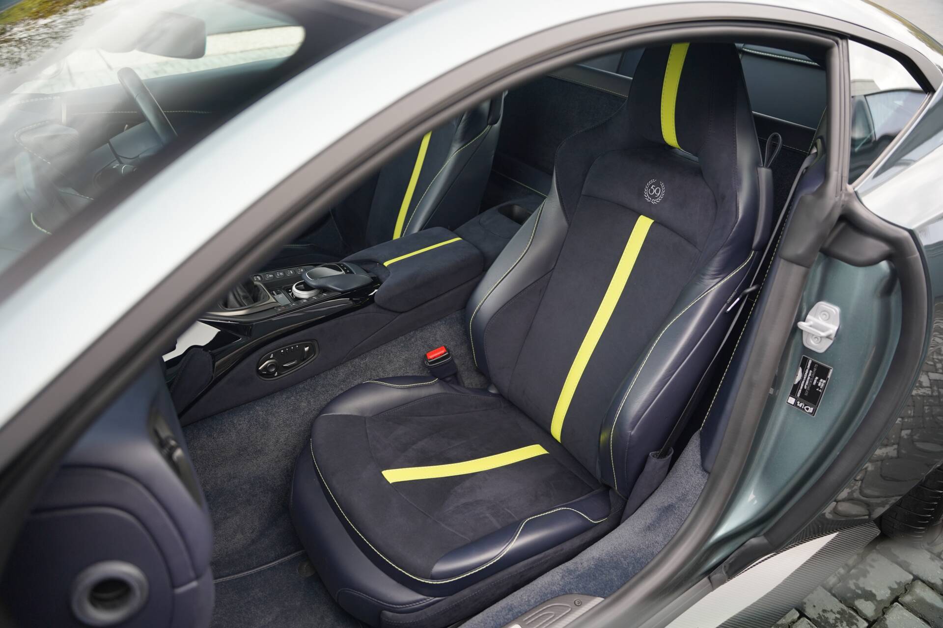 Inside, the cabin is a celebration of materials and craftsmanship, featuring leather, Alcantara, and bespoke ‘59 Edition’ embroidery. Finished in Dark Knight leather and Alcantara with complementing Lime Green accents and stitching, the heated and adjustable Sports seats provide a perfectly judged driving position and the exposed shift mechanism serves as a visual and tactile reminder that this is a machine built for enthusiasts. Interior specification includes a Carbon Fibre Jewellery Pack, AMR aluminium and carbon treadplates, dual zone climate control, front and rear parking sensors, 360-degree camera, heated seats with memory function, sat-nav, parking assist, heated rear screen and more.