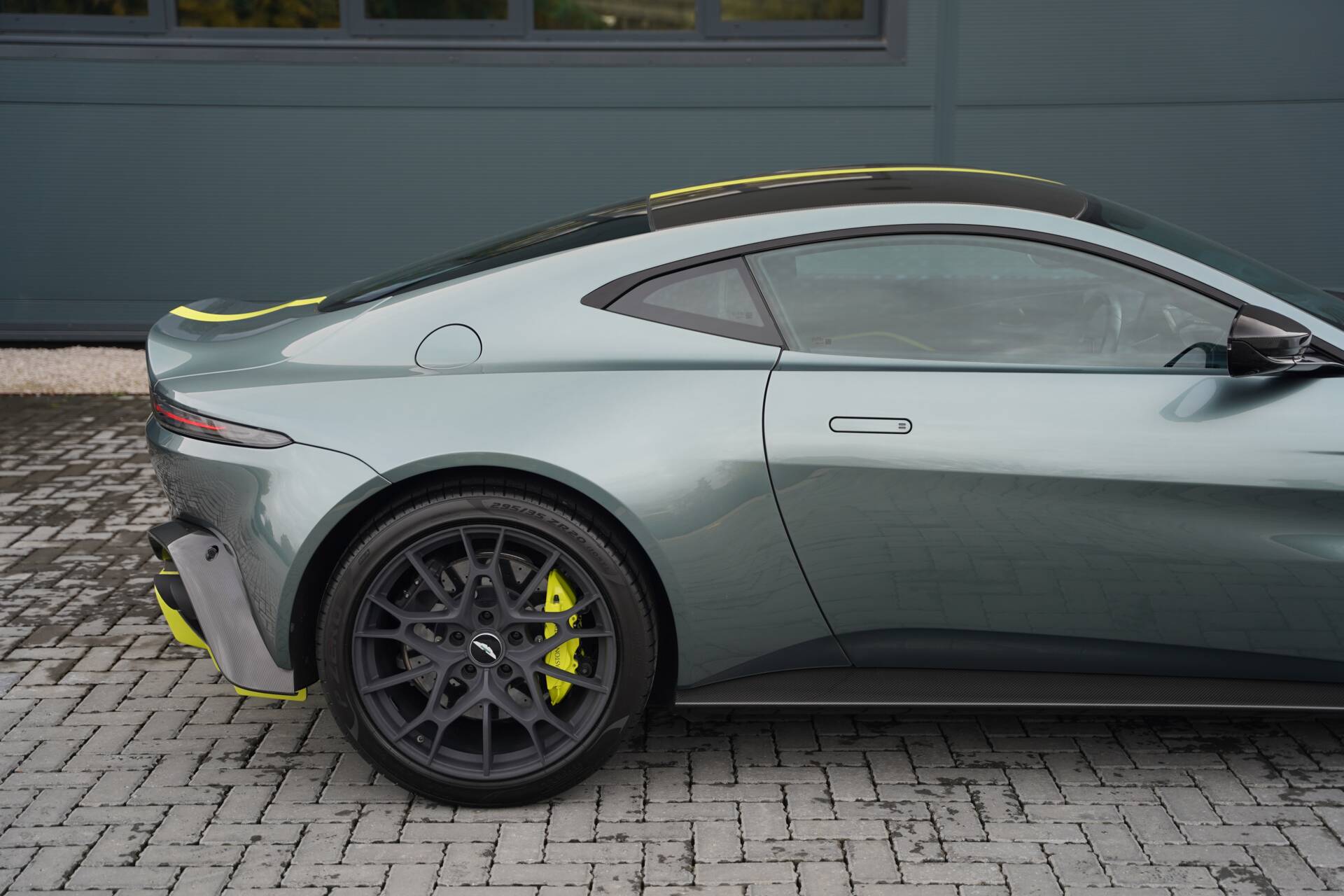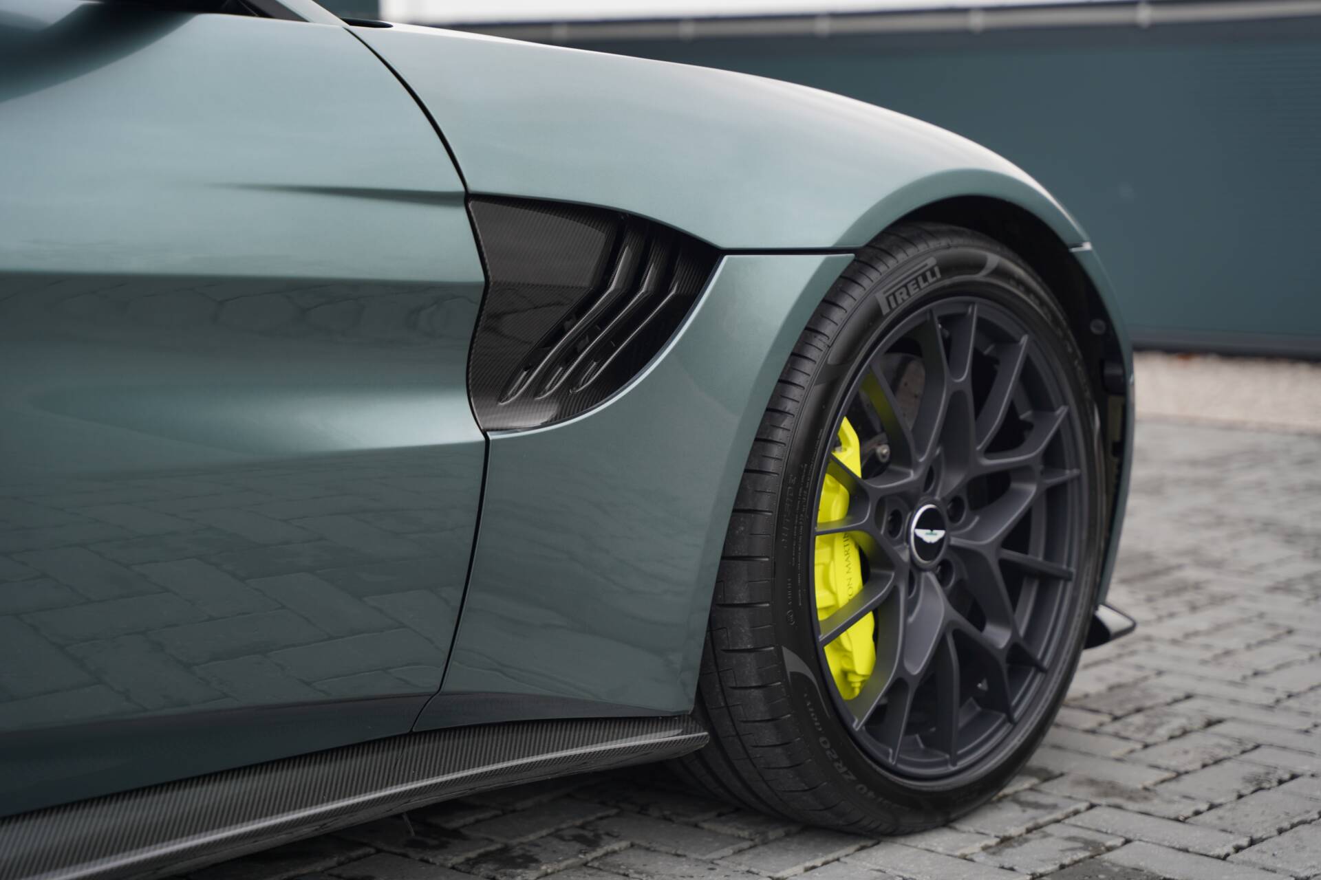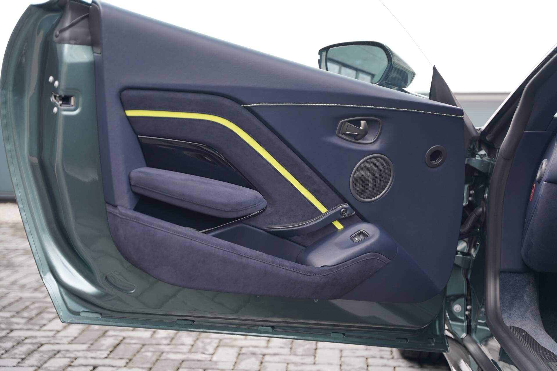 This particular car is finished in the iconic Stirling Green with Lime accents that references the racing spirit that inspired its creation. The AMR 59 Edition was developed by Aston Martin’s ‘Q by Aston Martin’ bespoke division, with each example receiving a unique specification and detailing that nods to the DBR1’s success. Subtle touches such as carbon fibre detailing, Lime contrast graphics, and embroidered ‘59’ logos distinguish it from the standard Vantage AMR, while the overall execution remains tasteful and refined. The large multi-spoke forged 20 inch wheels house the bold Lime Green brake calipers and the carbon ceramic brakes.