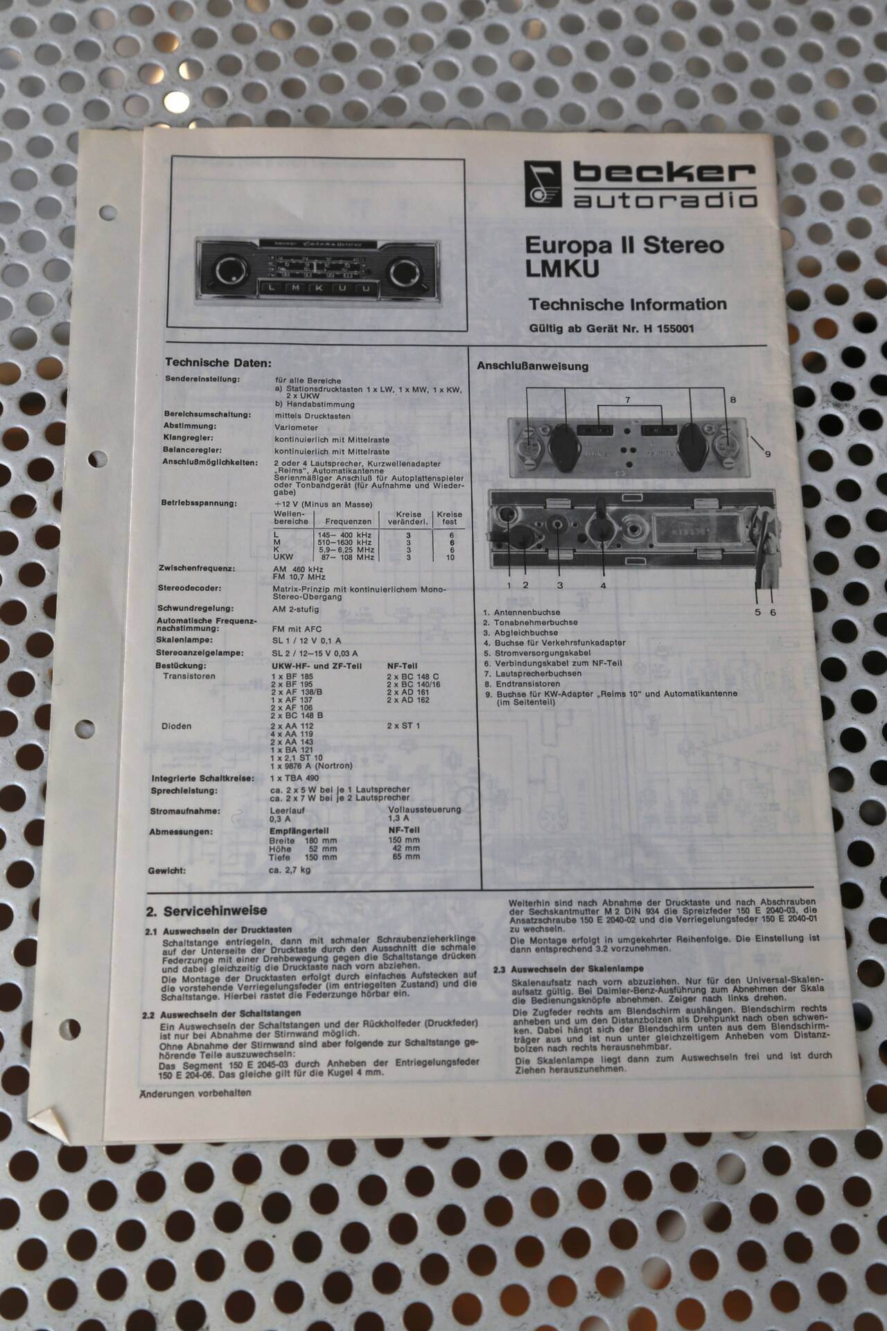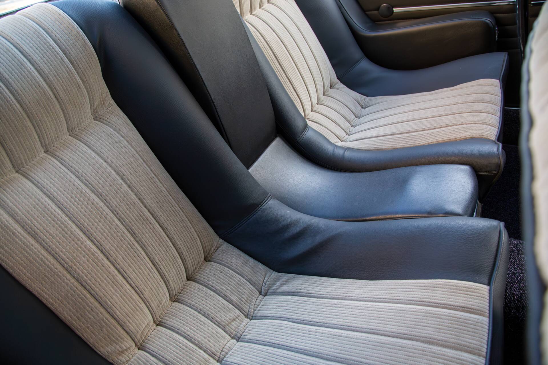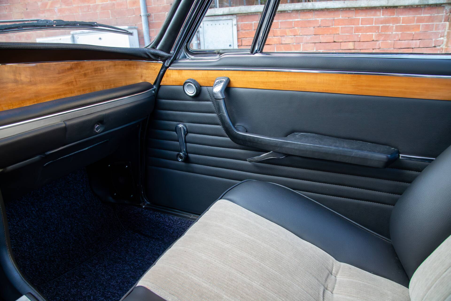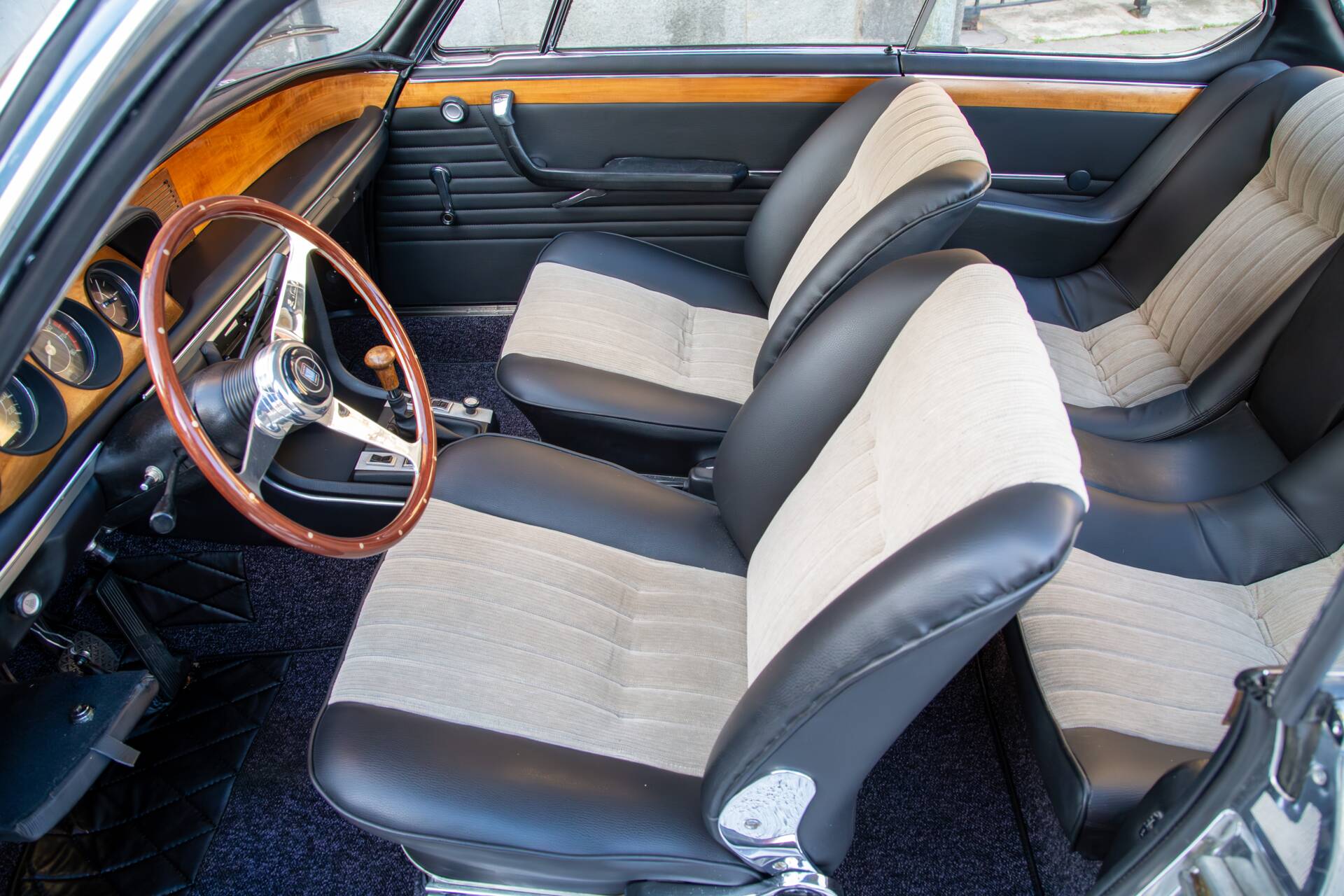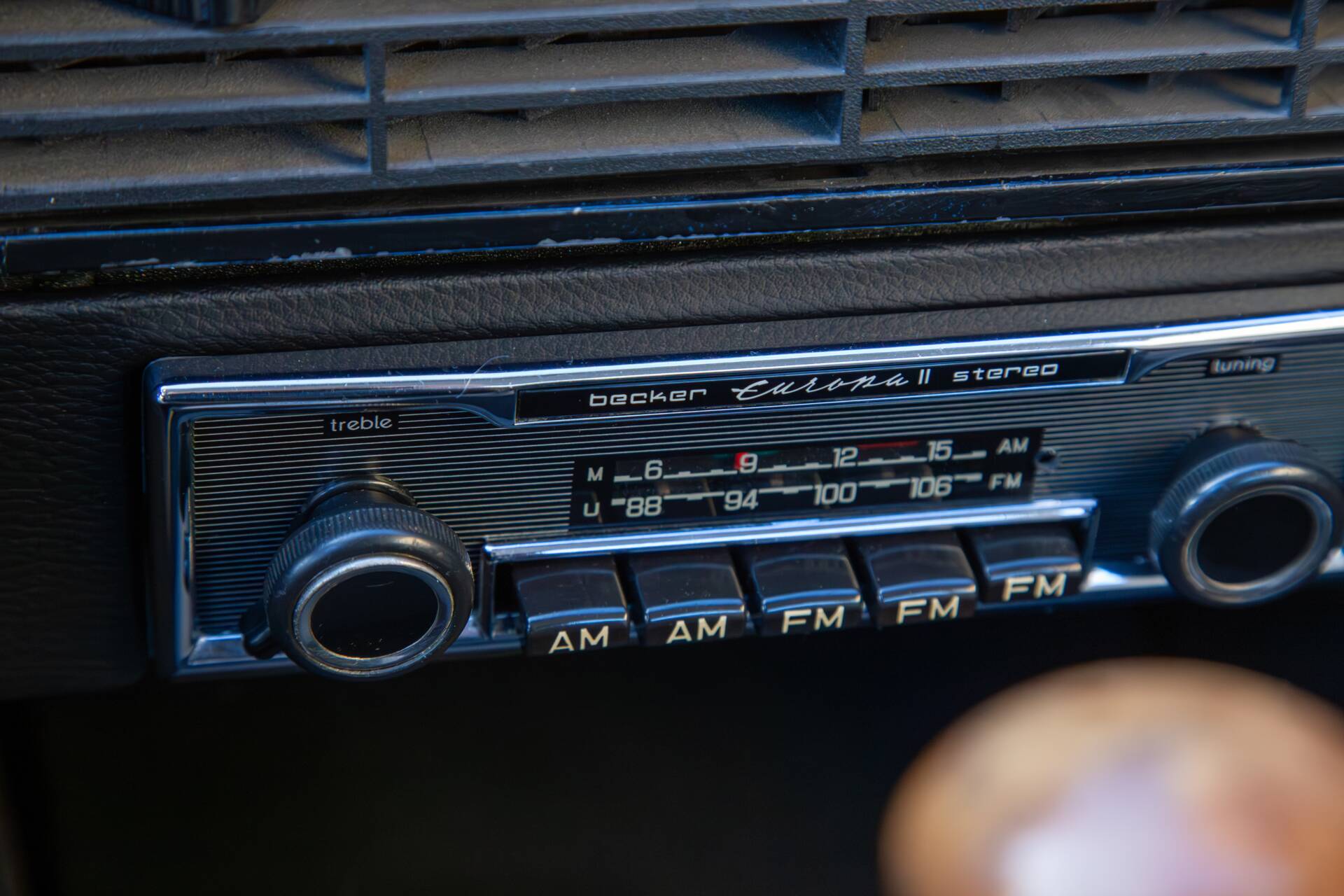 Das Interieur wurde laut Angaben vollständig neu aufgebaut, einschließlich Holzelementen, Armaturenbrett, Dachhimmel und Teppichen. Die Sitze und Türverkleidungen präsentieren sich laut Anbieter in überarbeitetem Zustand. Die klassische Becker Europa II Radioanlage und ein Nardi-Sportlenkrad verleihen dem Innenraum periodengerechten Charakter.