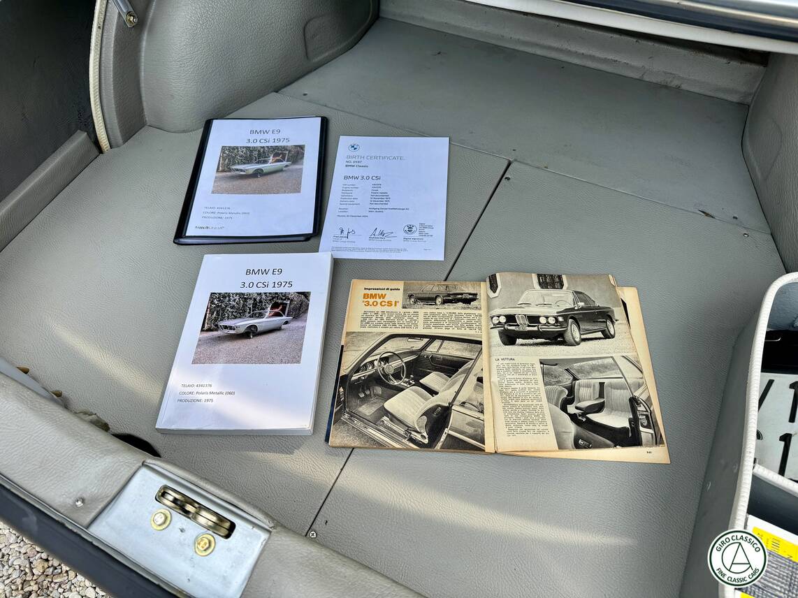 This BMW 3.0 CSi is accompanied by its official Birth Certificate issued by BMW Classic, confirming the original color combination, matching serial numbers, and delivery date.