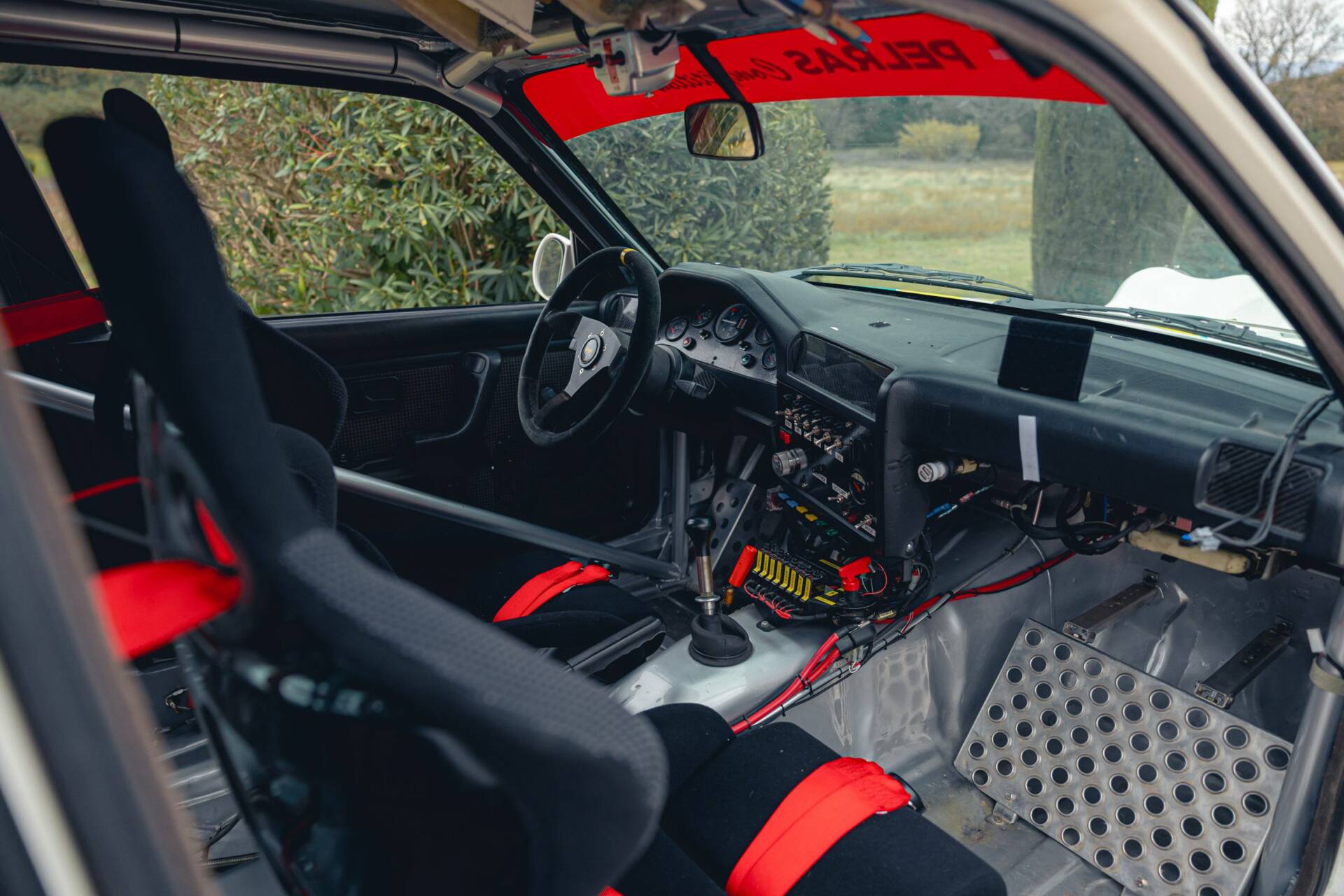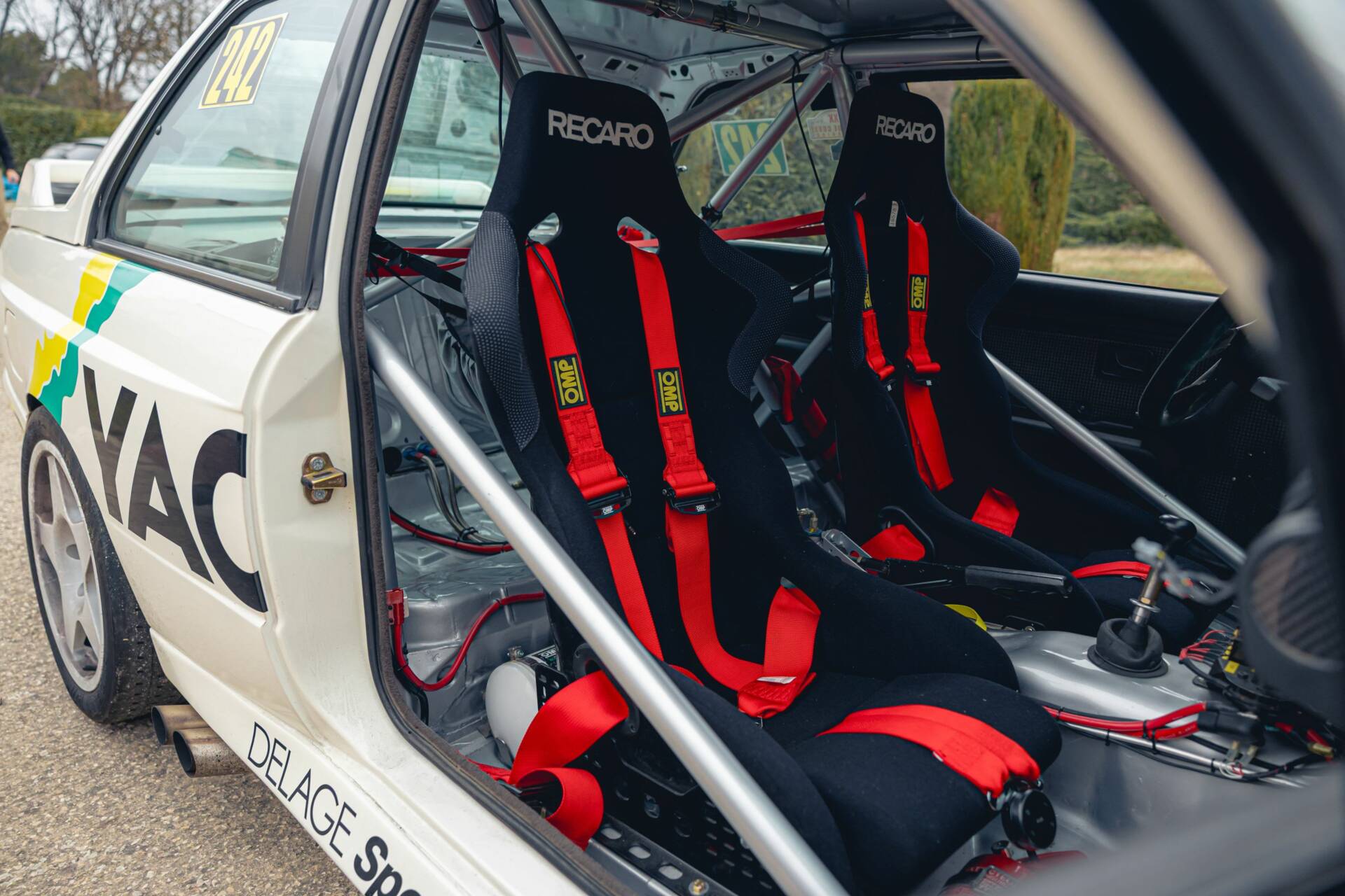 À bord, l’auto est équipée d’un arceau cage, de 2 baquets Recaro, de harnais 5 points OMP, d’un intercom ainsi que de tous les autres équipements nécessaires à un équipage engagé en compétition officielle. Tous les éléments de bord sont fonctionnels.