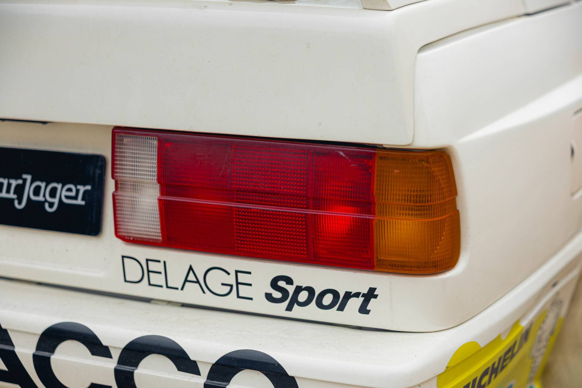 La carrosserie est en très bonne condition et exempte de corrosion. Les alignements et les ajustements sont bons. La peinture blanche, parfaitement tendue, est complétée par des stickers Yacco, sponsor principal. Les jantes sont bien conservées. Les optiques de phares ne présentent pas de défauts particuliers. Cet exemplaire est équipé de phares additionnels longue portée.
