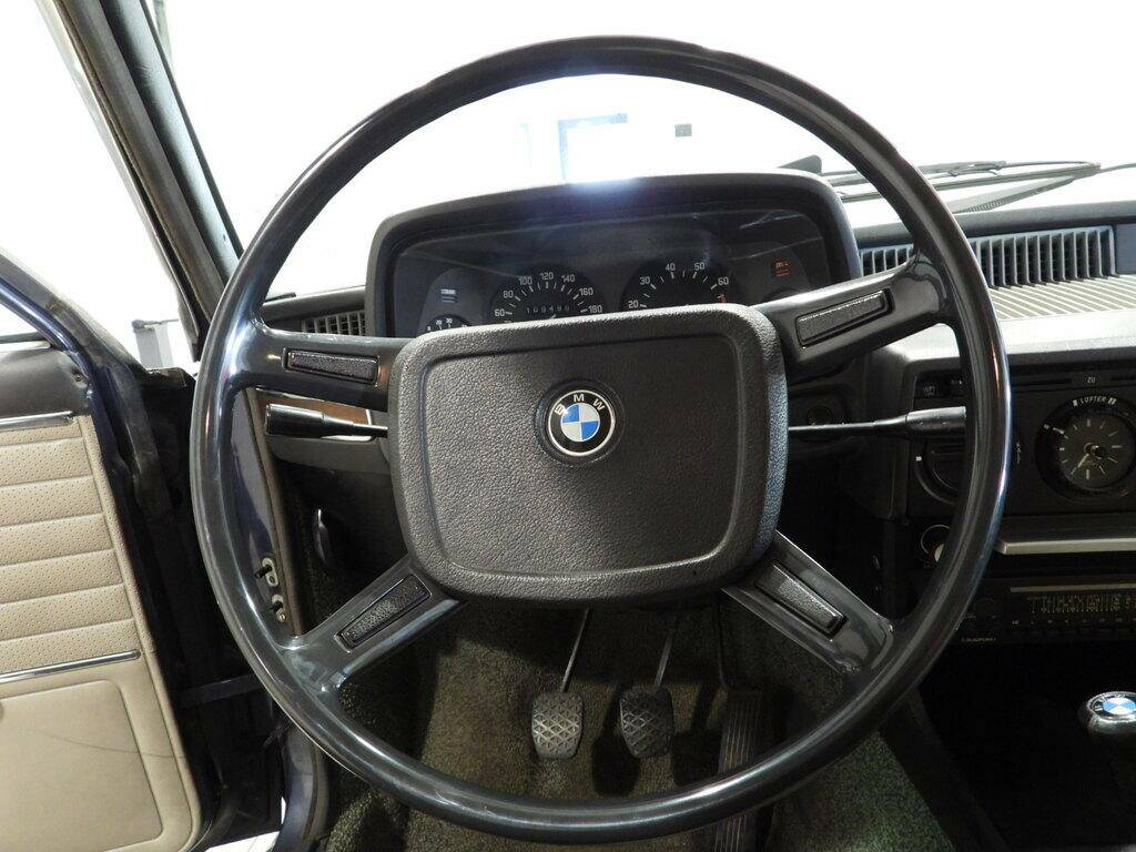 Sedili con poggiatesta anteriori in vellutino grigio e sky grigio con sedile lato guida regolabile in altezza ed inclinazione accessorio originale dell’epoca, Pannelli in sly grigio, Cinture di sicurezza a riavvolgimento automatico fissate ai montanti delle porte accessorio originale dell’epoca, Volante a quattro razze regolabile assialmente accessorio originale dell’epoca, Moquette al pavimento in bouclet verde, Bracciolo posteriore, Autoradio Blaupunkt OSLO SM 21 AM/FM con antenna al parafango anteriore sinistro con altoparlanti Autovox ai pannelli anteriori, Vetri bruniti, Specchio esterno lato guida cromato, Antifurto elettronico Cobra accessorio after market dell’epoca, Cerchio in ferro con calotta BMW e anello cromato con pneumatici PIRELLI P5 195/70R14, Staccabatteria