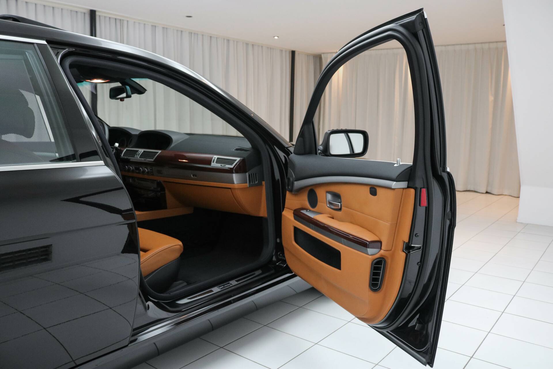 Dieser BMW 760i ist in BMW Individual Rubinschwarz Metallic lackiert, einem tiefen, eleganten Farbton, der den würdevollen Charakter des E65 perfekt betont. Das Fahrzeug steht auf originalen BMW Individual Leichtmetallrädern, die einen dezenten, aber exklusiven Eindruck vermitteln. Das Gesamtbild strahlt Luxus und Diskretion aus, genau wie es ein BMW-Flaggschiff erwarten lässt. Vollständig original und in perfektem Zustand.