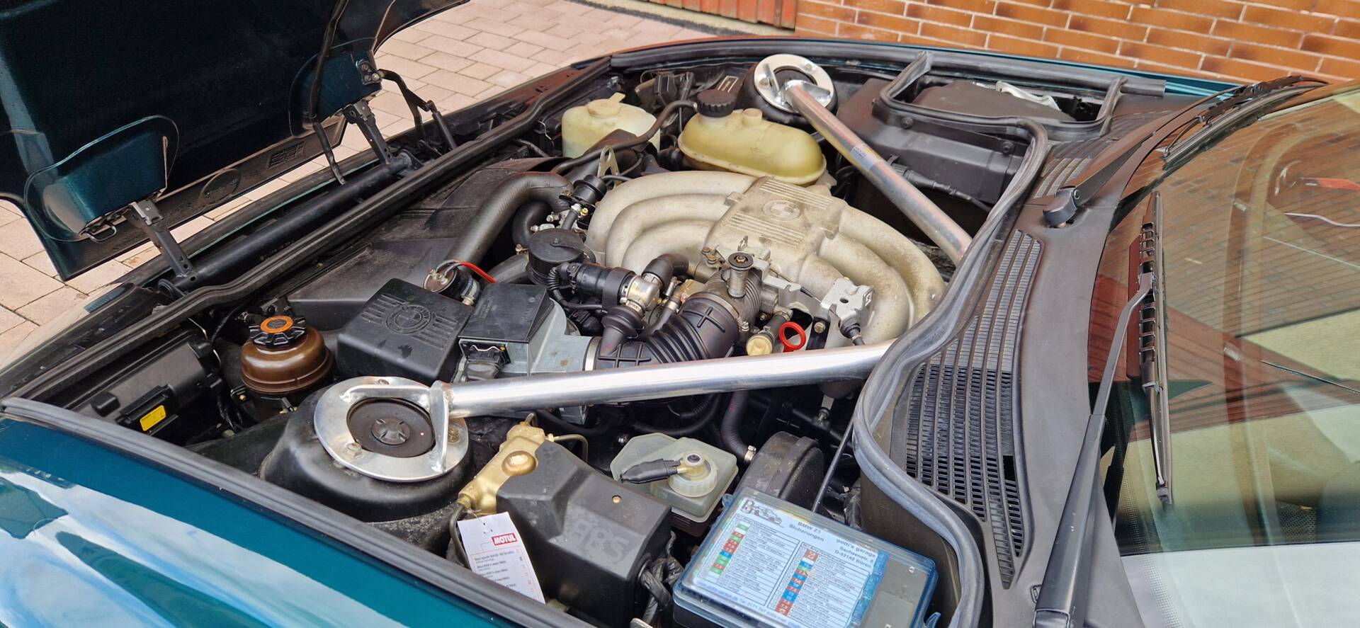 Der Z1 präsentiert sich in der seltenen Originalfarbe „Urgrün“ mit Interieur in „Fun Gelb“. Technisch läuft der Wagen tadellos. Das Leder im Innenraum (ausgenommen die Sitze) wurde vom Vorbesitzer fachgerecht neu bezogen. Verbaut sind eine 4-Rohr-Edelstahl-Abgasanlage sowie eine vordere Domstrebe, ansonsten befindet sich das Fahrzeug weitgehend im Serienzustand.