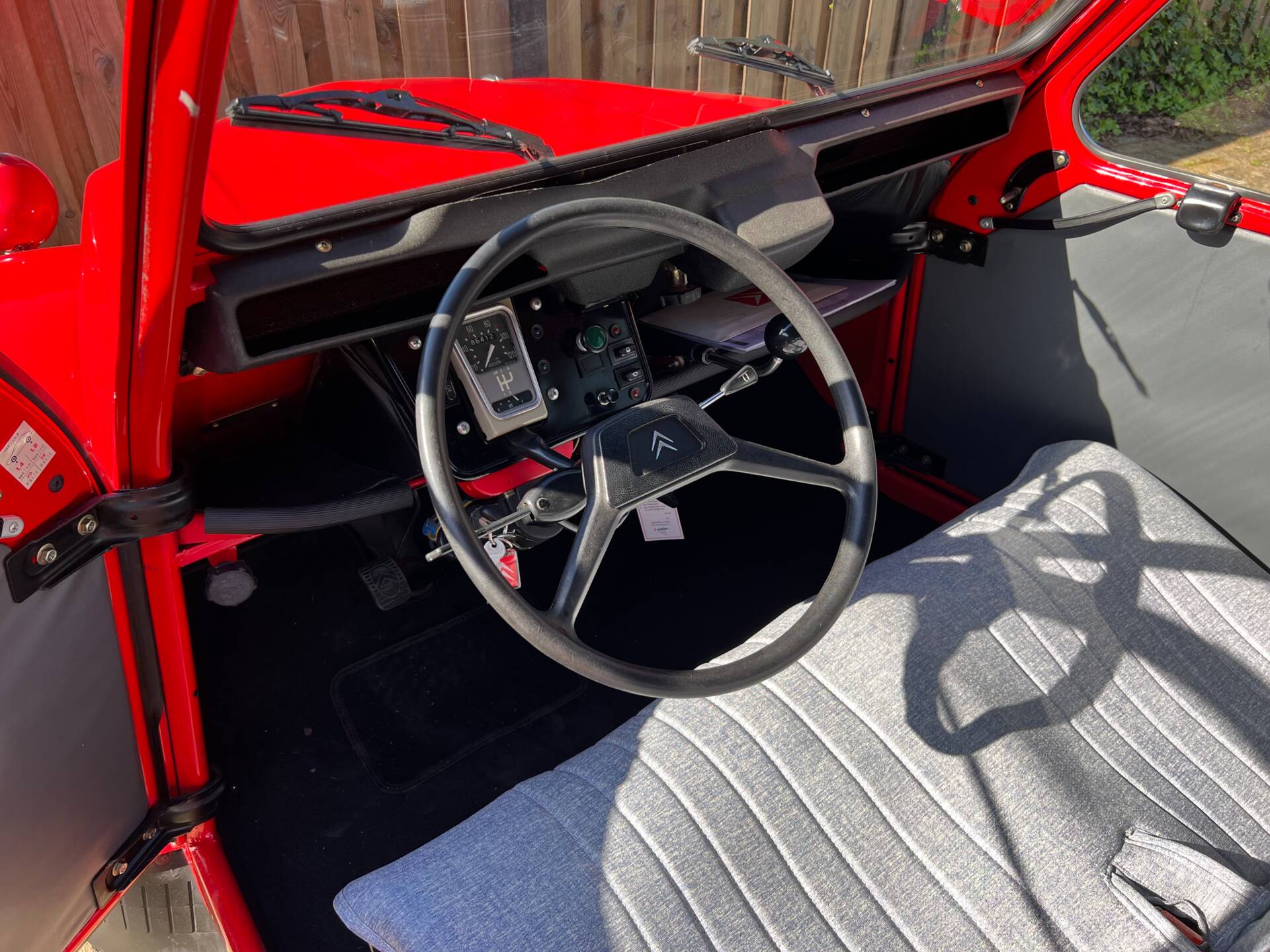 De 2CV is altijd volledig onderhouden en technisch in uitstekende conditie. Start, rijdt en schakelt zoals het hoort. De motor loopt mooi rustig, de versnellingsbak schakelt soepel en het onderstel voelt solide en strak aan.