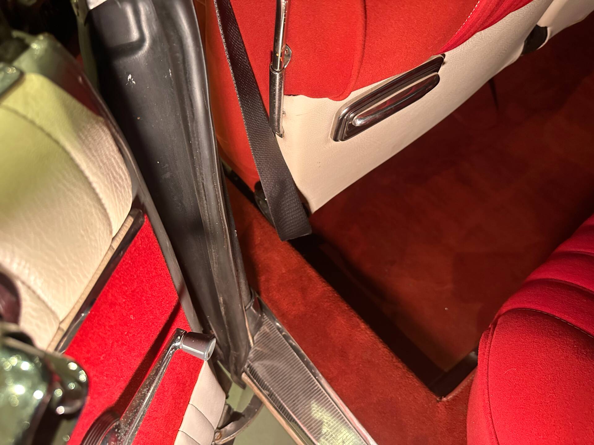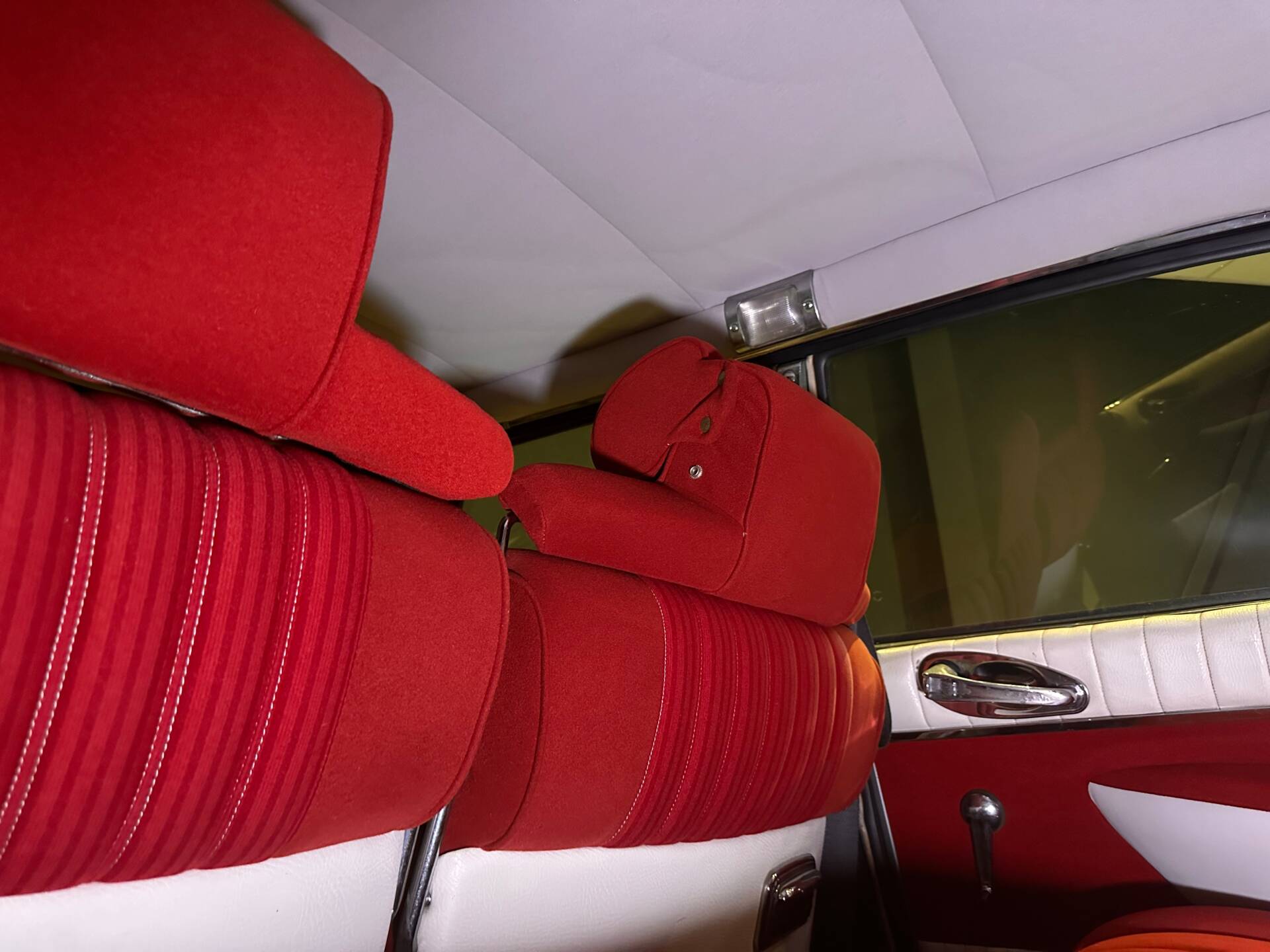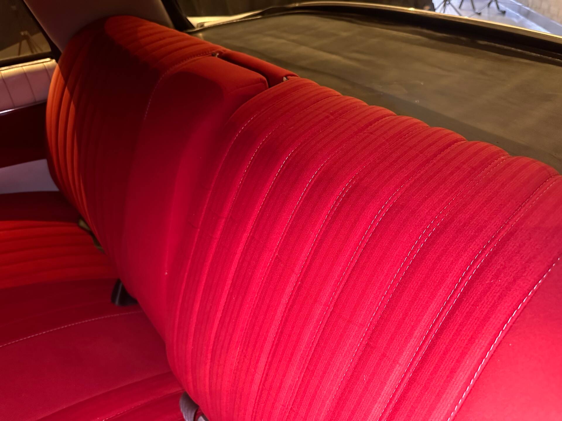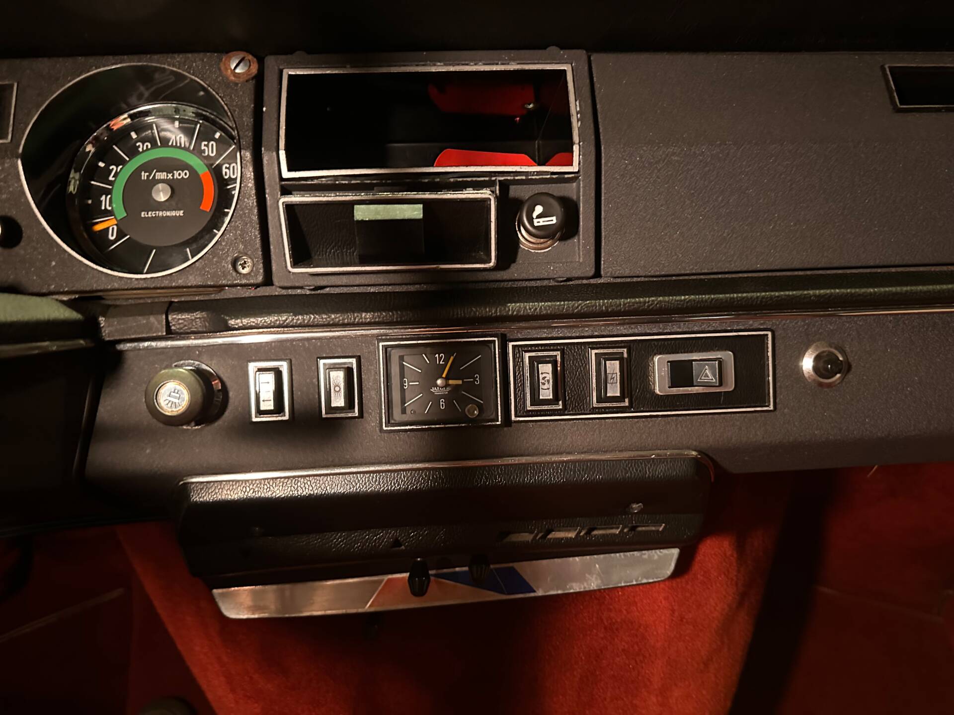 Im Innenraum erwartet Sie ein wunderschön klassisches Tissu Rouge‑Interieur – ein tiefroter Stoff, der dem Fahrzeug eine warme und luxuriöse Atmosphäre verleiht.