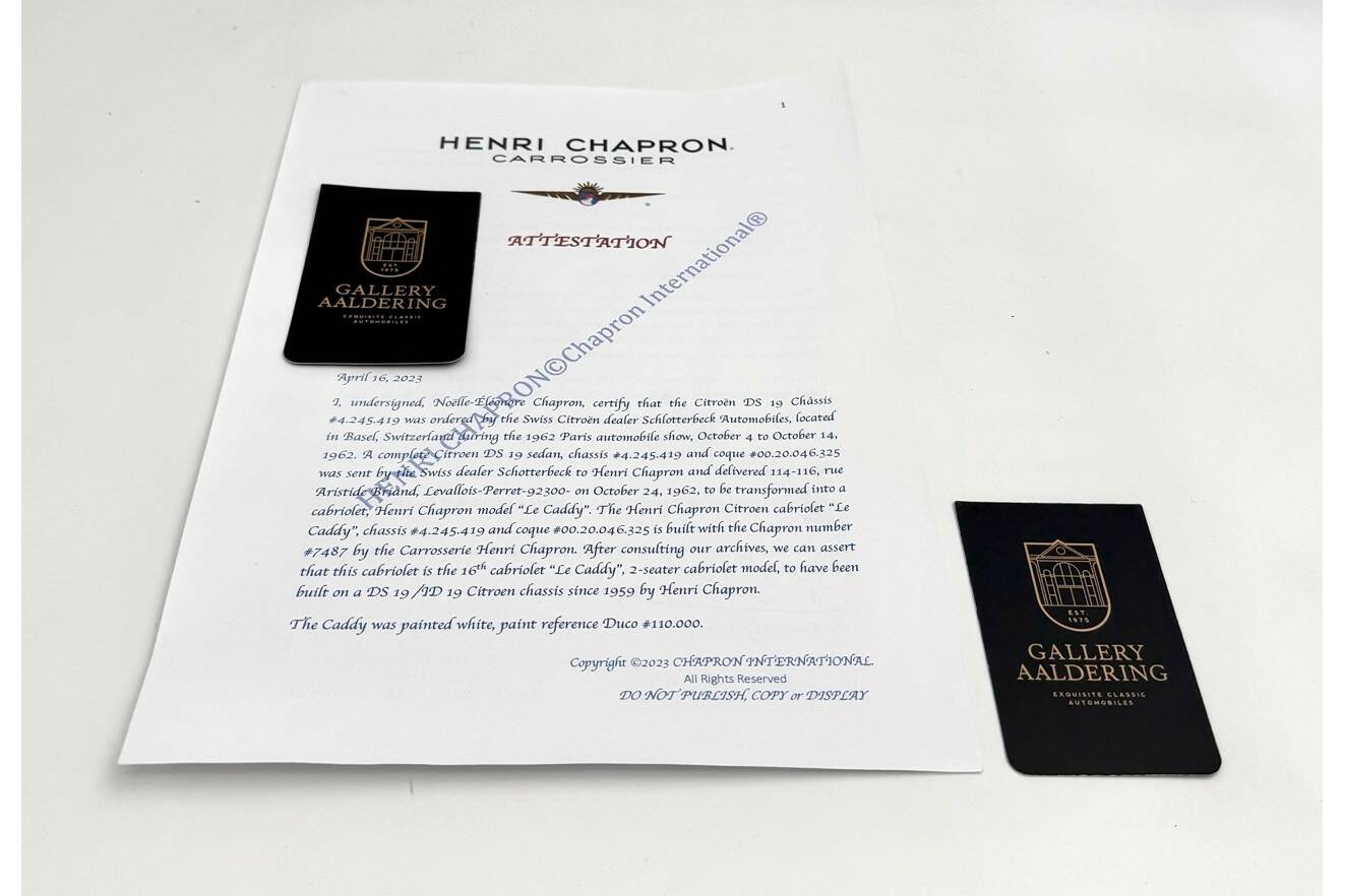 Citroën DS19 "Le Caddy" Cabriolet - "€53.000,- recently invested" Original Chapron Le Caddy - Comes with the authentic Henri Chapron certificate, Recently reconditioned as close to the original condition as possible,Work done by a Dutch expert in France, Originality confirmed by the relevant connoisseurs and critics,One of the 12 Cabriolet Sport "Le Caddy" models manufactured, History is known and well documented,"This is pure enjoyment"