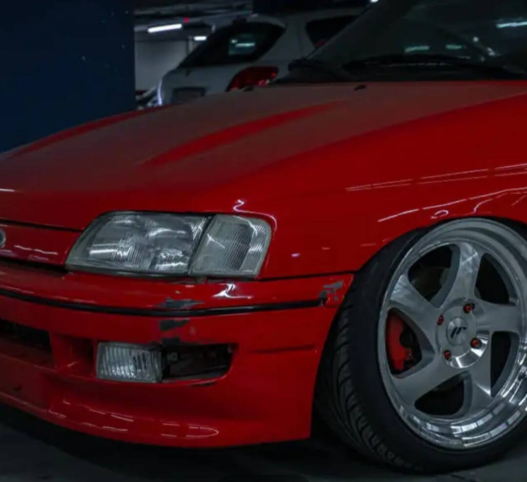 For sale is a unique and eye-catching Ford Escort Cabriolet from 1991. The car features air suspension, giving it an adjustable ride height and a distinctive stance, along with a comfortable leather interior that adds a premium feel to the classic design.