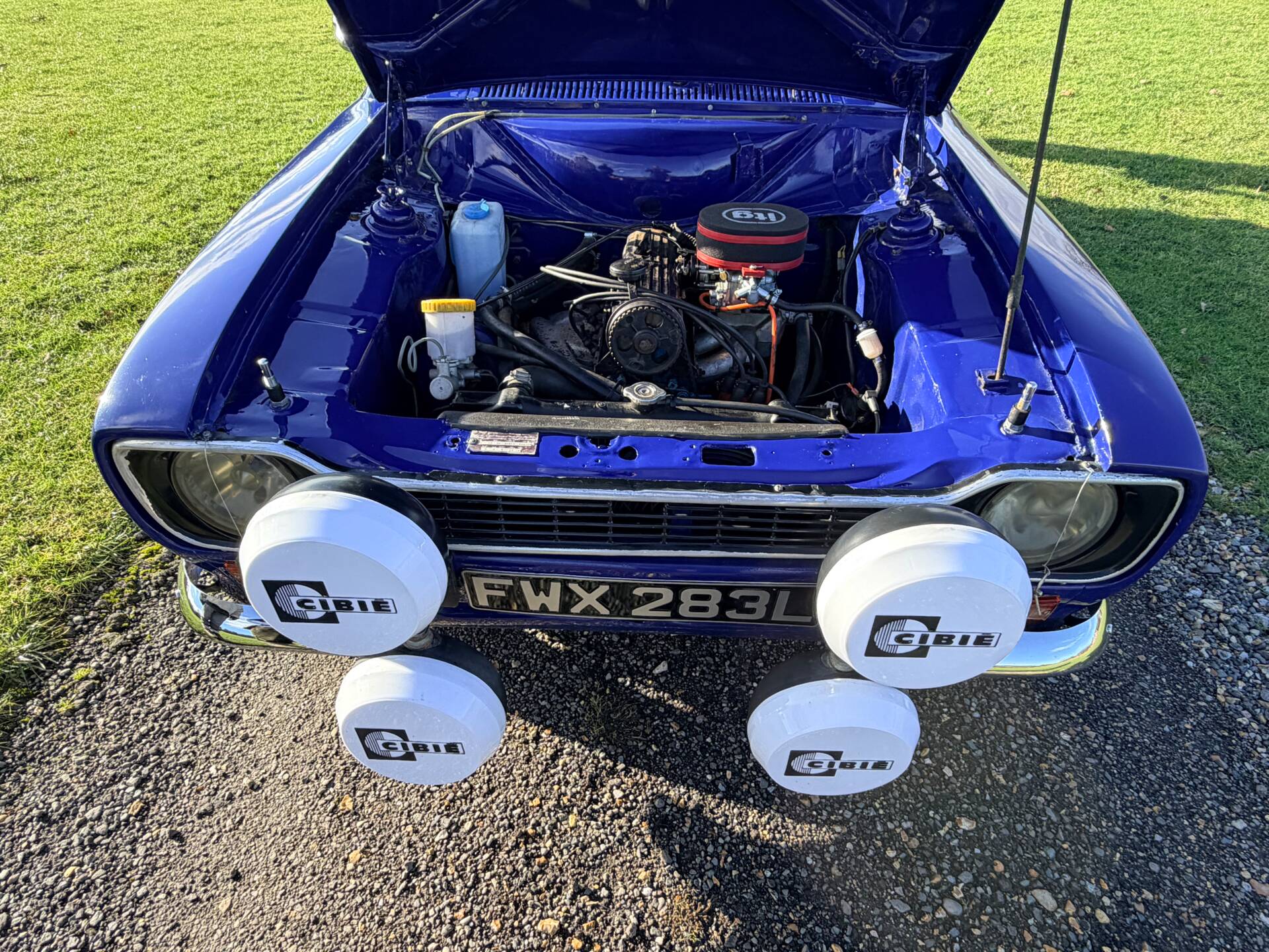 Powered by a 2.0 Pinto RS2000 engine with engine number starting GV, it features a Weber carburettor with ITG air filter. This car is a South African–market Escort, which was imported into the UK in 2017. South African cars are well regarded, often benefiting from a favourable climate, and this example presents well as a result.