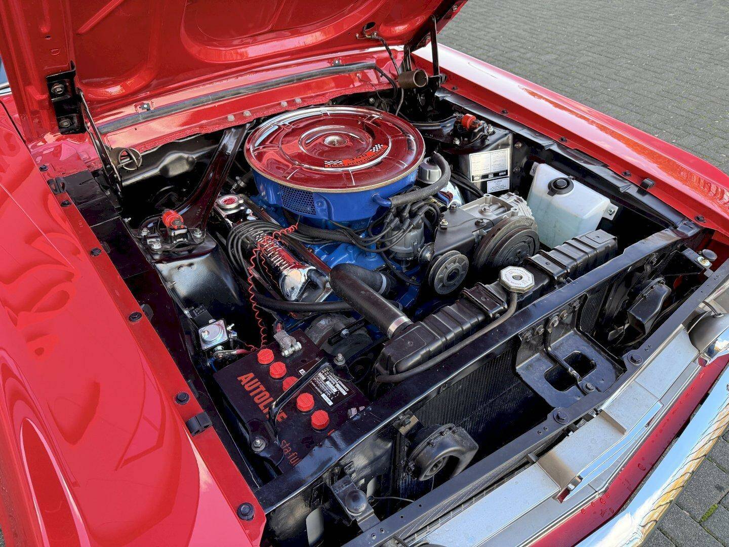 In atemberaubendem Candy Apple Red lackiert, professionell in den Niederlanden auf einen besseren als Neuzustand restauriert, präsentiert sich dieser Mustang mit außergewöhnlichem Glanz, Tiefe und Handwerkskunst. Das Fahrzeug wurde innen, außen und an der Unterseite beeindruckend restauriert, wobei der Unterboden jetzt wie neu aussieht.