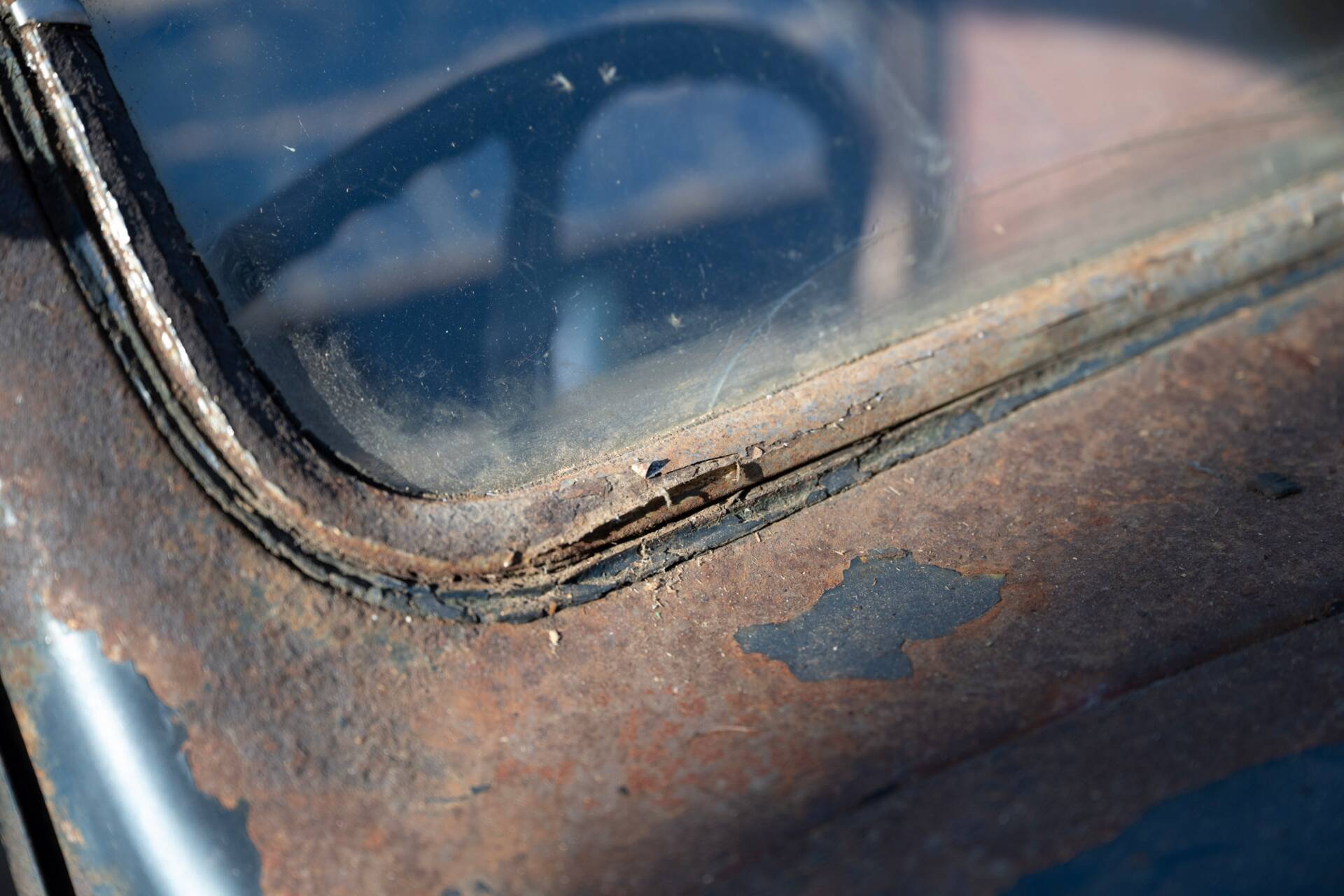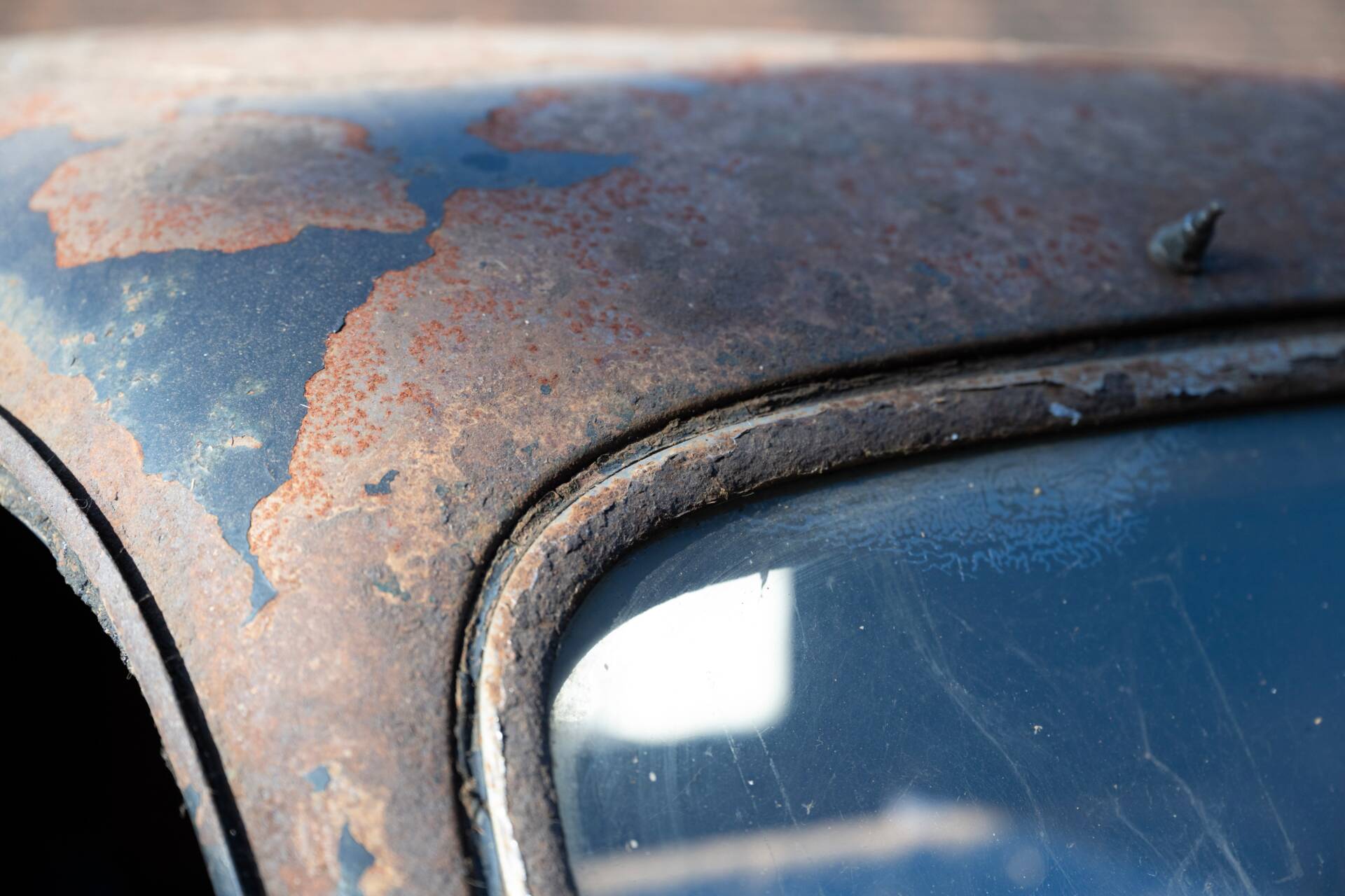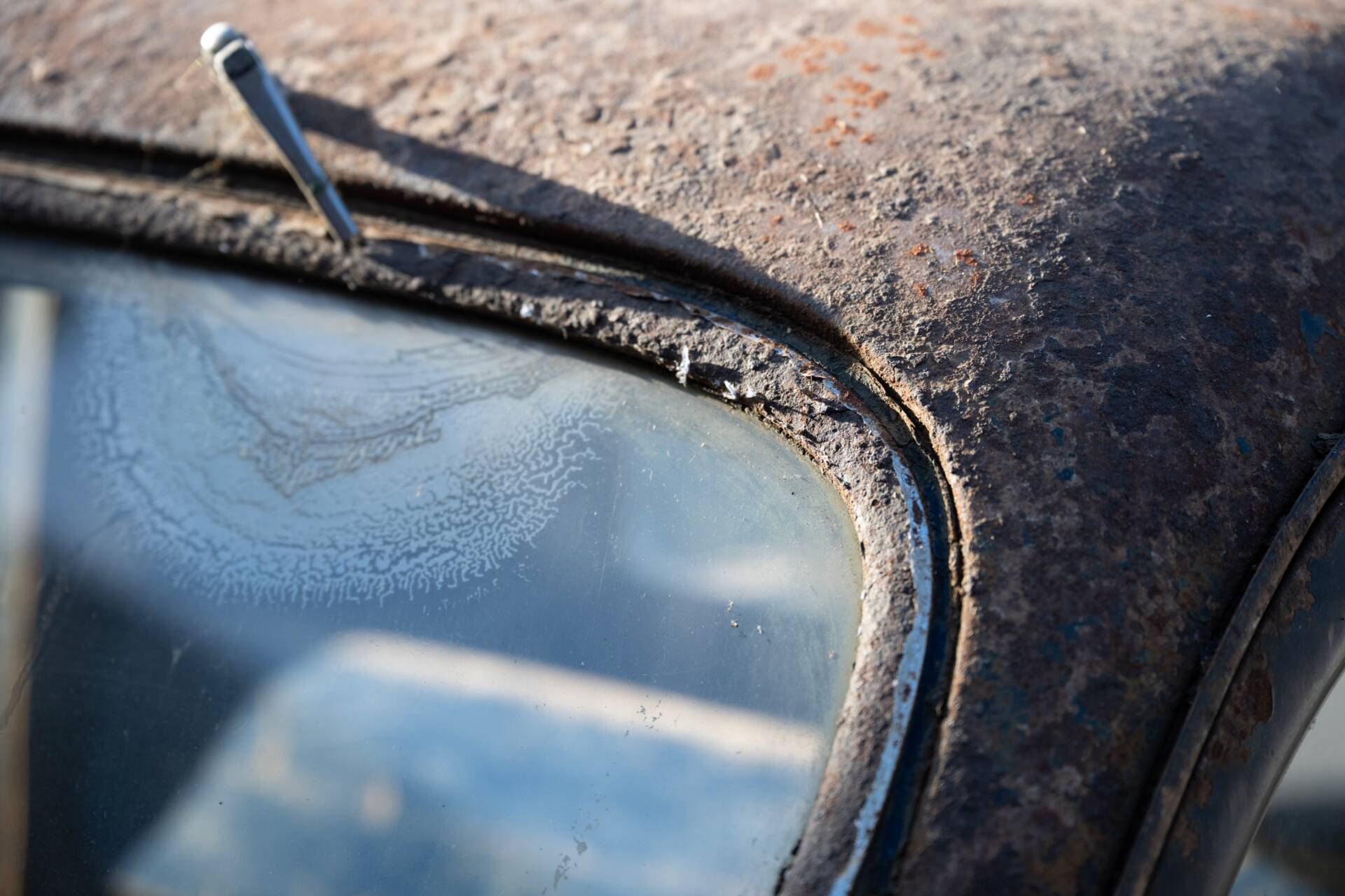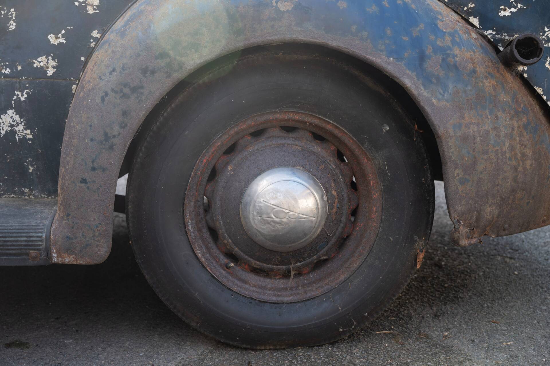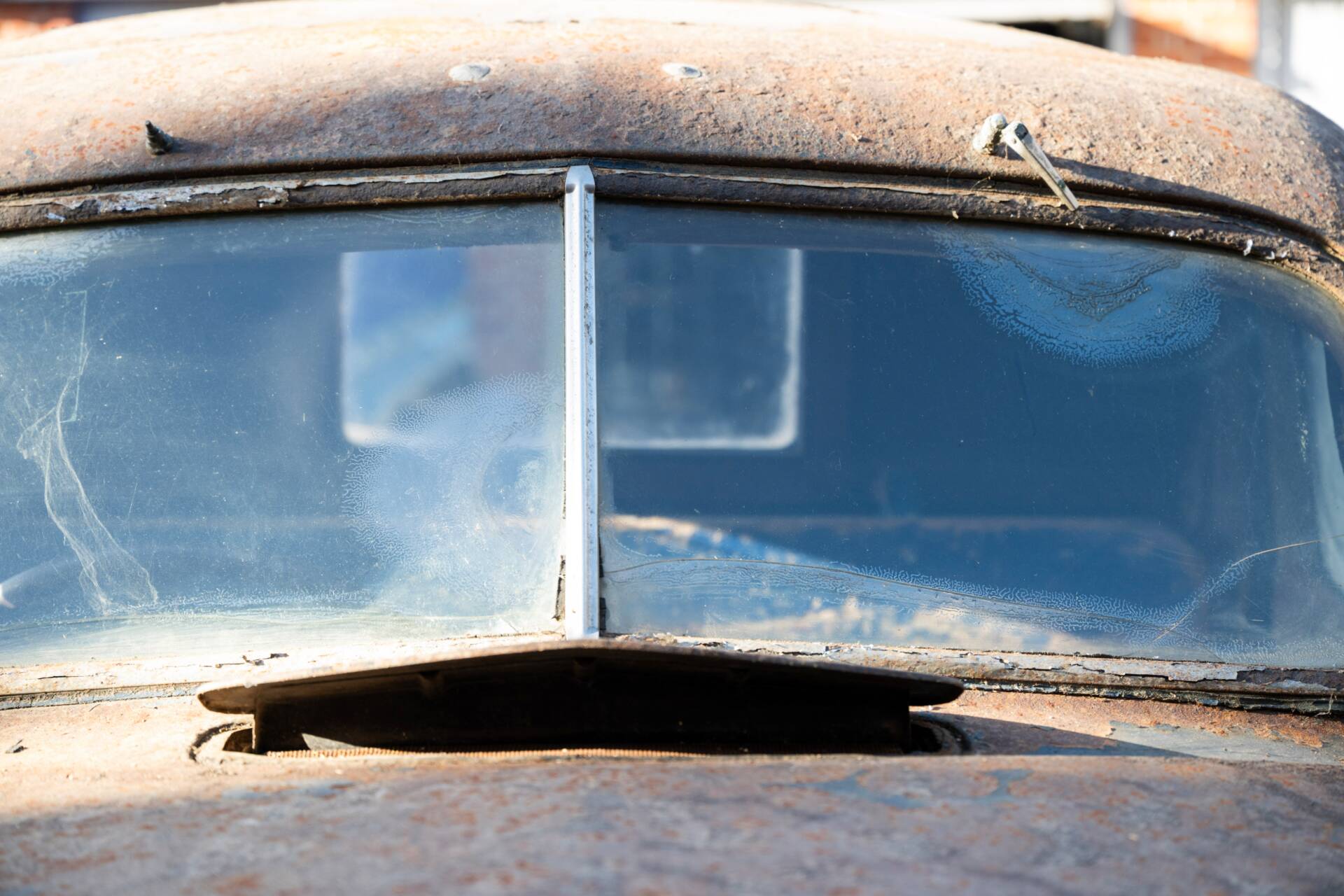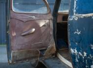 Die Karosserie wurde ursprünglich als viertürige Limousine von Briggs gefertigt und von Tooley und Youngs, nach Angaben vor Ort, während des Zweiten Weltkriegs zu einem Pick-up mit Holzpritsche umgebaut. Das Fahrzeug präsentiert sich aktuell im unrestaurierten Zustand mit typischen Patinaspuren und weitgehend vollständiger Substanz. Zum optischen Zustand der Lackierung und des Rahmens liegen keine detaillierten Angaben vor, was angesichts der jahrzehntelangen Standzeit plausibel erscheint.