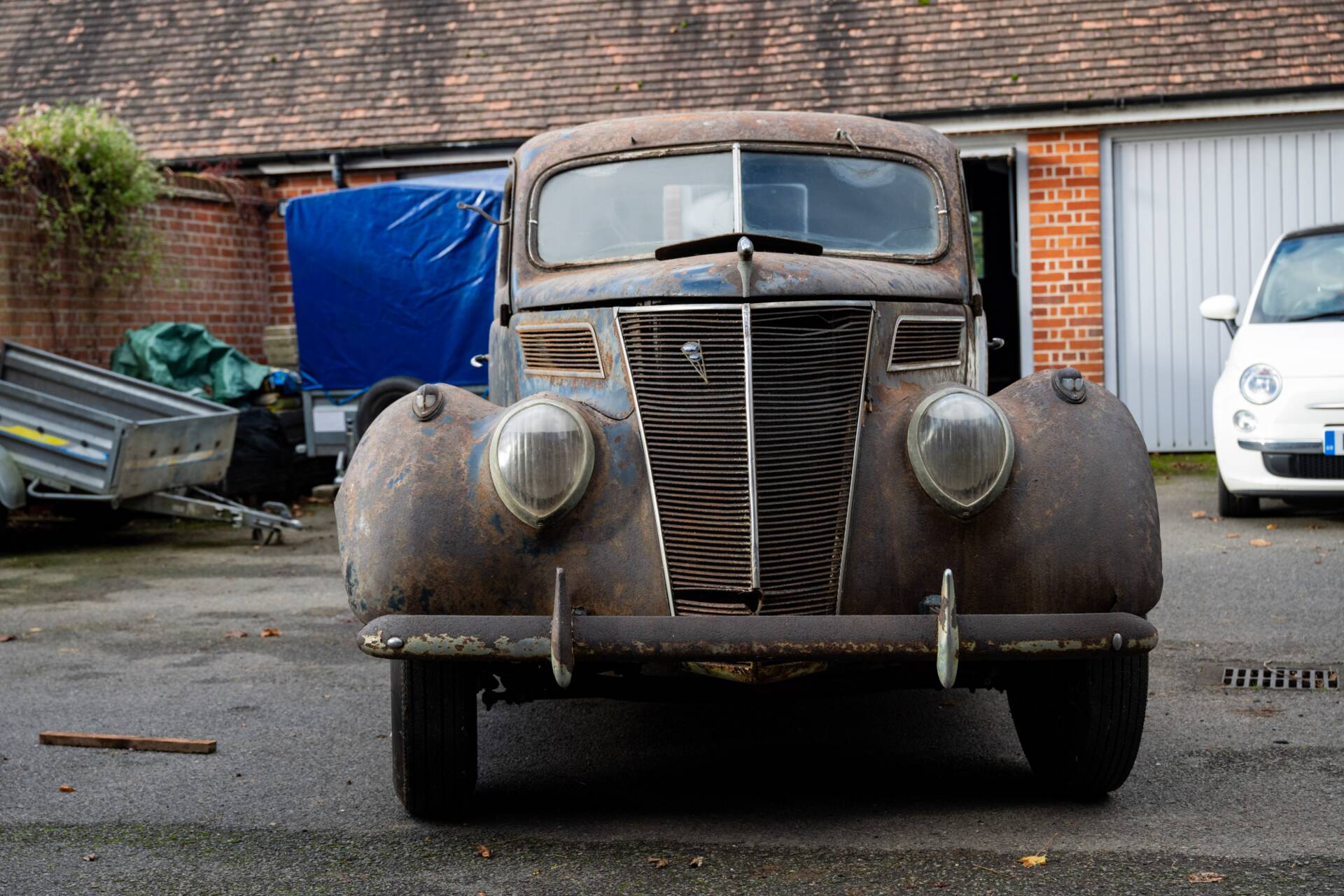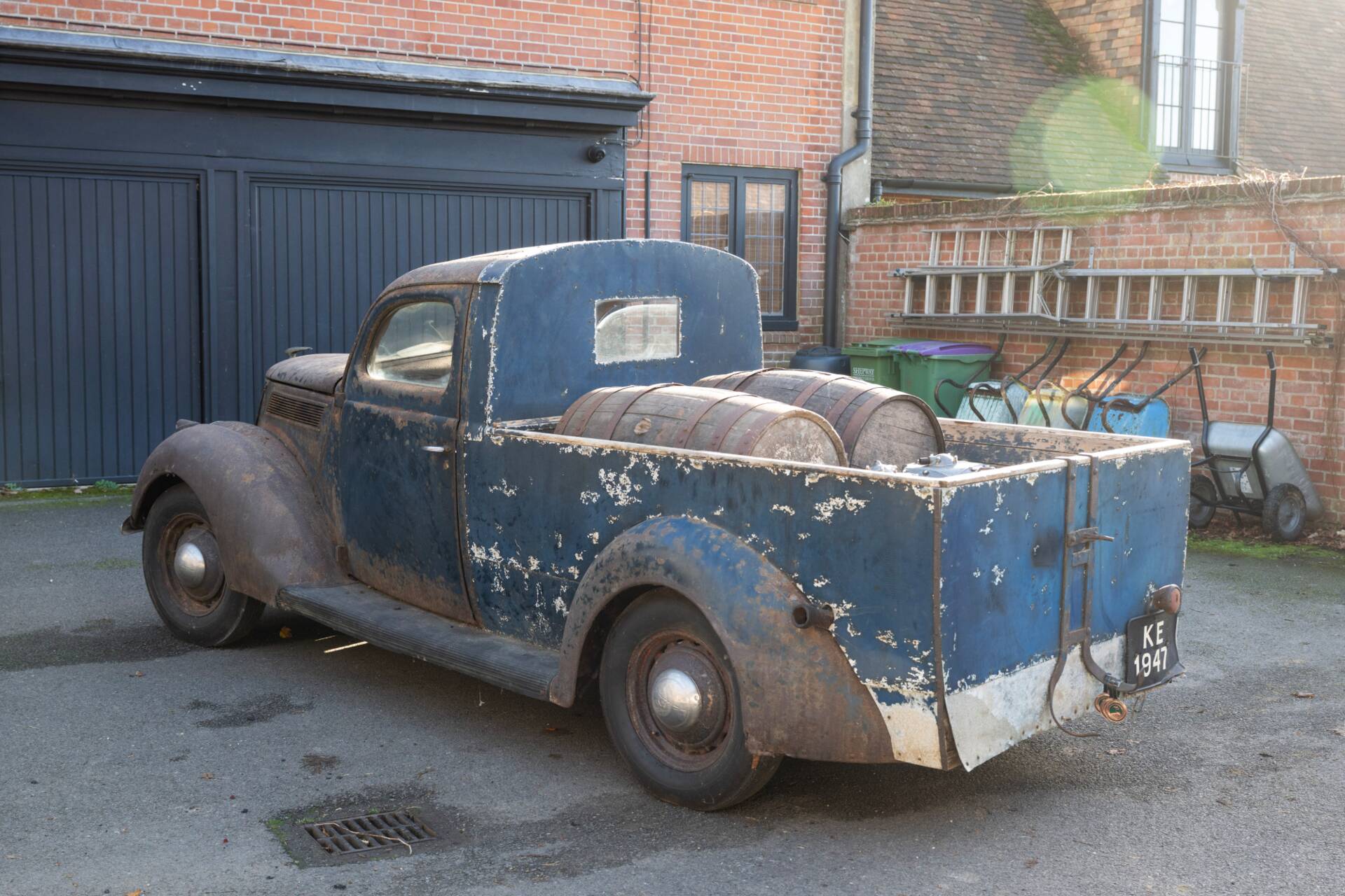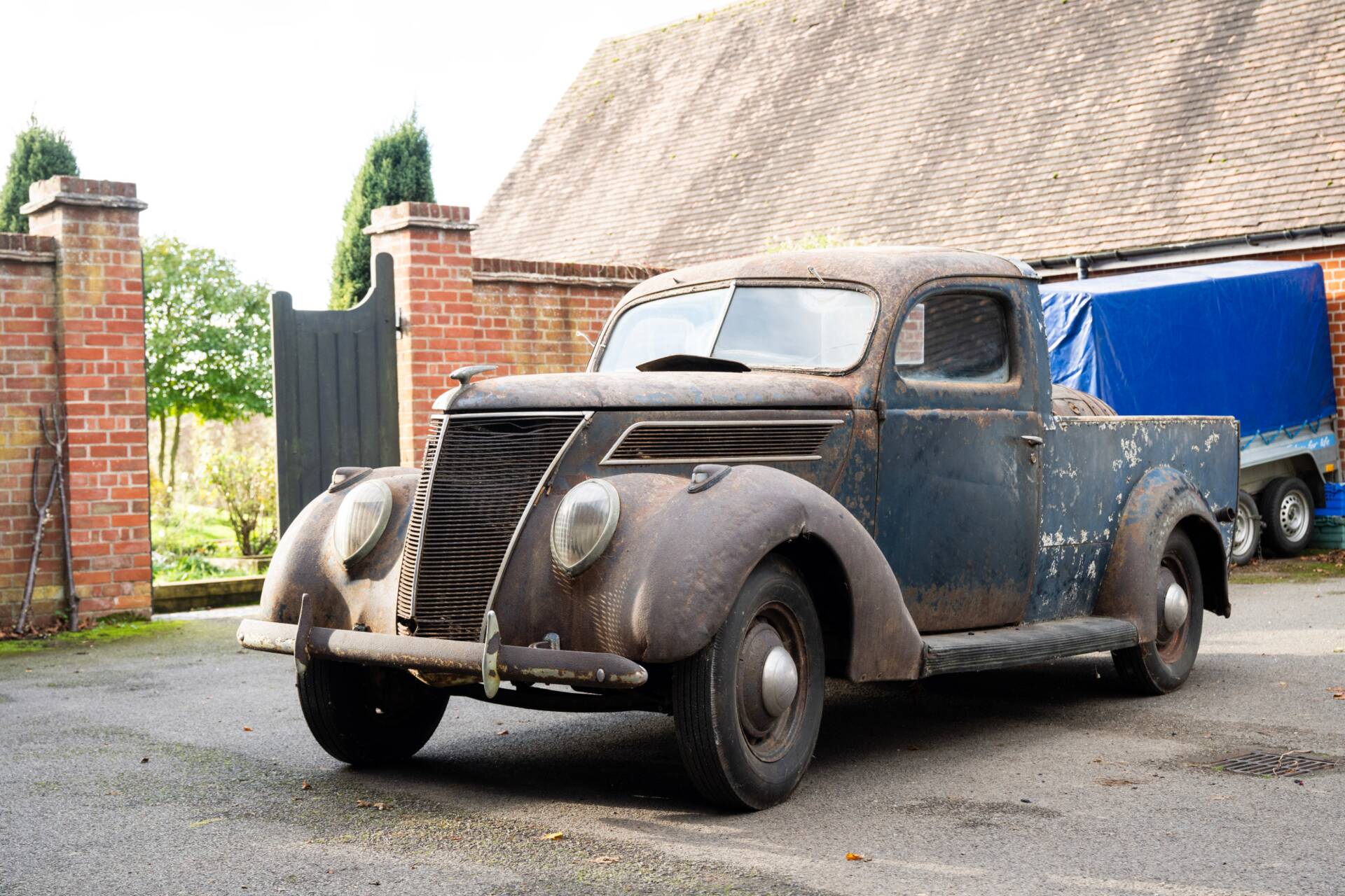 Unberührter Scheunenfund – jahrzehntelang auf dem Milligen-Hof eingelagert. Ursprünglich als viertürige Limousine ausgeliefert und von den lokalen Karosseriebauern Tooley und Youngs während des Zweiten Weltkriegs zum Pick-up umgebaut. Begehrtes Beispiel für britische Ford-Ingenieurskunst der Vorkriegszeit. Aktuell ohne Getriebe und Vergaser – daher ideal für eine ambitionierte Restaurierung durch Sammler mit Ford-Affinität.