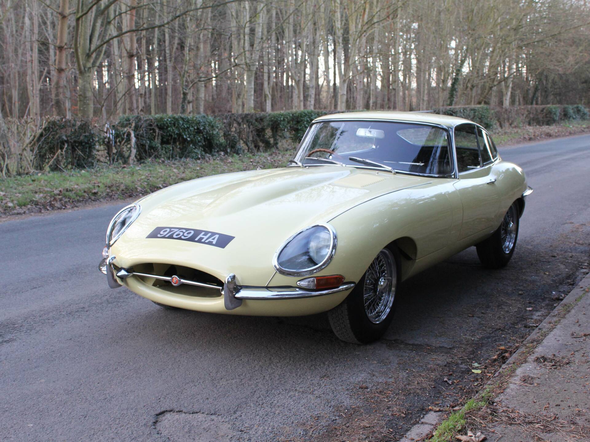 We are delighted to offer this home market, UK RHD matching numbers Jaguar E-Type Series One 3.8 FHC onto the market. This subtly upgraded car, finished in Primrose with Black leather upholstery was manufactured on the 6th June 1963 and was distributed from Sanderson & Holmes Ltd, Derby. Highfield Motors in Derby then supplied the car new to a H.V Davies of Sutton Coldfield. Accompanying the car is the original brown ‘buff’ logbook confirming its early owners, the original pre restoration data plate and Heritage Certificate confirming all factory details. In 1973 the E-Type, 9769 HA was purchased by a Mr Yates who used the car until parking it up in his garage in 1987. Due to a growing family, the E-Type wasn't even looked at for thirteen years and in 2000, after 27 years of ownership it was sold in need of restoration. With a battery and some basics, the E-Type did manage to run and drive, but was collected by trailer ahead of a full strip down to the bare shell. The bonnet, doors, tailgate, engine, gearbox, rear axle, interior and all trims, glass and front frame were removed ahead of the bare shell being sand blasted. The shell was then put on a rotisserie and new panels from Martin Robey fitted to include door skins, front wing panels, new inner and outer sills, boot floor, new footwells and rear panel. The body was then prepared, lead loaded as original and given to a highly experienced classic car painter. The underside was all protected with Gravitex stone chip and the shell and panels then beautifully painted. The car was then built up with renewed brightwork, new runners, trims, zinc plated UNF nuts, bolts and washers throughout.
