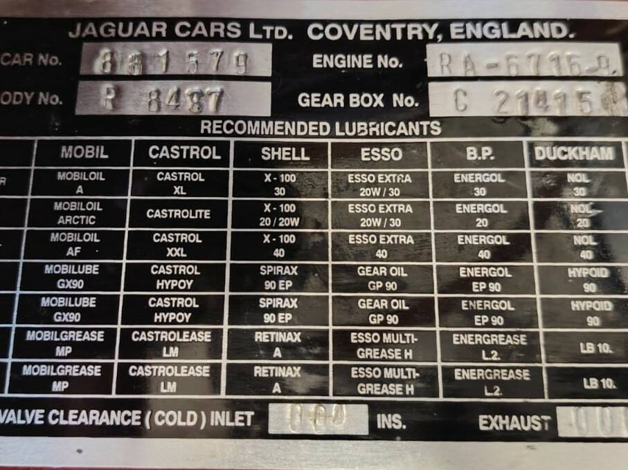 At its heart lies the legendary 3.8-litre XK engine, number RA6716-9, from the same mechanical family that made the E-Type world-famous upon its launch at the 1961 Geneva Motor Show. Capable of exceeding 240 km/h, the 3.8 paired with the close-ratio Moss gearbox represents the purest and most sporting interpretation of the early E-Types, highly sought after by collectors worldwide. Production numbers of the 3.8 OTS remained relatively limited, and finding an example with correct numbers and documented Italian history is increasingly rare.
