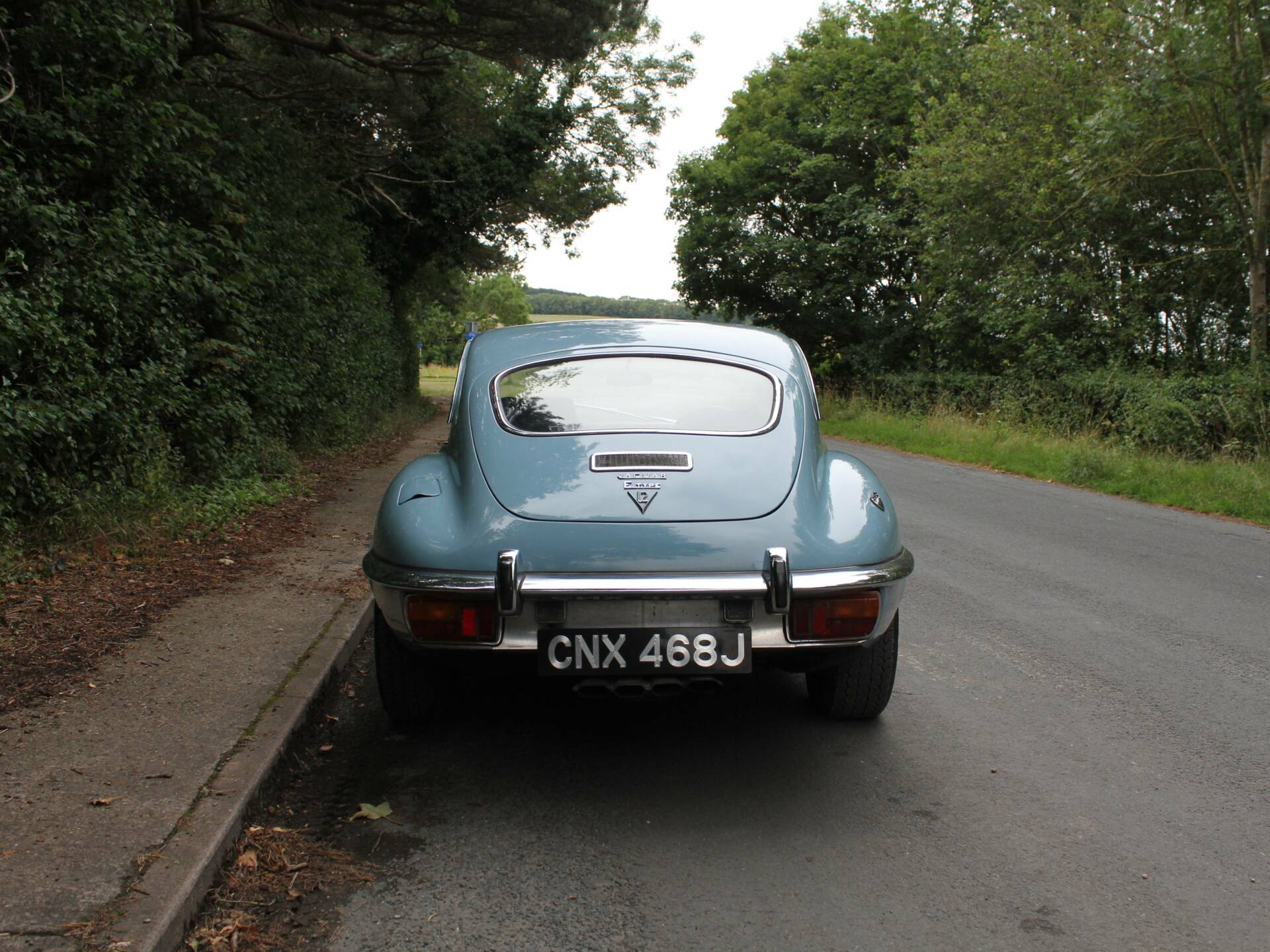 This Jaguar E-Type Series III V12 FHC is a fabulous find, it's a desirable manual transmission car, supplied new in the UK with its original bill of sale still present, original colours and has covered just 52000 miles from new. CNX 468J was supplied new by Henlys (Coventry) Ltd, invoiced on the 13th May 1971 to Elisha Mander Limited in Sutton Coldfield. The Series III V12 was supplied new in Light Blue with Dark Blue leather and charged out including collection charges and road fund license at £3503.03. The original buff log book is present confirming the car changed hands for the first time in 1976, staying in Sutton Coldfield and six years later the E-Type sold to a Doctor, still in Sutton Coldfield. MOT certificates dating back to 1976 are also with the E-Type, mileage recorded at 5 years old was 32304 miles. A handwritten letter confirms that during the early 1970's the owner ran a big end bearing and Jaguar fitted a brand new engine free of charge at around 16000 miles. Interestingly, the letter also confirms the E-Type was being serviced by the Jaguar Works service department during its early life.
