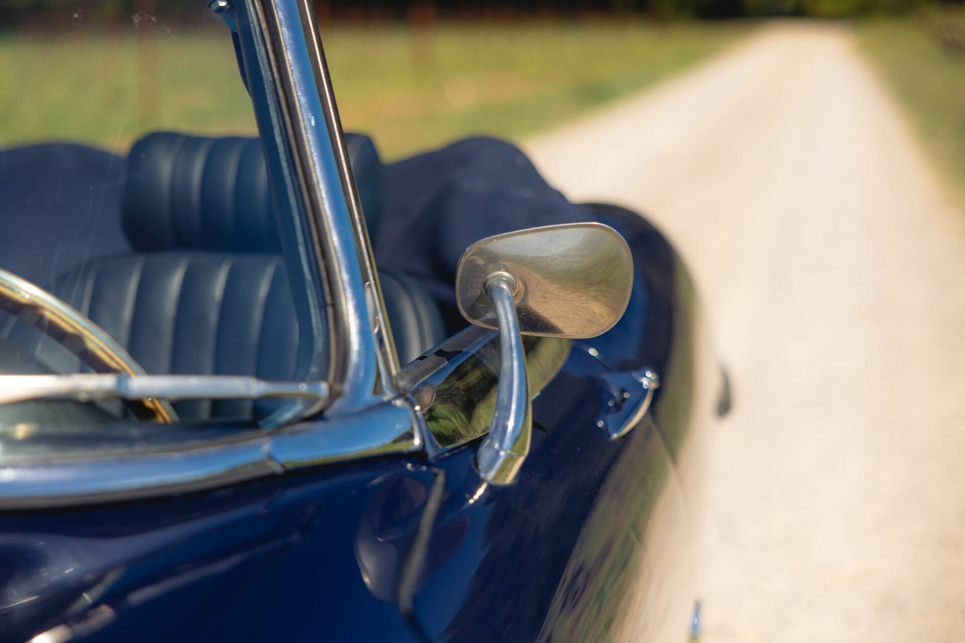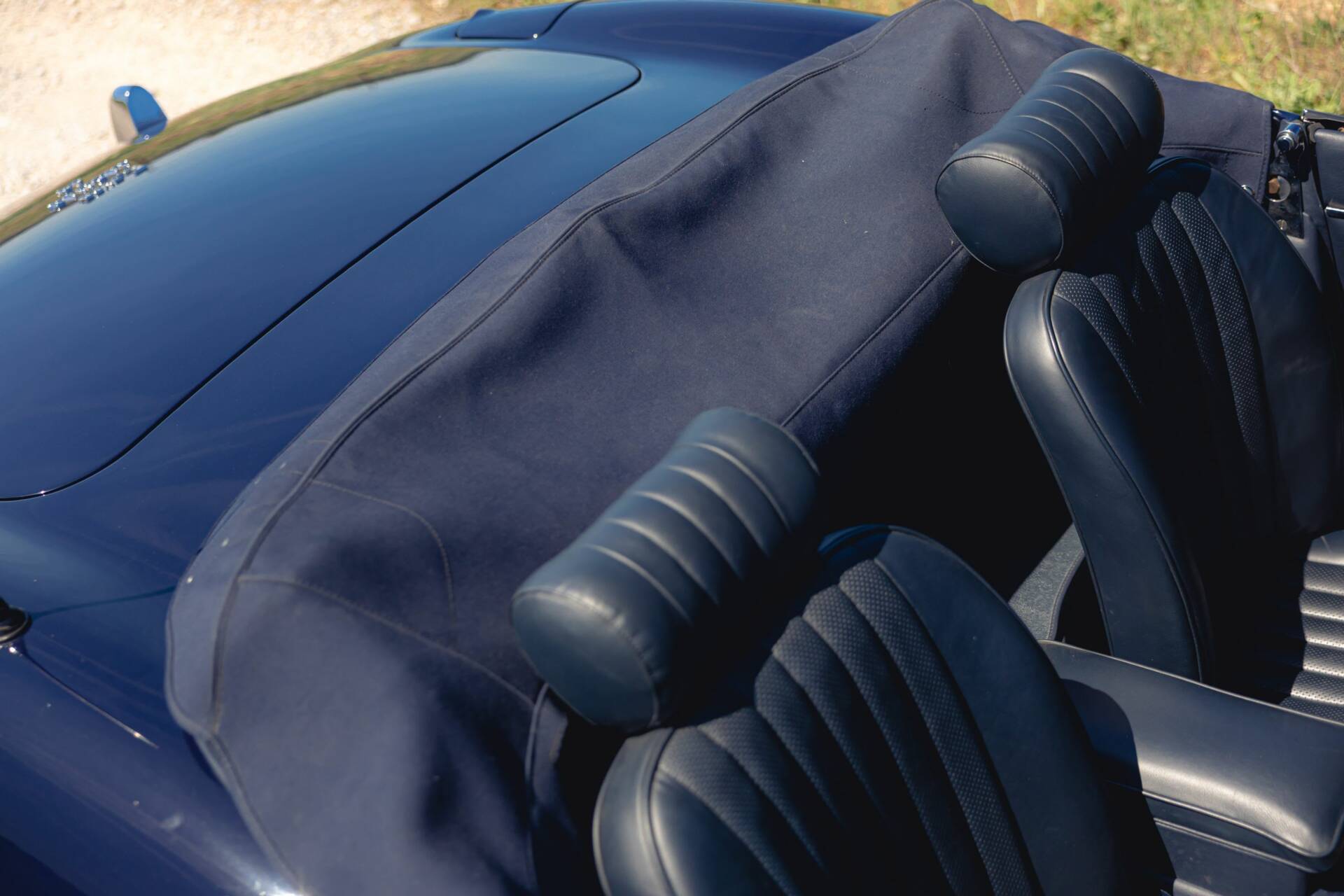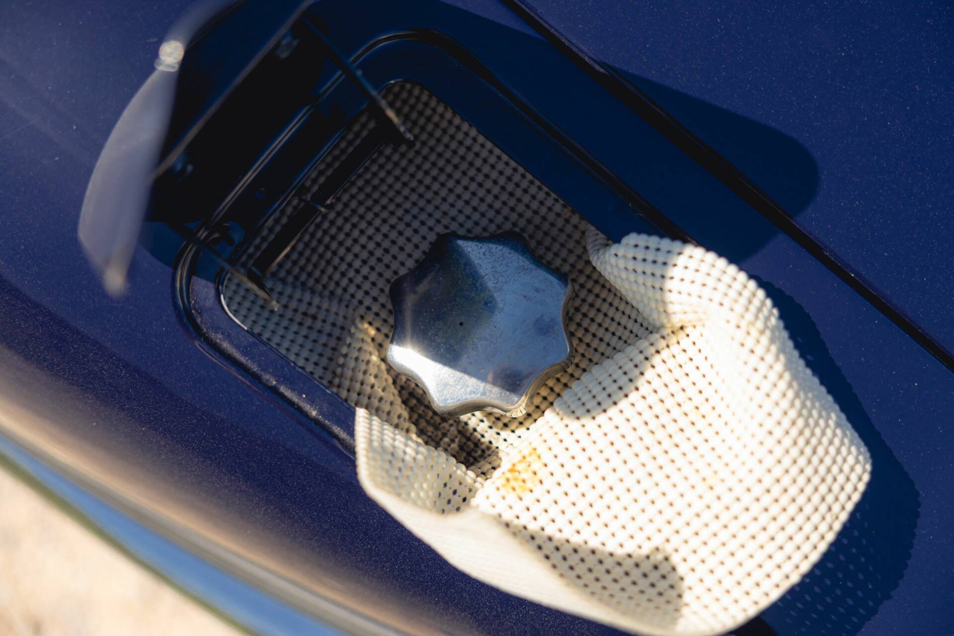 🚘 La carrosserie, restaurée intégralement en 2007, présente un très bel état de conservation. La teinte Dark Blue offre une excellente profondeur et homogénéité. Les chromes ainsi que les jantes à rayons sont en excellent état.