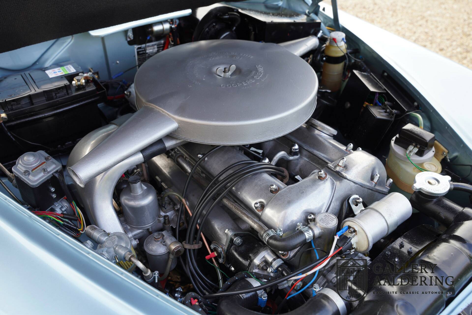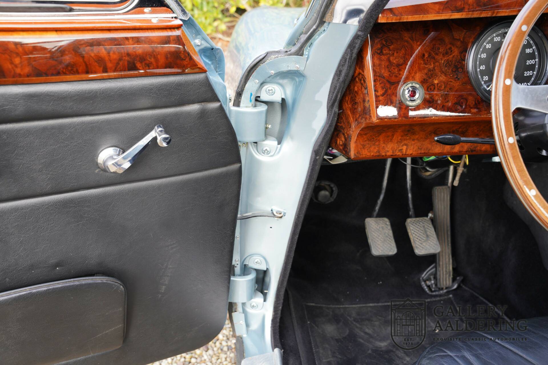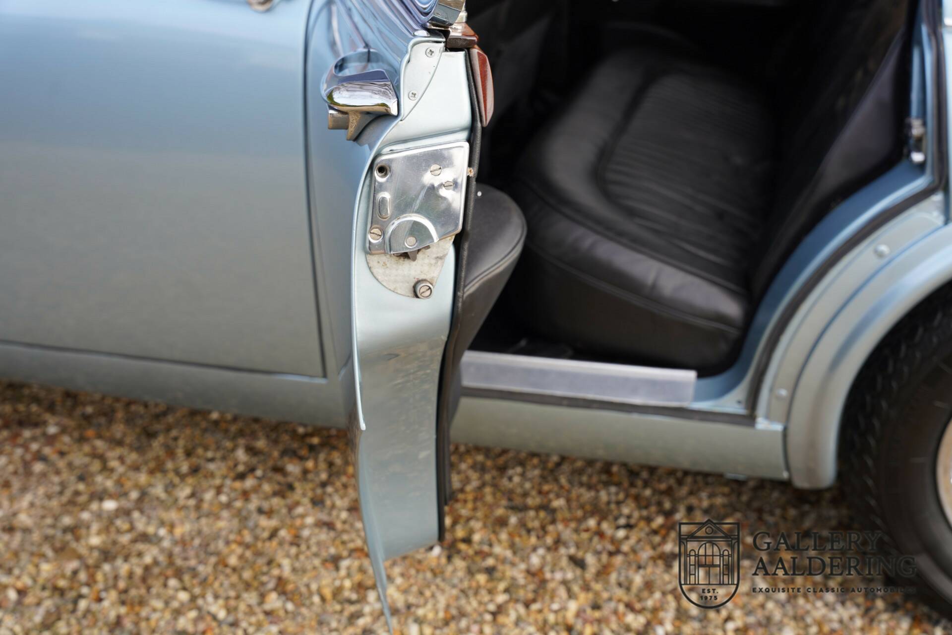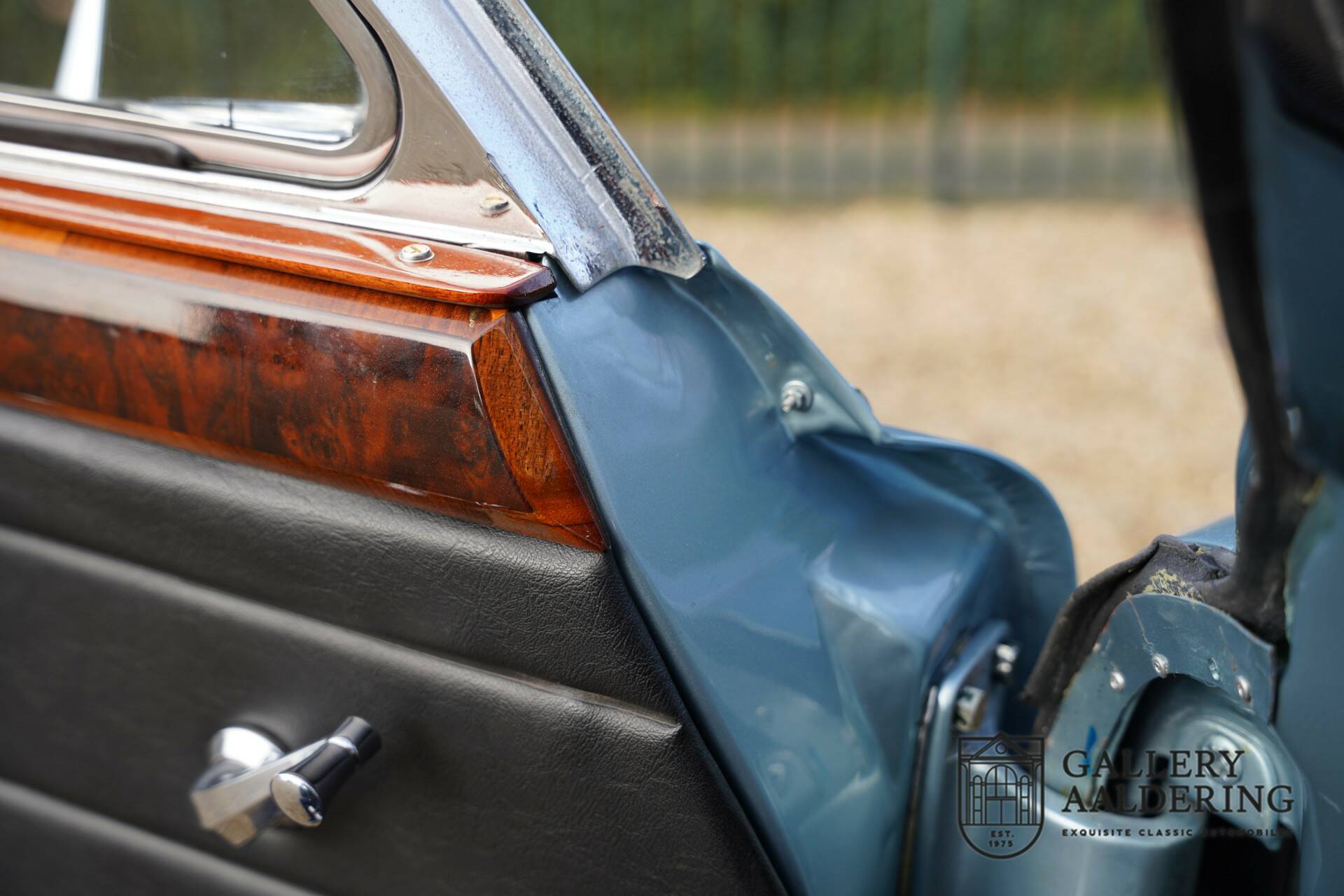 Dieser schöne hellblaue MkII ist ein original niederländisches Auto aus dem Jahr 1962. Während seiner über 60-jährigen Lebensdauer hatte es nur eine Handvoll Besitzer. Dieses Auto wurde in der Vergangenheit ordentlich restauriert und sieht immer noch gut aus.