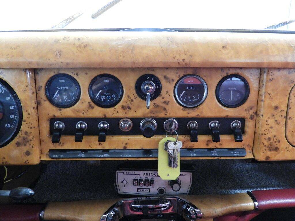 Sedili e pannelli in tutta pelle connoly cartier, Doppio bracciolo anteriore e bracciolo posteriore, Impianto aria condizionata ”autoclima” accessorio after market dell’epoca, Autoradio AM/FM Pyle con antenna al parafango anteriore sinistro, Cruscotto e inserti ai pannelli in radica di noce, Cerchi a raggi cromati con gallettone con pneumatici 185 SR15, Doppio specchio esterno tondo cromato