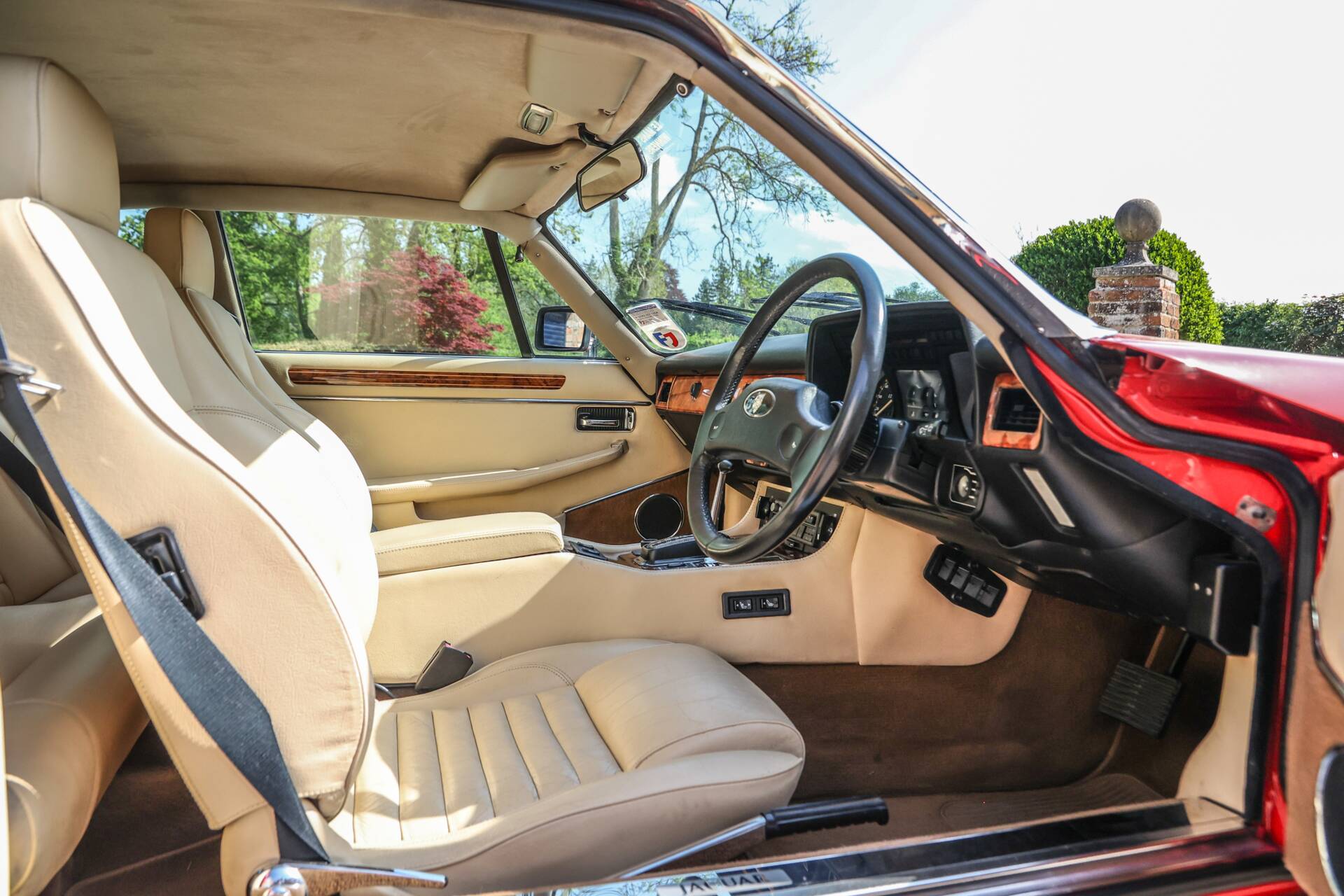 First registered on 17th November 1988, this striking XJ-S V12 is finished in classic Signal Red with a beautifully preserved cream leather interior complemented by walnut veneer facia and door capping. Sitting on its original lattice alloy wheels, it presents as a wonderfully authentic, unspoiled example of the breed. The specification is suitably generous, including cruise control, air conditioning, heated seats, and trip computer, with everything reported to function exactly as intended.