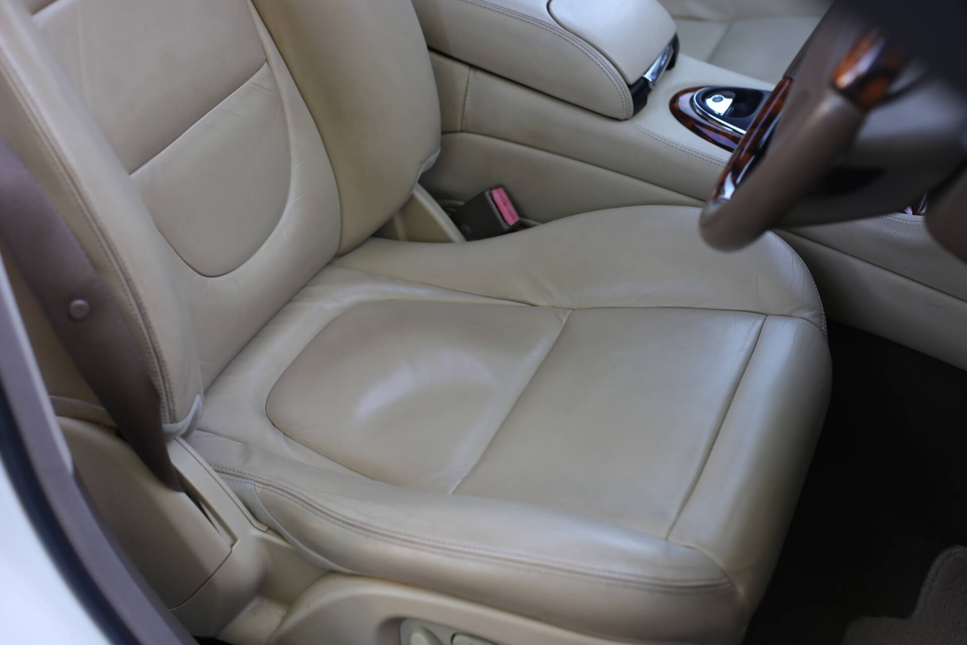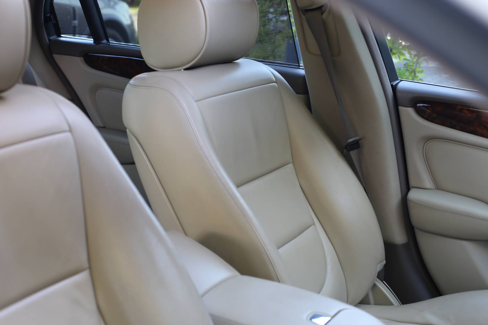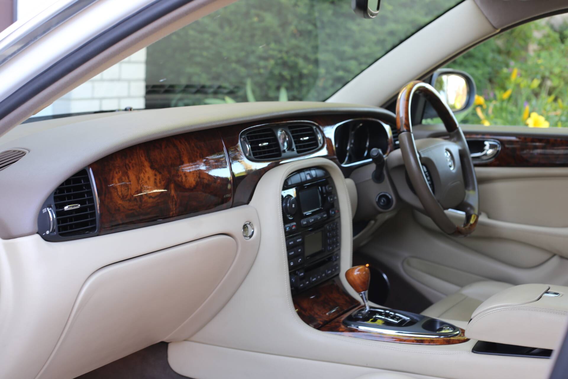 Im Innenraum bietet die luxuriöse Sovereign-Ausstattung das volle Jaguar-Erlebnis: gut erhaltene Ledersitze, glänzende Holzfurniere und voll funktionsfähige Instrumente. Es gibt keine Risse oder Beschädigungen im Interieur – alles wirkt gepflegt und sauber.
