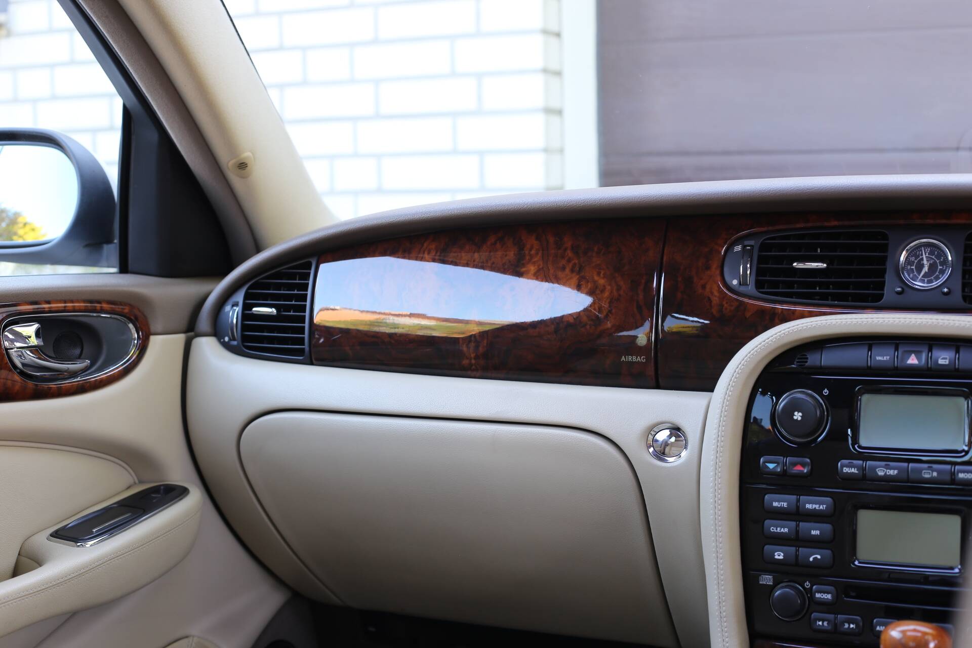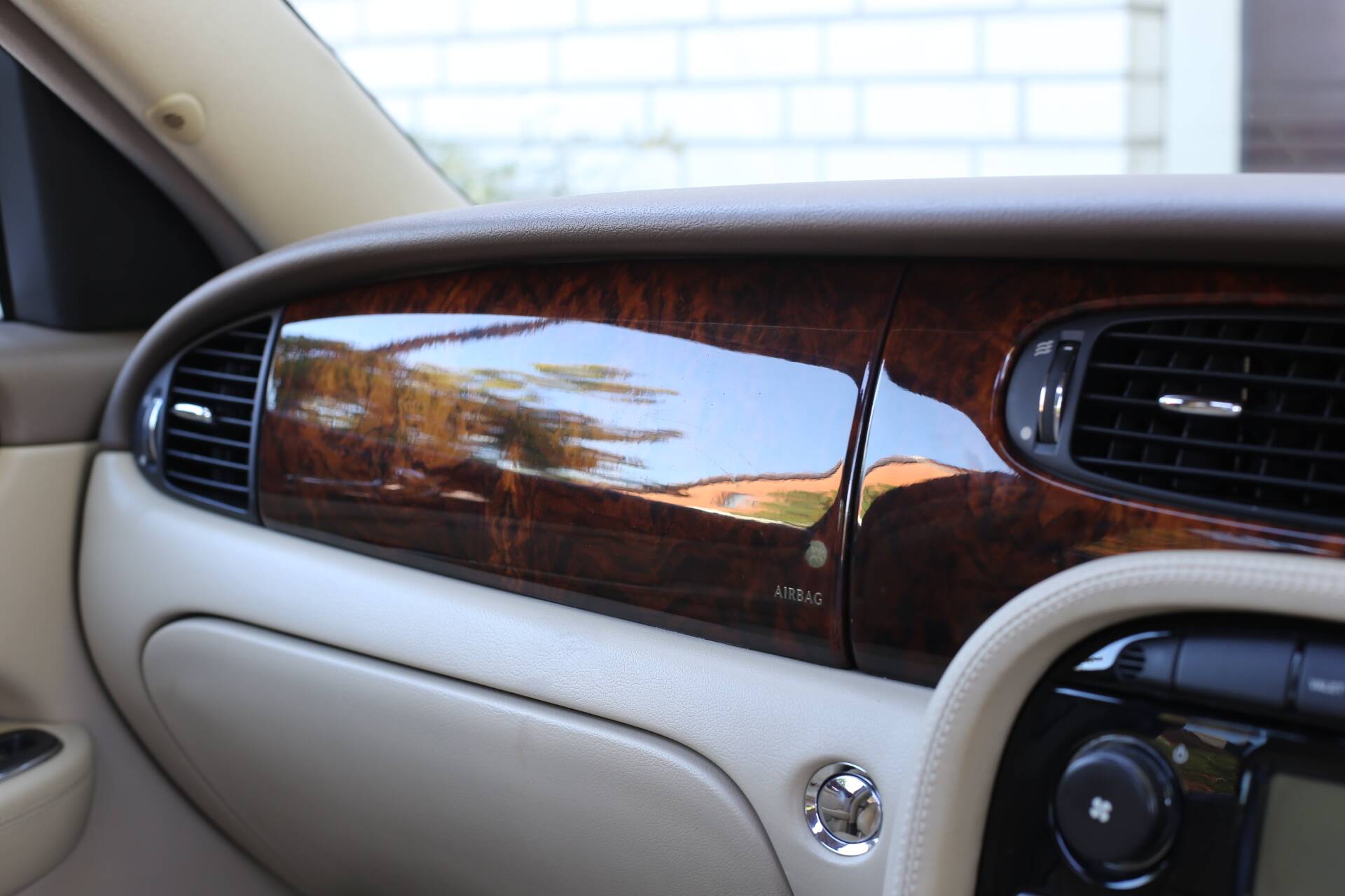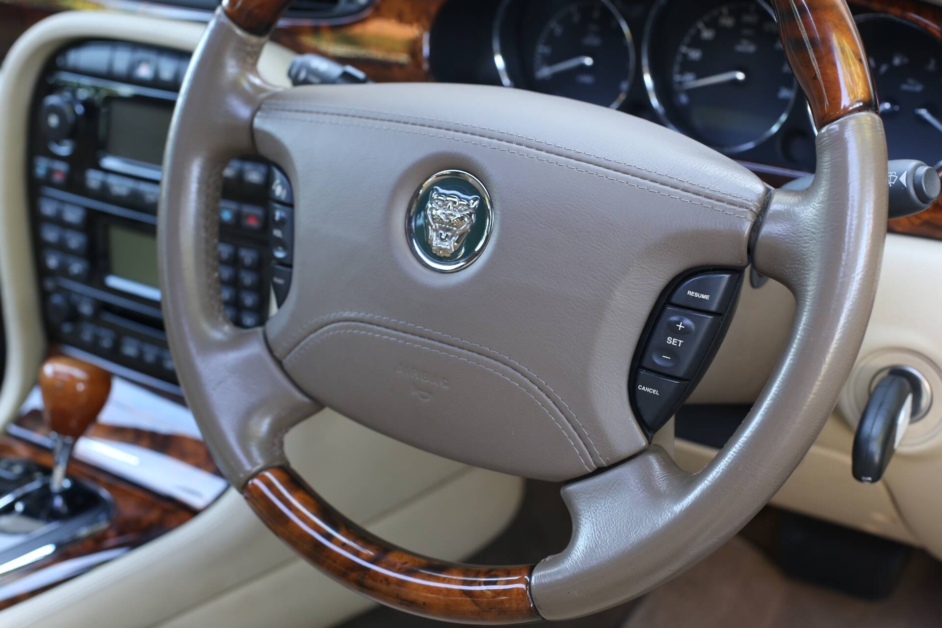 Im Innenraum bietet die luxuriöse Sovereign-Ausstattung das volle Jaguar-Erlebnis: gut erhaltene Ledersitze, glänzende Holzfurniere und voll funktionsfähige Instrumente. Es gibt keine Risse oder Beschädigungen im Interieur – alles wirkt gepflegt und sauber.