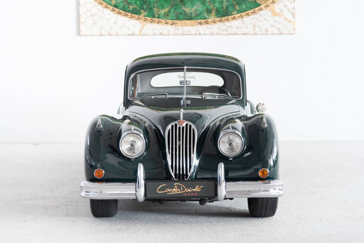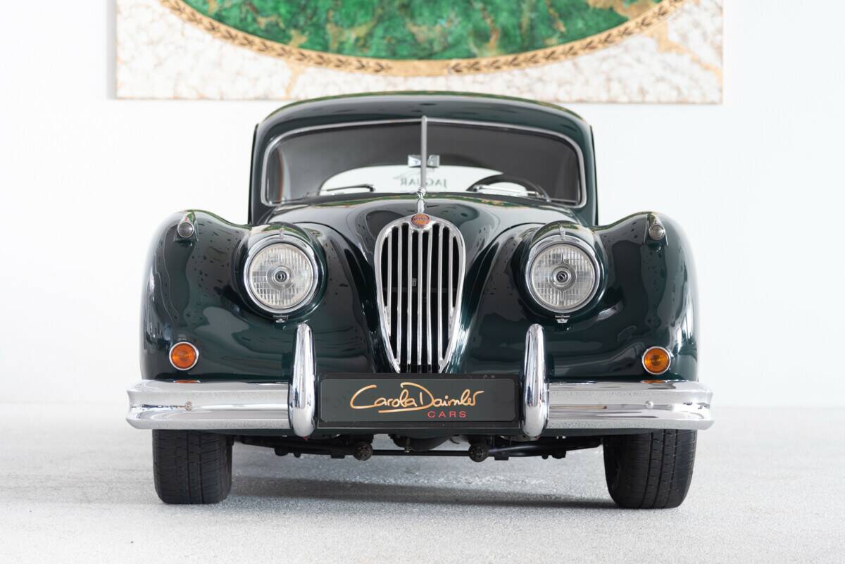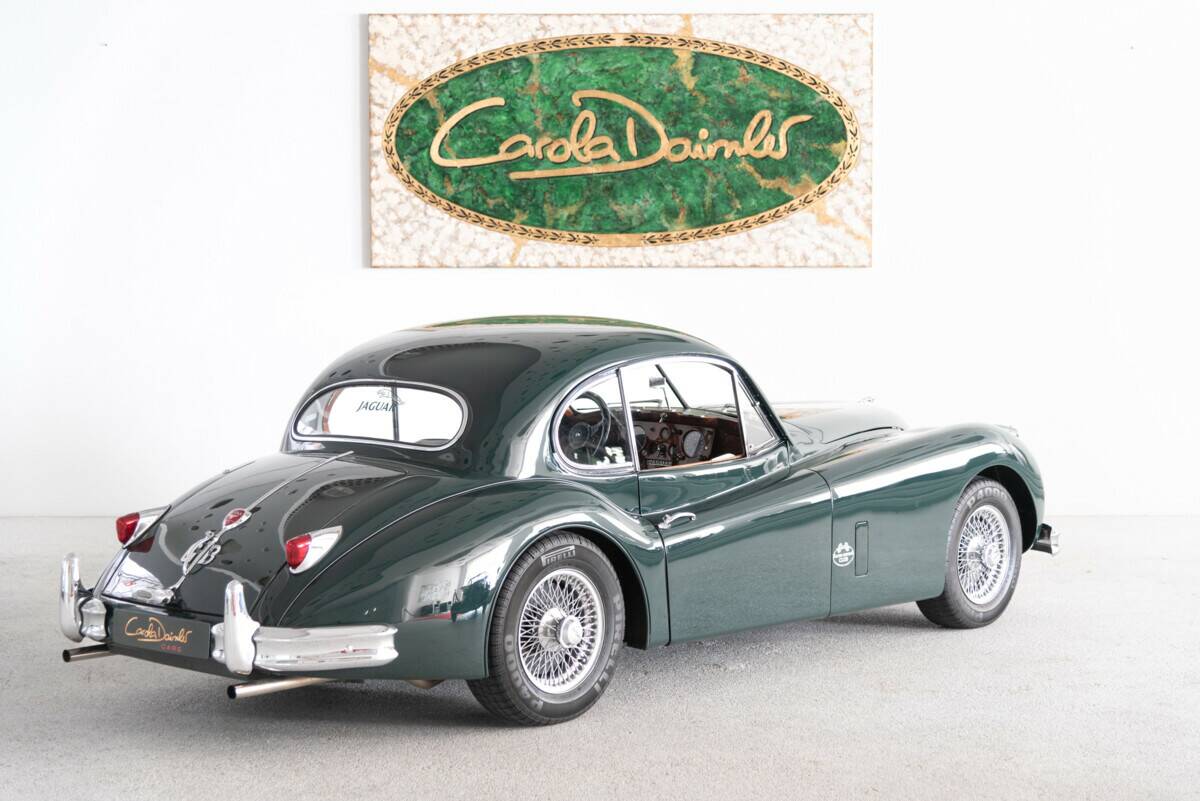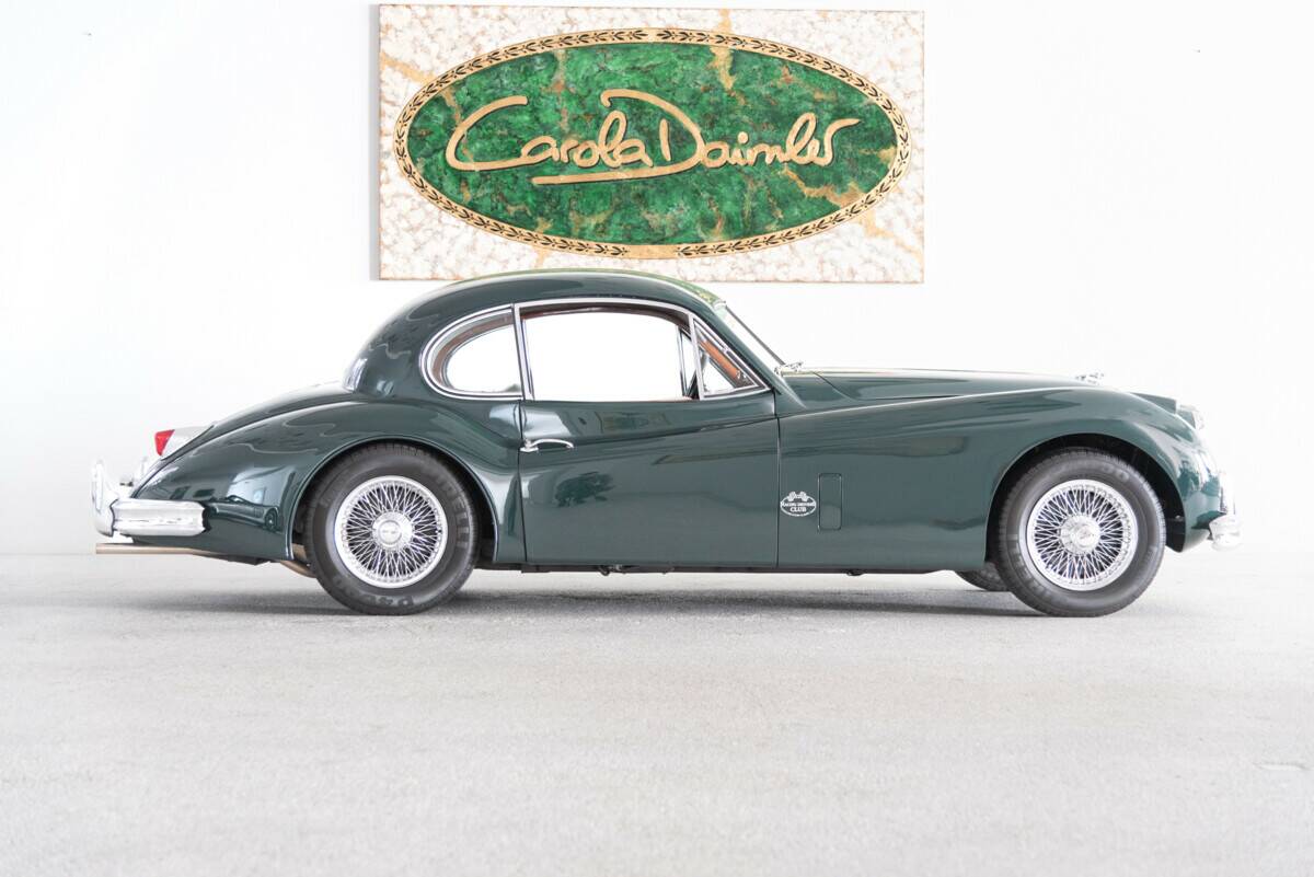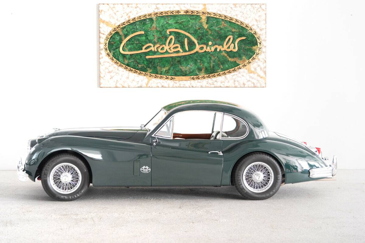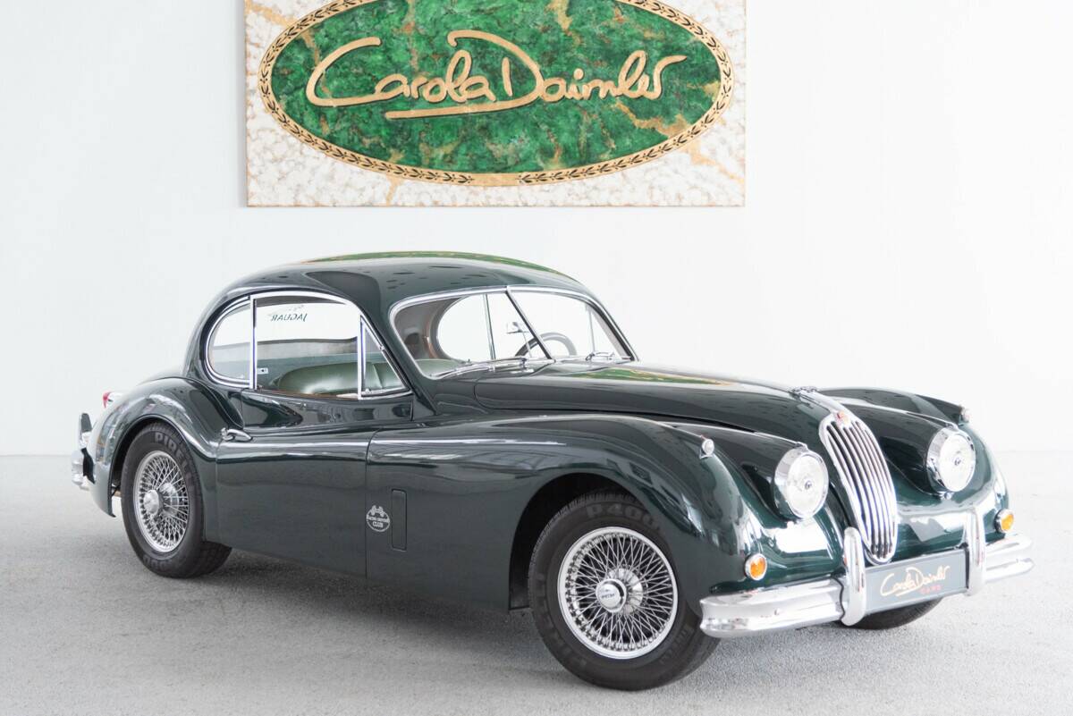Der hier zum Verkauf angebotene Jaguar XK 140 FHC ist ein außergewöhnliches Coupé, ein wahres Juwel der Automobilgeschichte und als Linkslenker eine echte Seltenheit. Mit seiner eleganten, gestreckten Karosserie und dem kräftigen British Racing Green, verleiht er dem Begriff "Stil" eine völlig neue Bedeutung.Es ist ein Farbton, der den Charakter des Wagens unterstreicht und seine Präsenz auf der Straße noch verstärkt.Der grün belederte Innenraum des Jaguars ist ein Ort des Luxus und der Raffinesse. Die Sitze bieten hohen Komfort, während das Armaturenbrett mit eleganten Holzverkleidungen veredelt ist. Jedes Detail wurde sorgfältig gestaltet, um ein Gefühl von Eleganz und Stil zu vermitteln.Dieser XK 140 FHC ist in einem hervorragenden Zustand und wurde mit großer Sorgfalt gepflegt. Technisch wurde das Fahrzeug etwas modifiziert in Form von einem 3.8 Liter Motorblock, C-Type Zylinderkopf und 2 HD 8 Vergasern. Der heutige Eigentümer erwarb den aufwendig Restaurierten Jaguar 2015 im Auto-Salon-Singen. Noch im selben Jahr veranlasste das Autohaus eine Kurzbewertung welche mit der Benotung 2+ ausfiel und einem Wiederbeschaffungswert von 118.000 Euro.Für den heutigen Eigentümer war er seitdem ein zuverlässiger Begleitpartner auf Oldtimer Rallyes oder Ausfahrten. Erst im Jahr 2023 erfolgte eine aufwendige Technische Überarbeitung in Höhe von ca. 10.000 Euro. Nun ist er erneut in einem perfekten Zustand und wartet darauf wieder am Straßenverkehr teilzunehmen.Wenn Sie auf der Suche nach einem außergewöhnlichen Fahrzeug sind, das sowohl stilvoll als auch leistungsstark ist, dann ist dieser Jaguar XK 140 FHC die perfekte Wahl.Er ist ein echtes Sammlerstück und wird Ihnen viele Jahre lang Freude bereiten. Der Jaguar XK 140 FHC von 1956 war zweifellos ein Meisterwerk der Automobilgeschichte. Mit seinem eleganten und zeitlosen Design zog er die Blicke aller auf sich und setzte neue Maßstäbe in Sachen Performance und Luxus. Der XK 140 FHC (Fixed Head Coupe) wurde als Nachfolger des erfolgreichen XK 120 entwickelt und war eine verbesserte Version in vielerlei Hinsicht. Die Karosserie wurde überarbeitet und erhielt eine gestreckte Linienführung, die dem Fahrzeug eine noch sportlichere Optik verlieh. Die charakteristischen Rundungen und der markante Kühlergrill verliehen dem Jaguar XK 140 FHC einen unverwechselbaren Auftritt. Unter der Motorhaube verbarg sich ein kraftvoller 3,4-Liter-Reihensechszylinder-Motor, der beeindruckende 190 PS leistete. Damit konnte der XK 140 FHC eine Höchstgeschwindigkeit von über 200 km/h erreichen, was für seine Zeit absolut bemerkenswert war. Die Beschleunigung von 0 auf 100 km/h gelang dem Jaguar in nur 8 Sekunden - eine beeindruckende Leistung.Der Jaguar XK 140 FHC war auch auf der Rennstrecke äußerst erfolgreich. Mit zahlreichen Siegen und Podiumsplatzierungen in renommierten Rennserien wie der 24 Stunden von Le Mans und der Mille Miglia bewies er seine außergewöhnlichen sportlichen Fähigkeiten. Obwohl der XK 140 FHC nur für kurze Zeit produziert wurde - von 1954 bis 1957 - hinterließ er einen bleibenden Eindruck in der Automobilgeschichte.