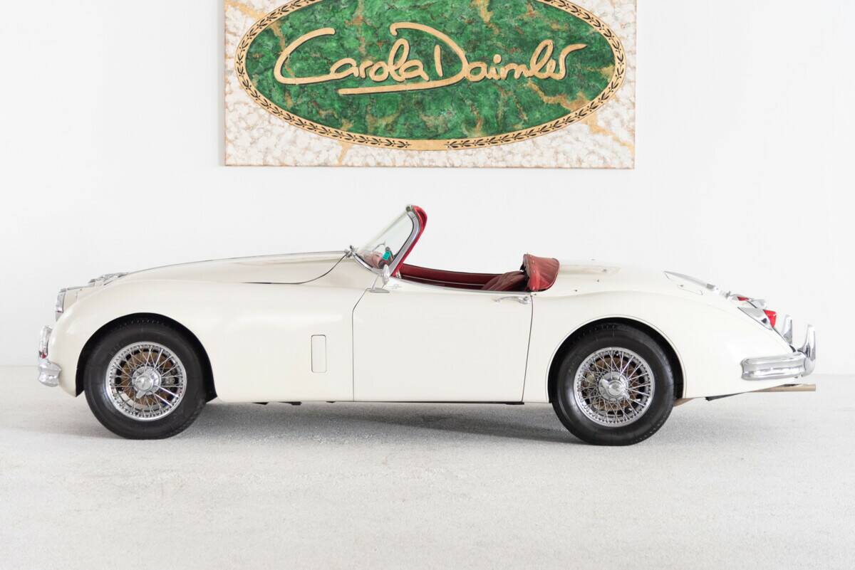 Bei dem hier zum Verkauf angebotenen Jaguar handelt es sich um einen seltenen linksgelenkten XK150 S 3,4 OTS aus dem Jahr 1959. Es ist quasi die Leistungsgesteigerte Version des XK 150 mit soliden 265 PS. In dieser Version wurden nur wenige Fahrzeuge produziert.Der Jaguar wurde wie die meisten seiner Art erstmals in die USA ausgeliefert. Er wurde Anfang der 2000er in den USA erworben und durch den heutigen Eigentümer nach Deutschland eingeführt. Der Motor wurde von einem Jaguar Spezialisten vollständig überholt und befindet sich in einer Bestform. Die Nummern des XK 150 können anhand des Heritage Zertifikates bestätigt werden – also verfügt er über die begehrten Matching Numbers. Der Wagen ist derzeit mit Sportsitzen ausgestattet, welche eine deutlich bessere Stabilität beim Fahren bieten. Die originalen Sitze sind ebenfalls restauriert und beim Kauf enthalten. Die umfangreiche Dokumentation dieses Jaguars gibt Ihnen nicht nur Einblicke in seine Vergangenheit, sondern auch die Gewissheit, dass er sorgfältig gepflegt und gewartet wurde.Der gute Zustand der Karosserie und die erstklassige Technik machen das Fahrzeug zu einem perfekten Driver. Mit ausreichend Leistung ist er das perfekte Gefährt für Pässe und kurvige Bergstraßen. Der Nachfolger des XK120, der Jaguar XK150, wurde 1957 vorgestellt und setzte die Tradition von Stil und Leistung fort. Mit unterschiedlichen Motoroptionen, darunter ein 3,4-Liter-Sechszylinder und ein 3,8-Liter-Sechszylinder, bot der XK150 noch mehr Power und noch beeindruckendere Fahrleistungen. Er war nicht nur schnell, sondern auch komfortabel und luxuriös ausgestattet. Der Innenraum des XK150 war geräumig und mit hochwertigen Materialien ausgestattet, was eine angenehme Fahrt für Fahrer und Beifahrer gewährleistete.Der XK150 ist nicht nur auf den Straßen beliebt, sondern war auch im Motorsport sehr erfolgreich. Er gewann mehrere Rennen und etablierte den Ruf von Jaguar als siegfähige Marke im Rennsport.Sowohl der Jaguar XK120 als auch der XK150 sind heute begehrte Sammlerstücke. Ihr einzigartiges Design und die damit verbundene Leistung machen sie zu begehrten automobilen Schätzen. Das Fahren eines Jaguars dieser Modellreihe ist eine Zeitreise in die Vergangenheit, in der Eleganz, Stil und unverfälschter Fahrspaß im Vordergrund stehen. Diese ikonischen Fahrzeuge werden immer einen besonderen Platz in der Geschichte des Automobilbaus einnehmen.