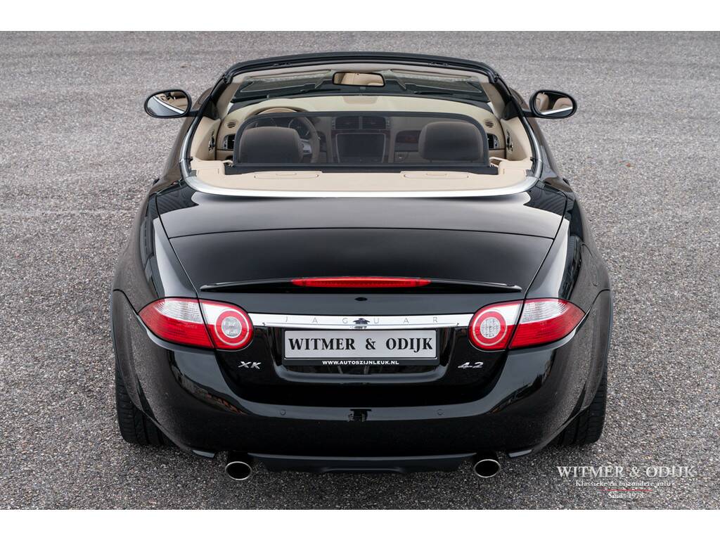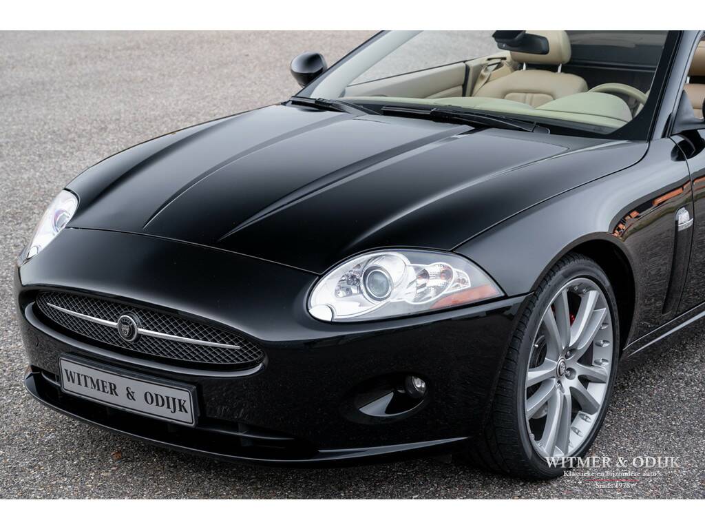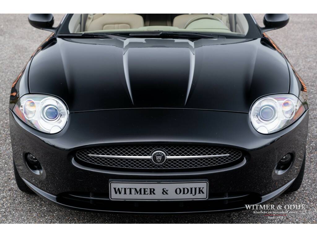 Inmiddels een klassieker, zonder de nadelen daarvan. Dat wil zeggen de laatste versie van de XK heeft die prachtige lijnen die in de verte aan een klassieke E-type doen denken, heeft moderne rijeigenschappen en hoogstwaarschijnlijk bouwt Jaguar na de huidige F-type nooit meer een V8. Onderhuids werd veel Ford techniek toegepast waardoor de XK een zeer betrouwbare auto is. De prachtige vormgeving is van de hand van Ian Callum, de man die verantwoordelijk is voor de Aston Martin DB7 en Vanquish. Kortom een recept voor steeds meer waardering, dus toekomstige waardestijging. Een mooie XK met een lage kilometerstand en correcte historie kost nu al aanzienlijk meer dan een jaar terug. De comfortabele GT-achtige rijeigenschappen maken de XK tot een gewaardeerde reisgenoot waar bezitters moeilijk afstand van doen. Deze XK Cabriolet kocht ik van een oudere heer die helaas echt moest stoppen met zijn autoliefhebberij. Hij was de tweede eigenaar en gebruikte de auto alleen bij mooi weer, net zoals de eerste eigenaar. Aan alles is te zien dat de auto ook zodanig verzorgd is en geen zwaar leven had. Een onbeschadigd en brandschoon interieur, foutloze velgen en een mooi diep glanzende lak, het klopt allemaal. Uiteraard werd zo'n kostbare Jaguar destijds voorzien van alle luxe, zo zijn er zaken als automatische climat control, regelbare stoelverwarming, cruise control, volledig elektrisch verstelbare stoelen met geheugen, een multifunctioneel en elektrisch verstelbaar stuur, traction control, parc distance control rondom, 19 inch XKR velgen, opklapbaar windscherm en meer. De eigenaren en onderhoudshistorie is compleet aanwezig zodat niet alleen de auto maar ook het 'verhaal' erbij klopt. Zo voldoet deze klassieker in wording aan alle voorwaarden bij een investering met fun-factor. Gebruik de volgende link voor meer foto's; https://witmerodijk.nl/te-koop/jaguar-xk-4.2-cabriolet-2008-zeldzame-kleurstelling%2c-bijtellingsvriendelijk/2160