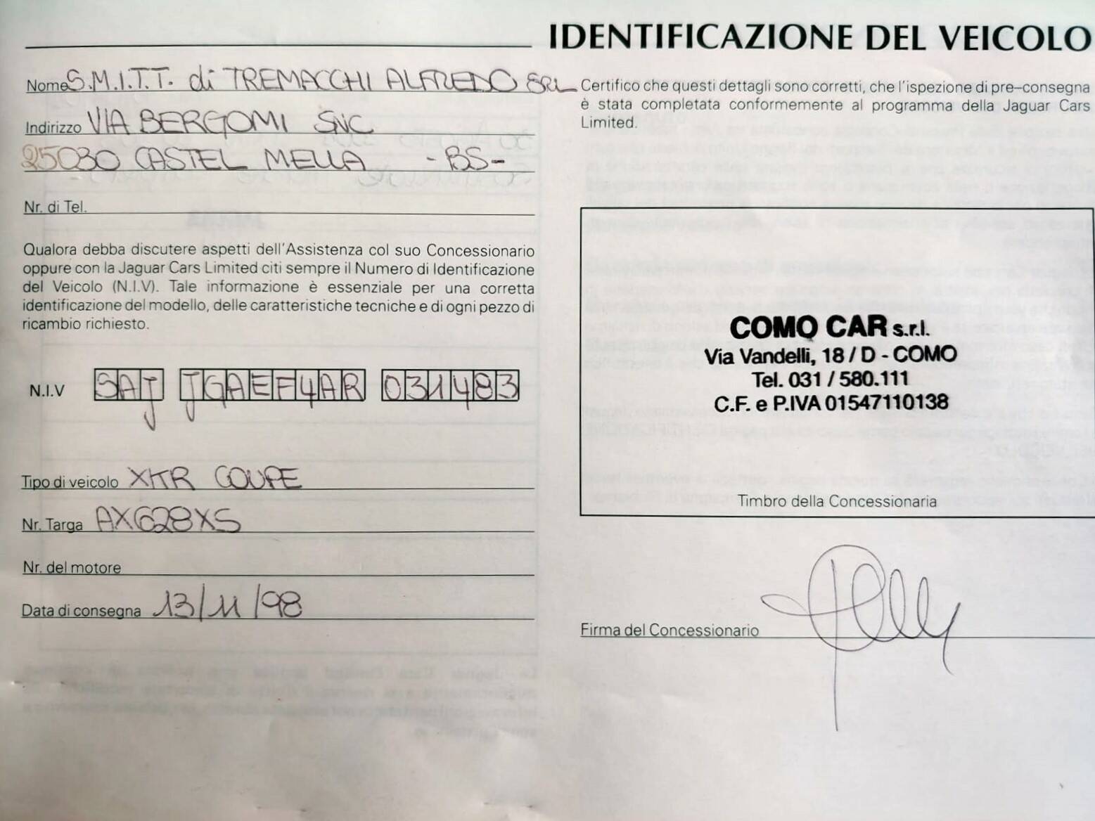 Sold new by the Jaguar dealership in Como on November 13, 1998, to its first and only owner, a prominent entrepreneur from Brescia. Although the car was registered to different companies within his group over the years for fiscal reasons, it remained his exclusive personal vehicle for over 25 years.