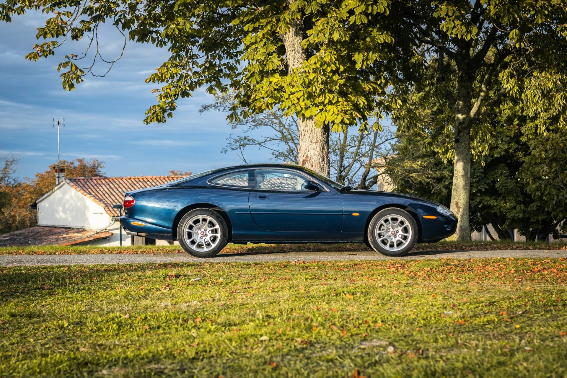 Jaguar XKR Coupé 2001 – Elegantes Blau mit beigem Lederinterieur