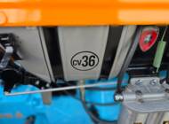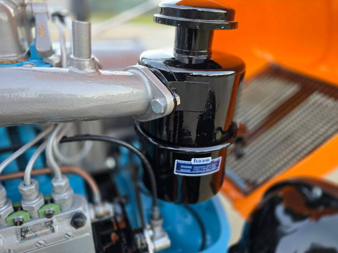 Herzstück ist der luftgekühlte Dreizylinder-Dieselmotor mit 2.193 cm³ Hubraum, Bosch-Einspritzung und einer vom Werk angegebenen Leistung von rund 36 PS. Die Kraftübertragung erfolgt über ein manuelles Sechsganggetriebe und eine robuste Portalachse auf die Hinterräder. Der Traktor besitzt zwei hintere Zapfwellen, die technische Vielseitigkeit garantieren. Die Bremsanlage besteht aus unabhängigen Trommelbremsen an den Hinterrädern. Laut Angaben ist der Motor, das Getriebe sowie die Achse mit den originalen Nummern versehen; die entsprechenden Nummern sind auf dem Typenschild vermerkt. Detaillierte Informationen zum technischen Zustand liegen laut Anbieterangabe nach der Restaurierung vor, die Laufleistung wurde im Rahmen der Arbeiten zurückgesetzt.