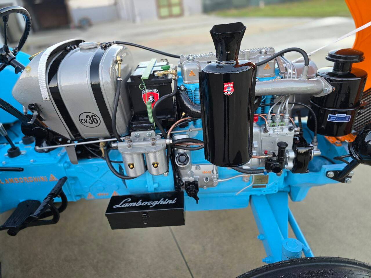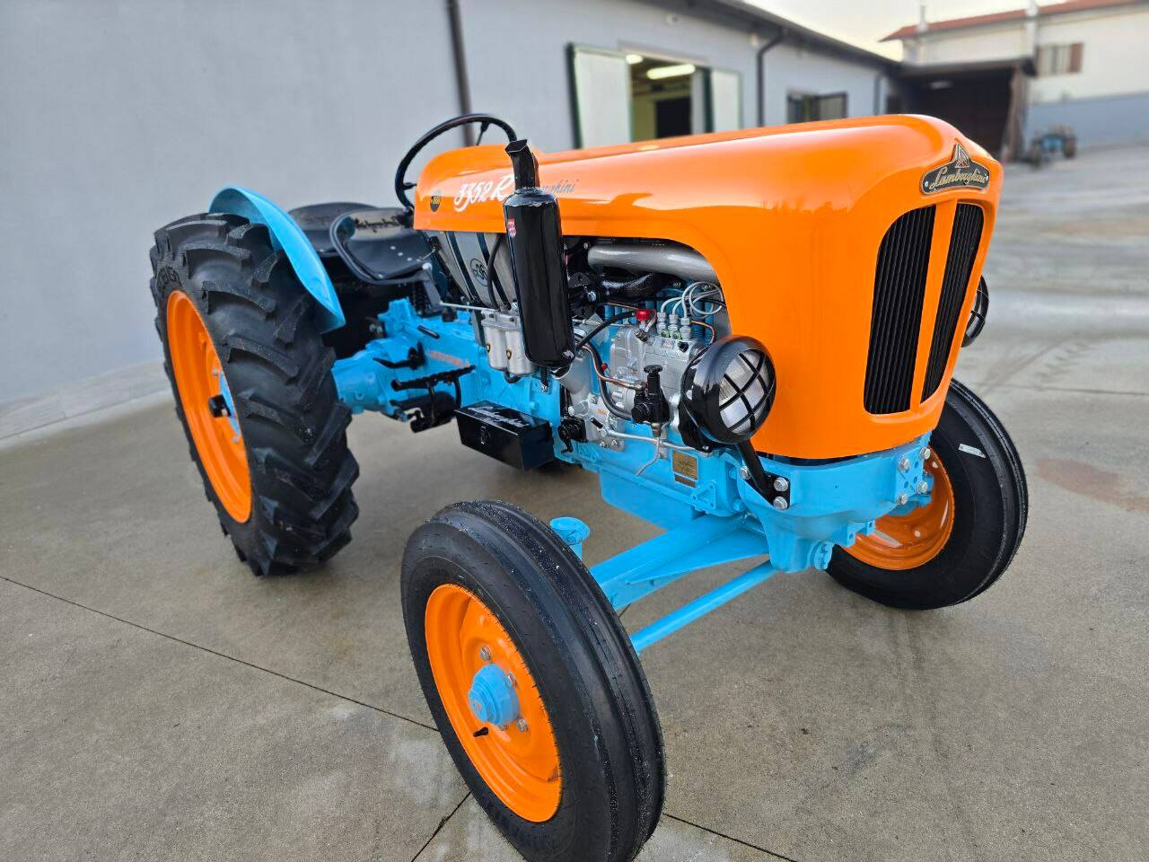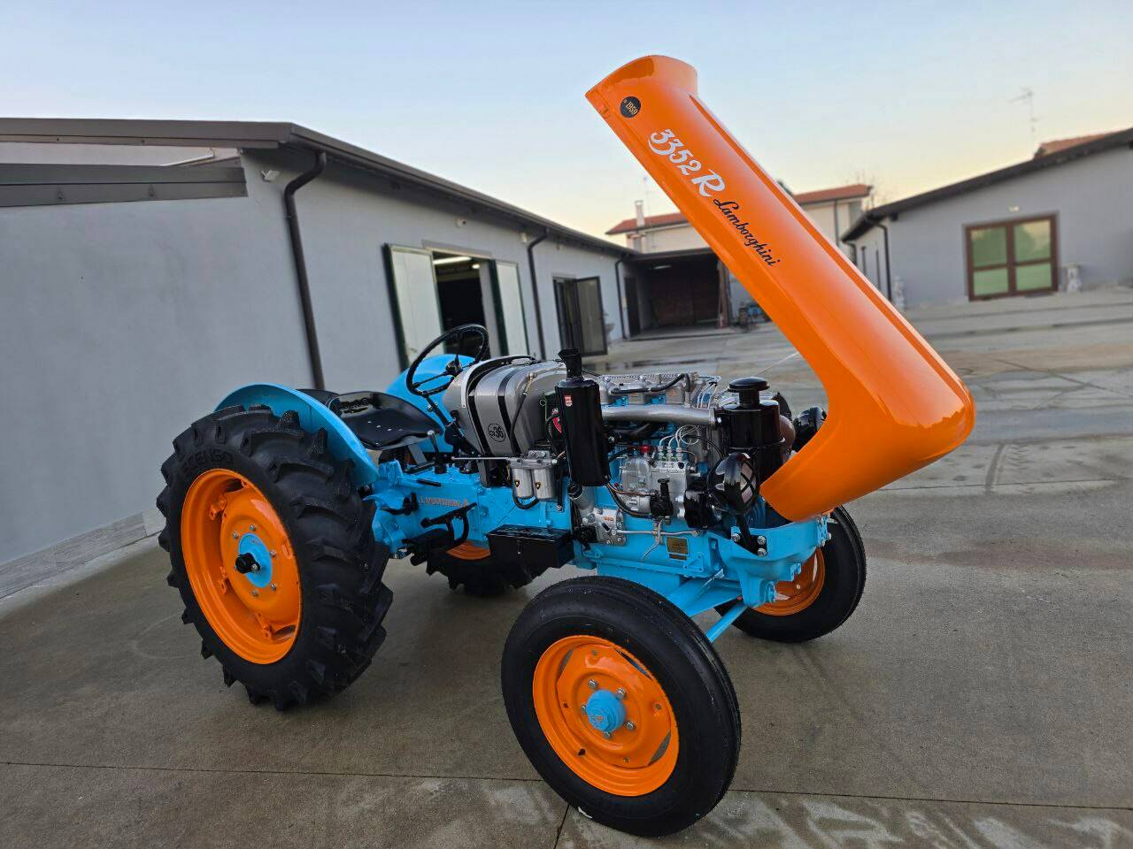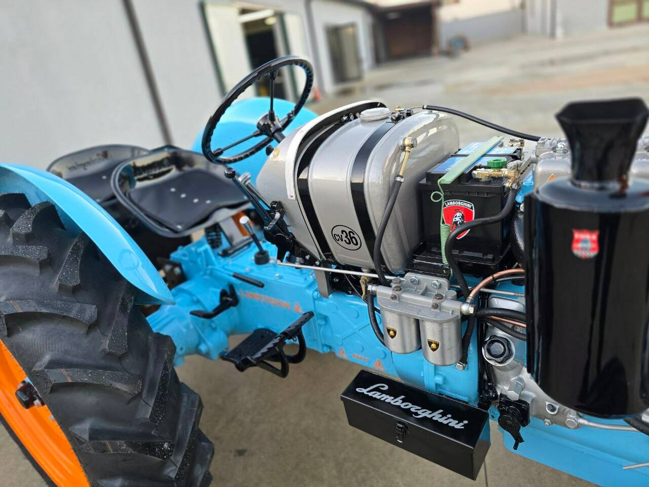 Ein außergewöhnlicher Lamborghini Traktorenklassiker: Der 3352 R Double Seat aus dem Baujahr 1959, restauriert von einer auf historische Lamborghini-Traktoren spezialisierten Fachfirma, präsentiert sich in der markanten Zweifarblackierung Blau/Orange. Das seltene Modell mit Doppelsitzanlage, originalen Ausstattungsdetails und vollständig dokumentierter Restaurierung gilt unter Kennern als begehrtes Sammlerstück und seltenes Relikt aus der Frühzeit der Marke Lamborghini Trattori.